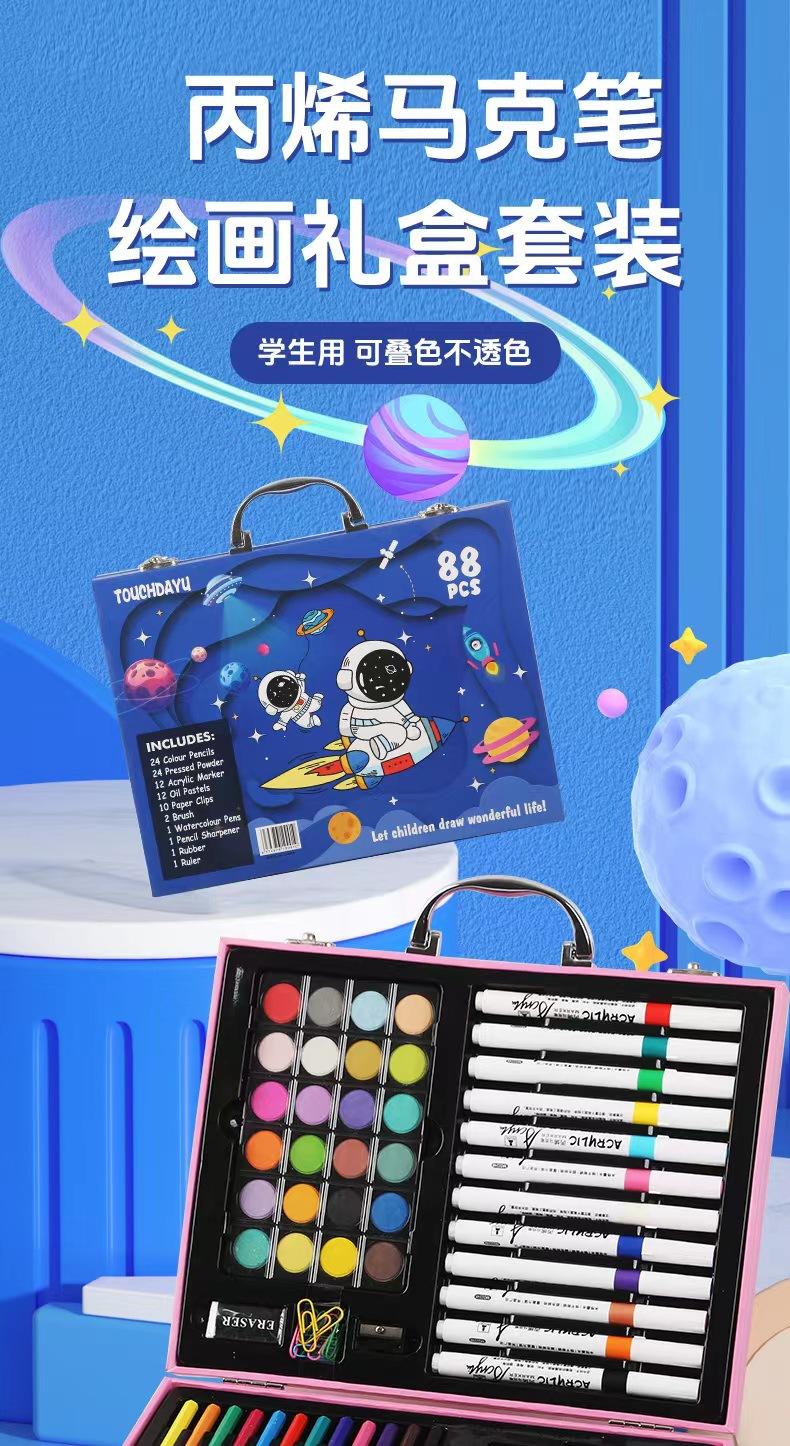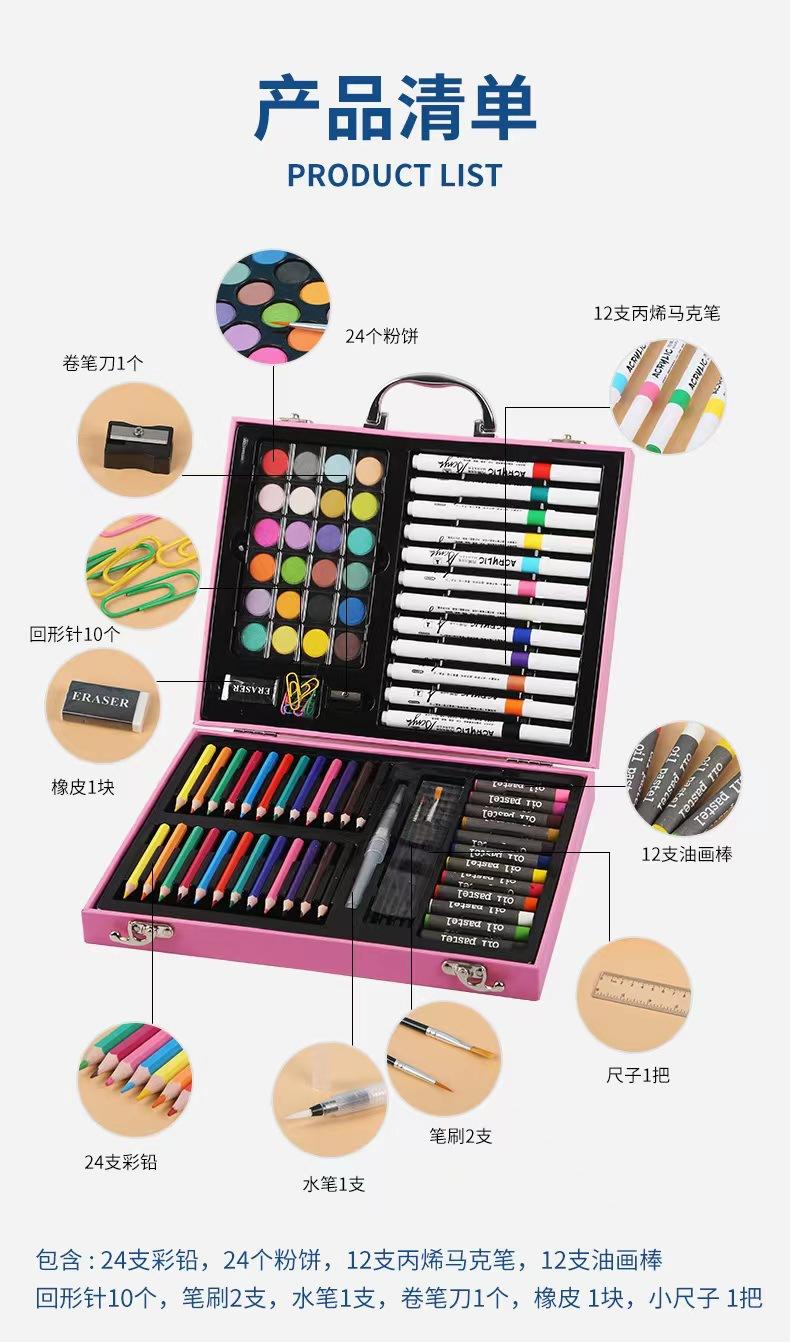 Caja de regalo de pintura para niños de 88 piezas, juego de pinceles de arte para regalo de regreso a clases para estudiantes, venta al por mayor