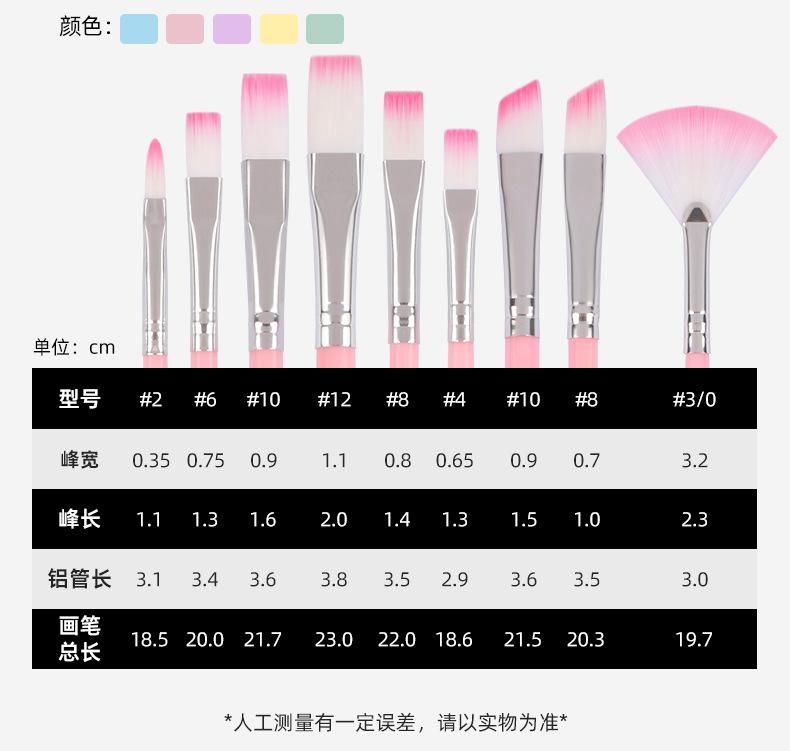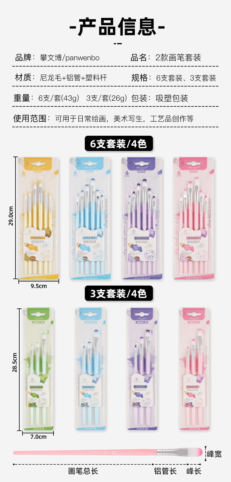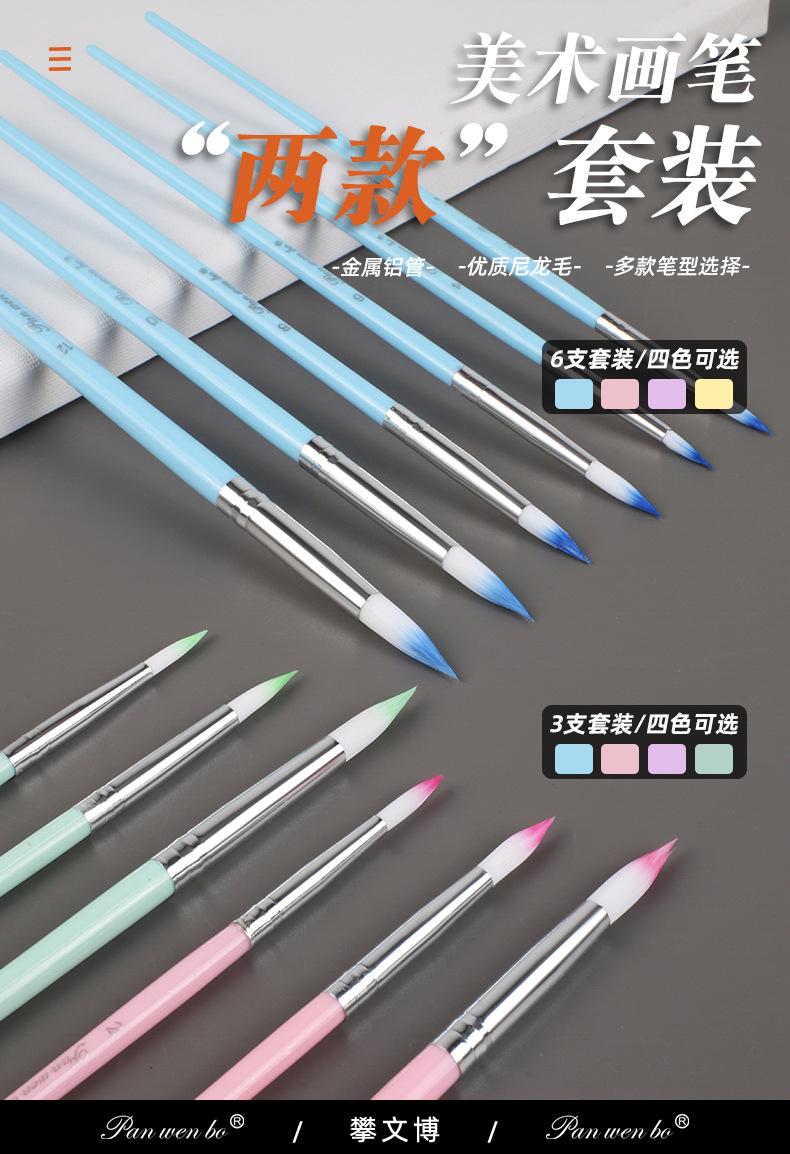 Paquete de 3 y 6 pinceles de nailon de cuatro colores, ideales para bellas artes, acuarelas de propileno, venta al por mayor.
