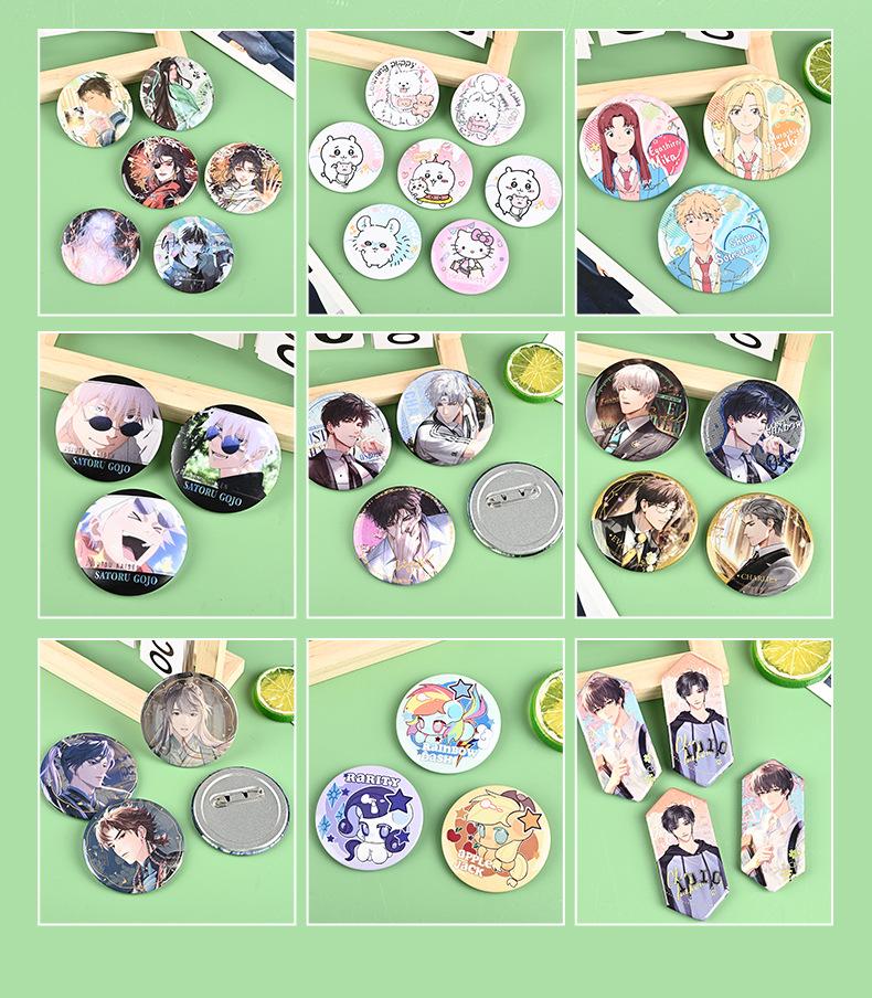 Pins de hojalata personalizados, Mercancía de personajes de anime de dibujos animados, Pins redondos con doble brillo, Venta al por mayor de pins conmemorativos