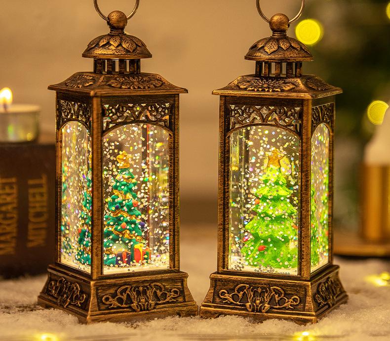 Nuevas decoraciones navideñas transfronterizas, accesorios de escritorio, Papá Noel, muñeco de nieve, árbol, atmósfera de nieve, luz