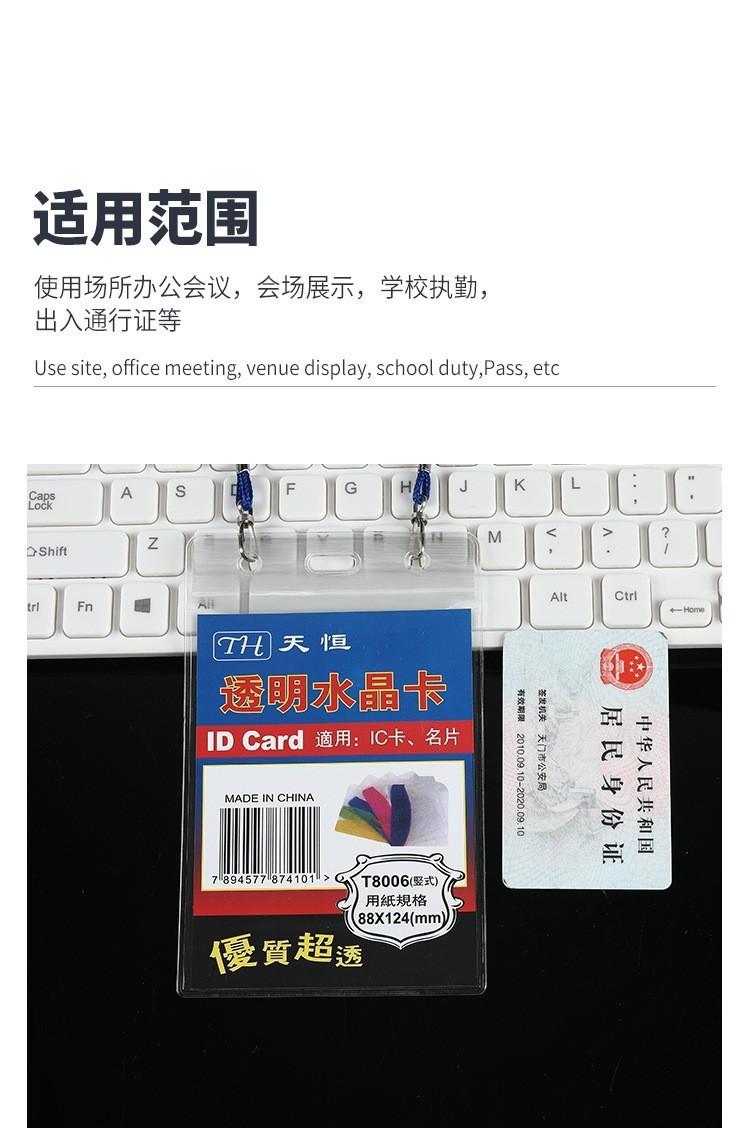 Funda para tarjeta de certificado transparente horizontal, suave, impermeable, con cordón, para trabajo, oficina, baúl, tarjeta de acceso, tarjeta de trabajo.