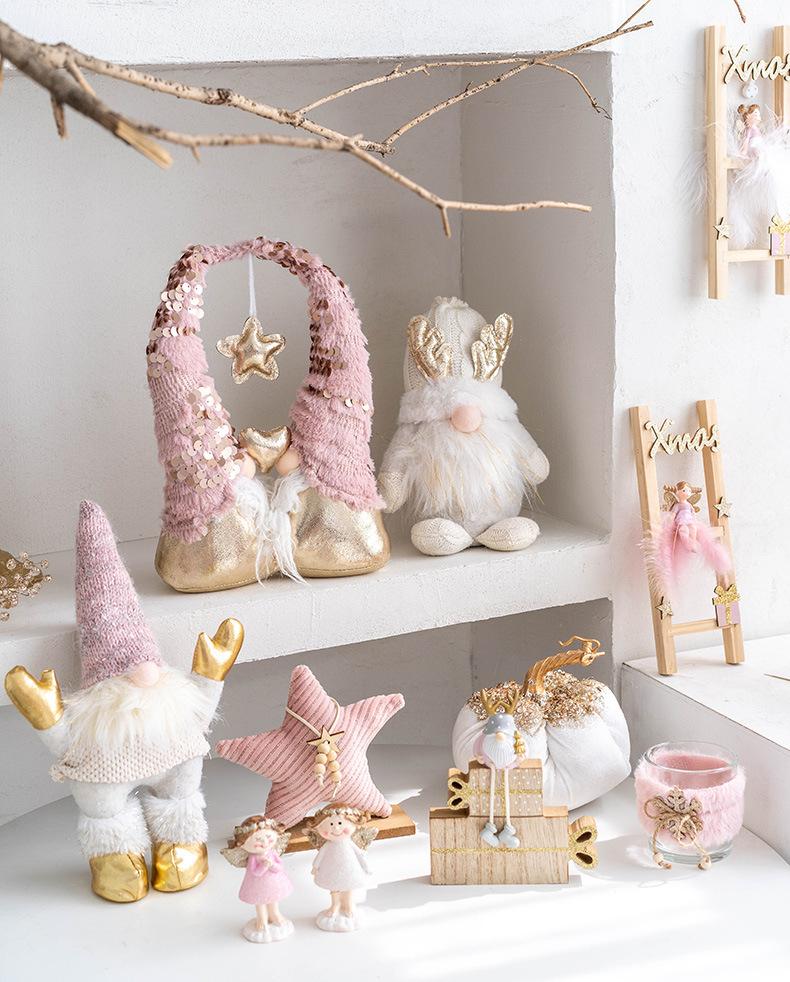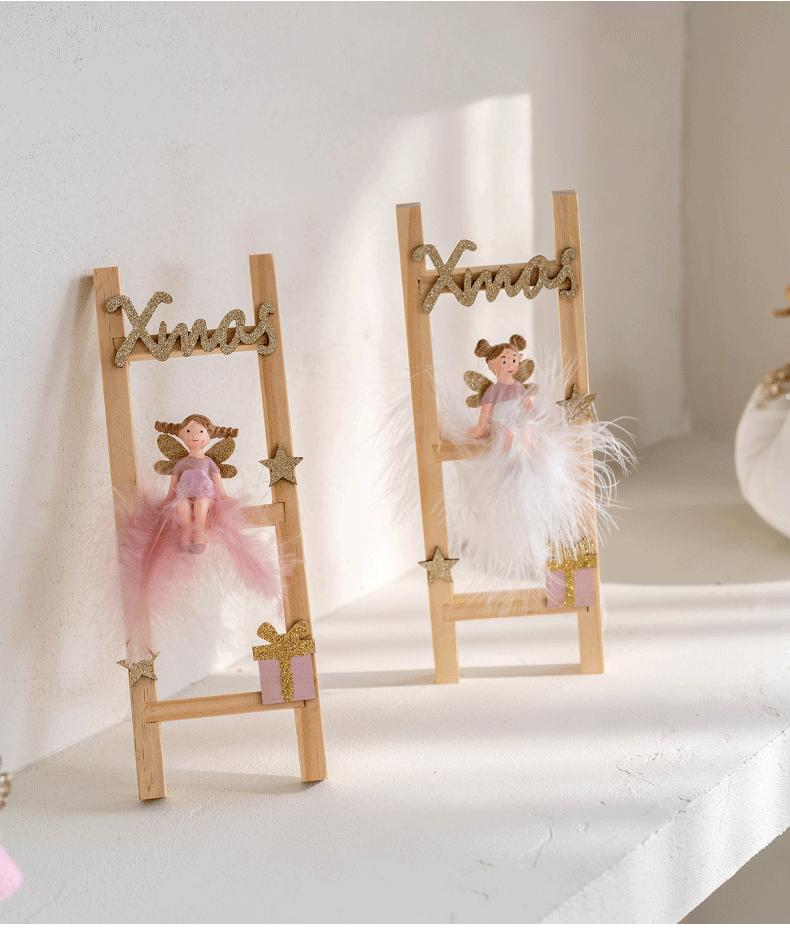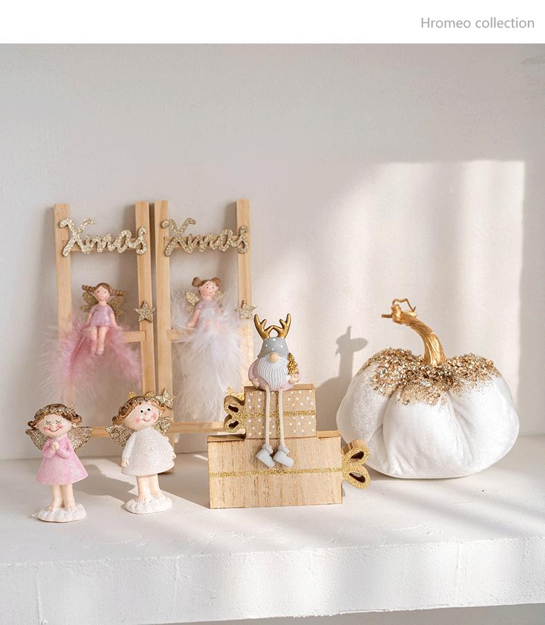 Adornos navideños: Papá Noel, muñeco sin rostro, ángel, adornos de escritorio, corazón rosa femenino, ambiente decorativo.