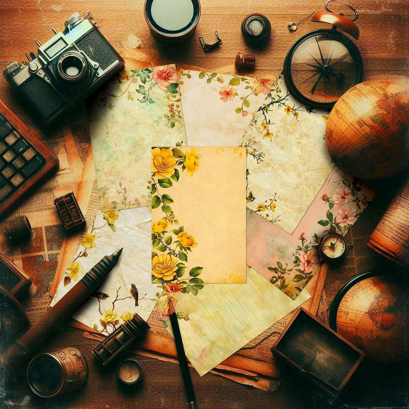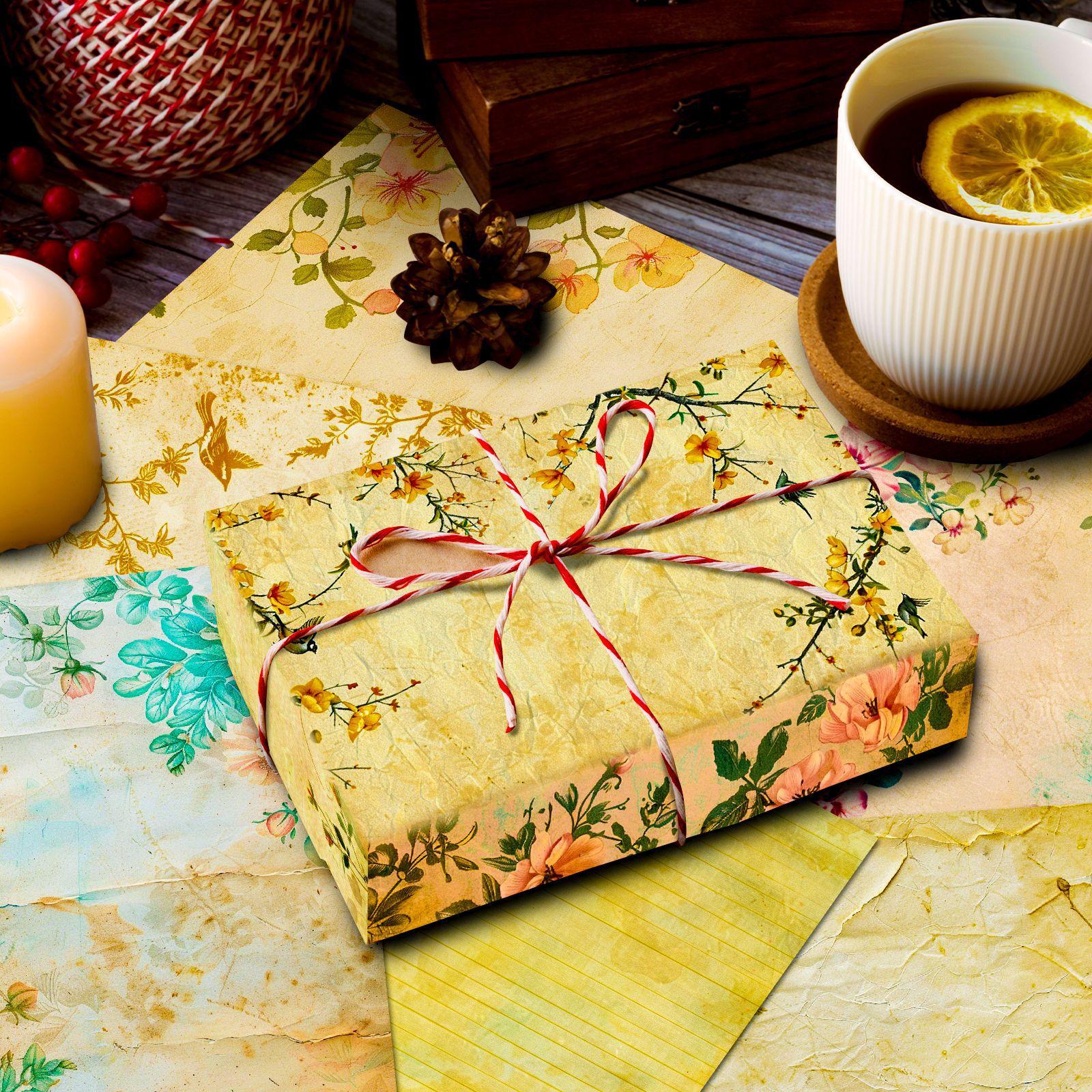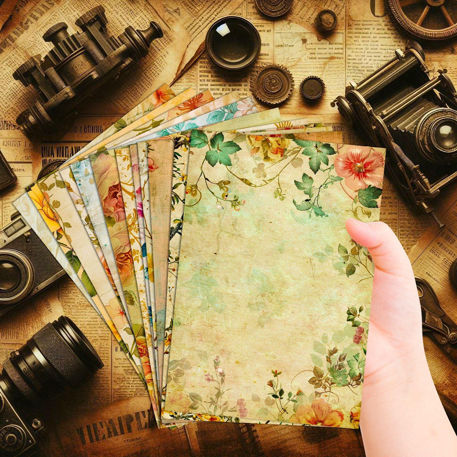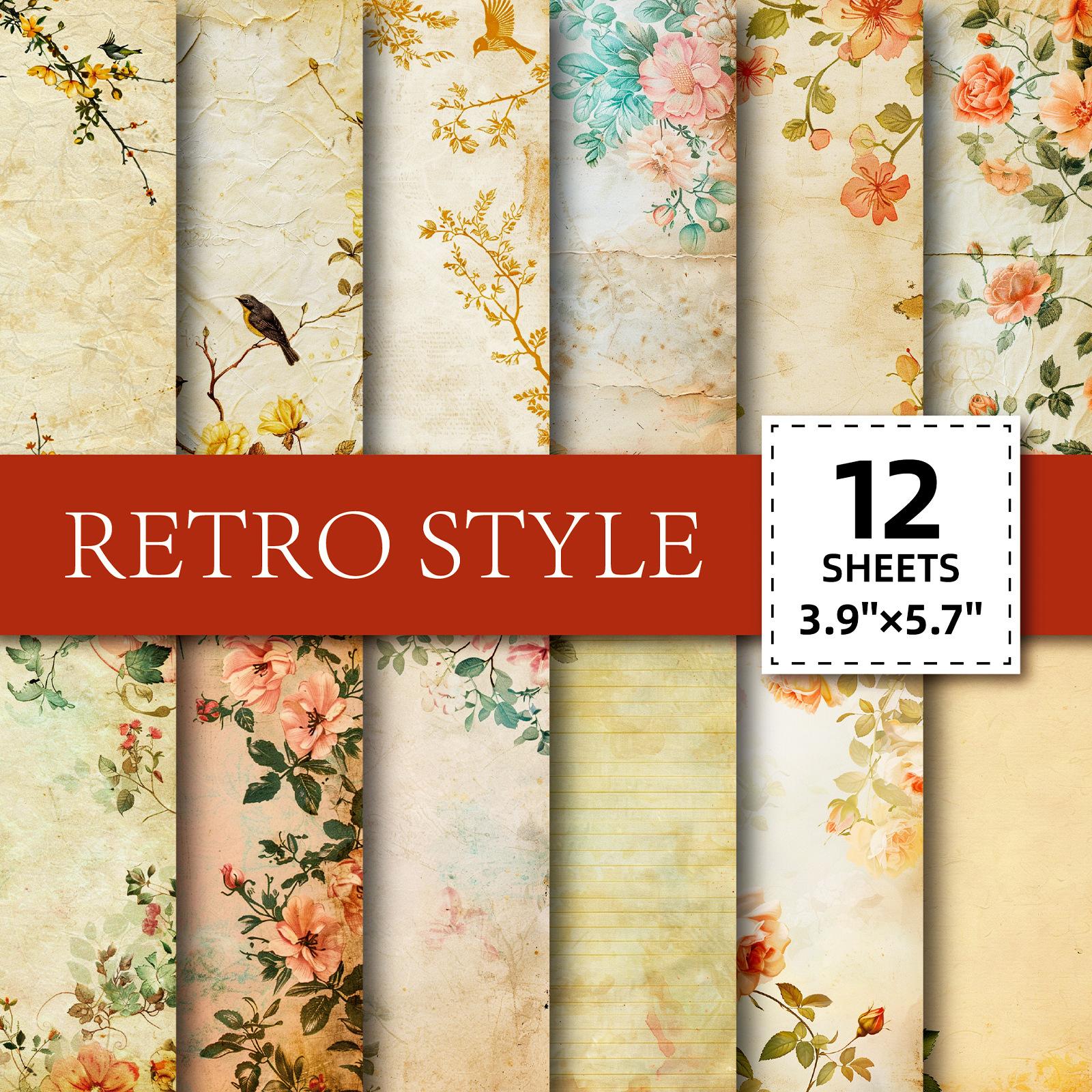 Venta Caliente 12 Hojas/Paquete Nuevo Papel de Material Base con Impresión Clásica Retro Degradado para Recorte y Collage Creativo, para Journaling