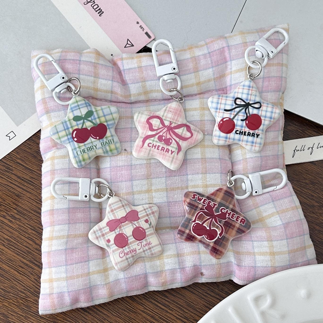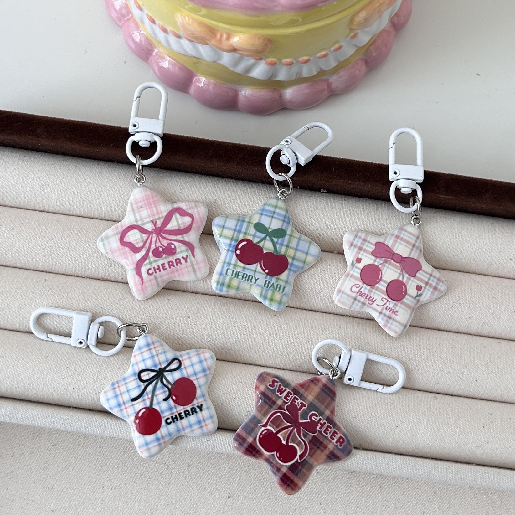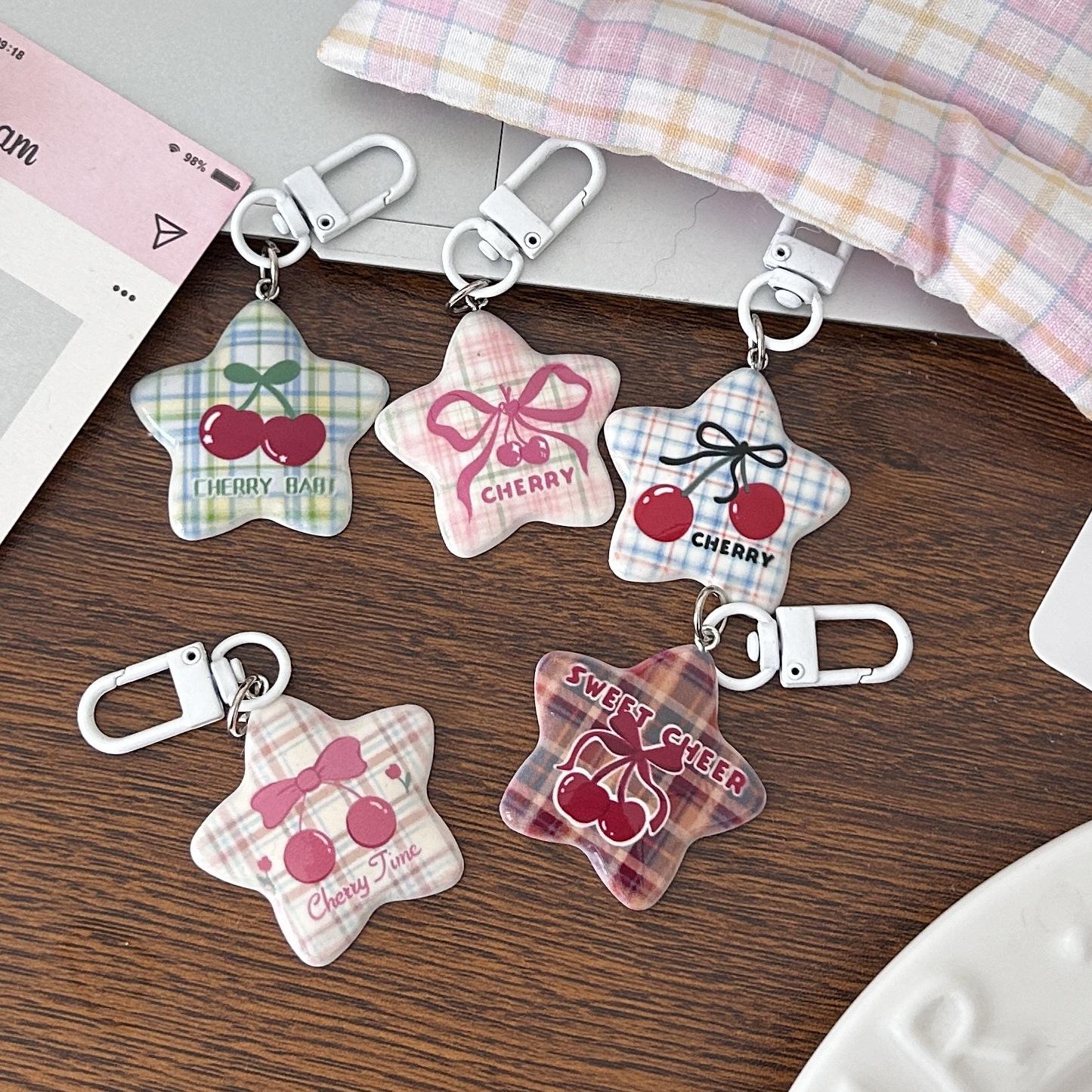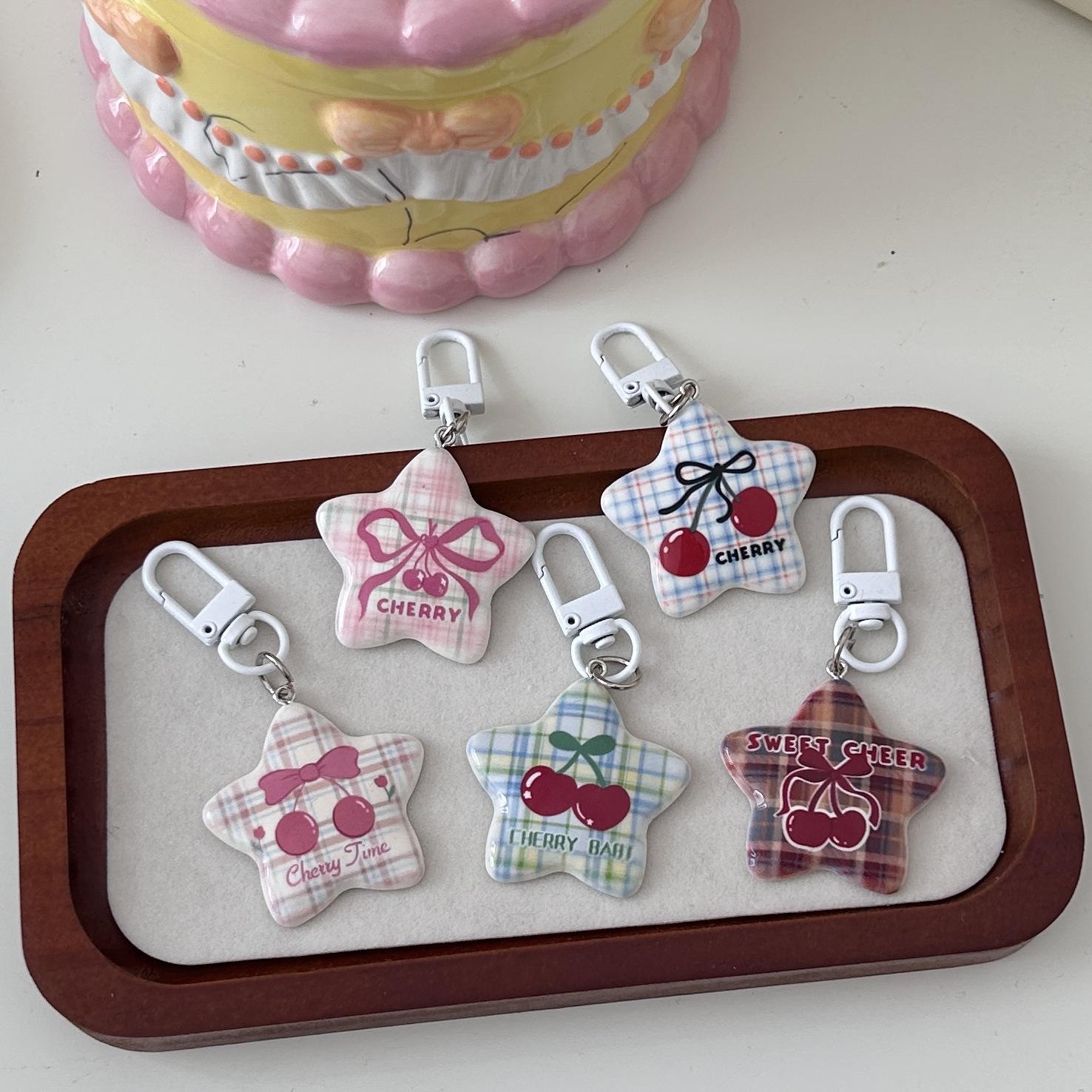 Serie Cereza Romántica Llavero Estrella de Cinco Puntas Corazón de Niña Colgante Dulce Mejor Amigo de Pareja Accesorios Mochila Regalo