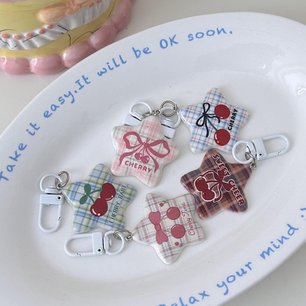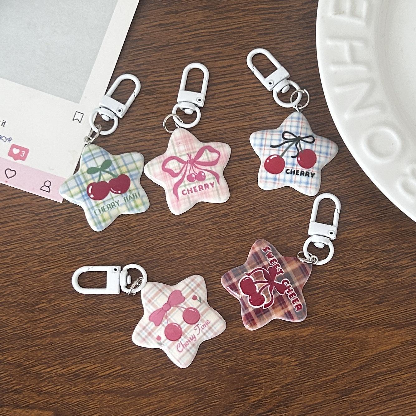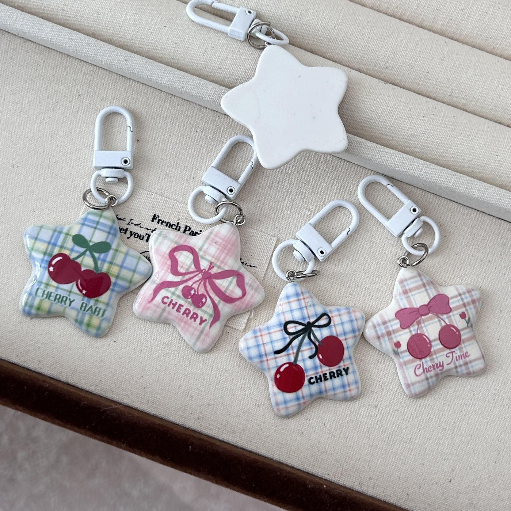 Serie Cereza Romántica Llavero Estrella de Cinco Puntas Corazón de Niña Colgante Dulce Mejor Amigo de Pareja Accesorios Mochila Regalo
