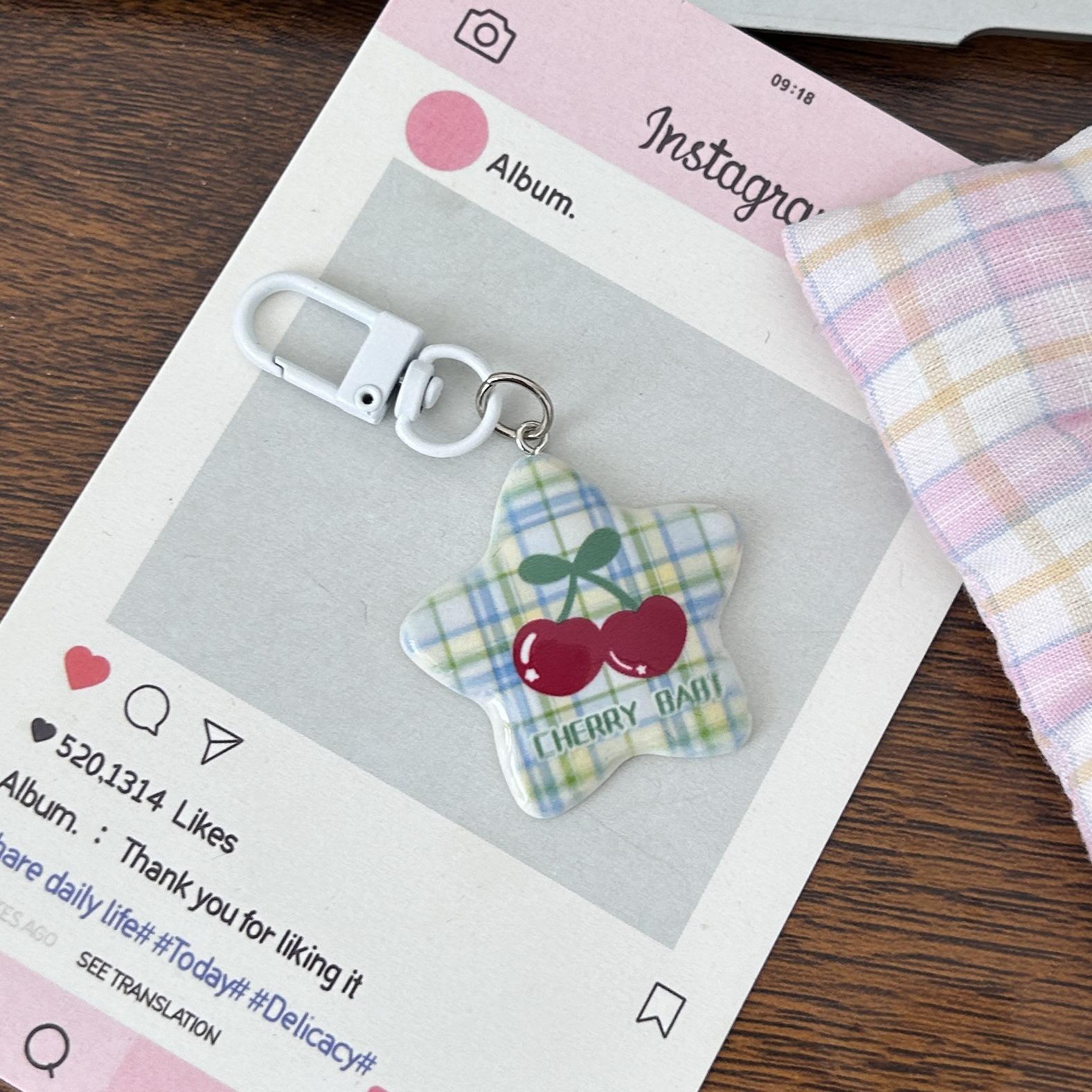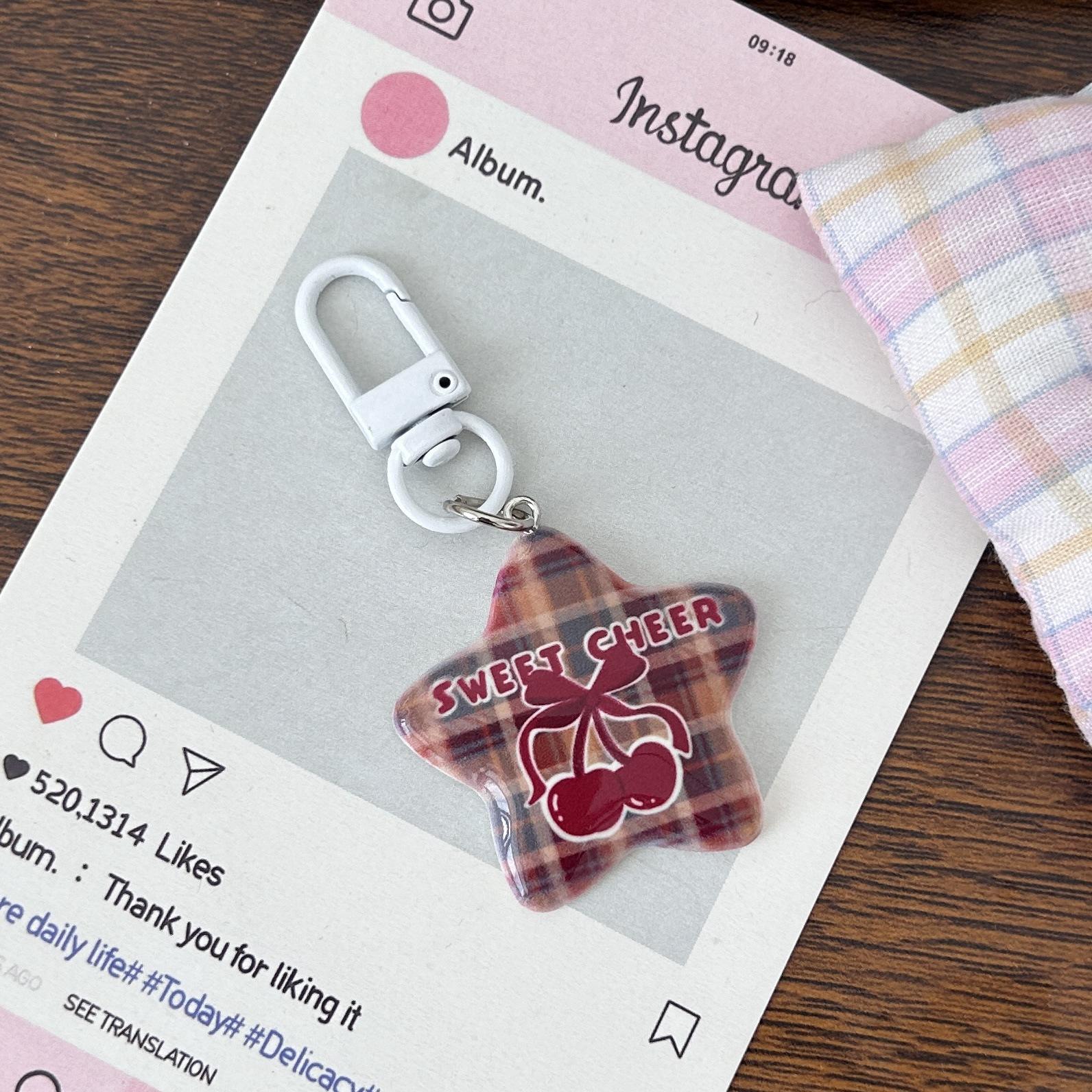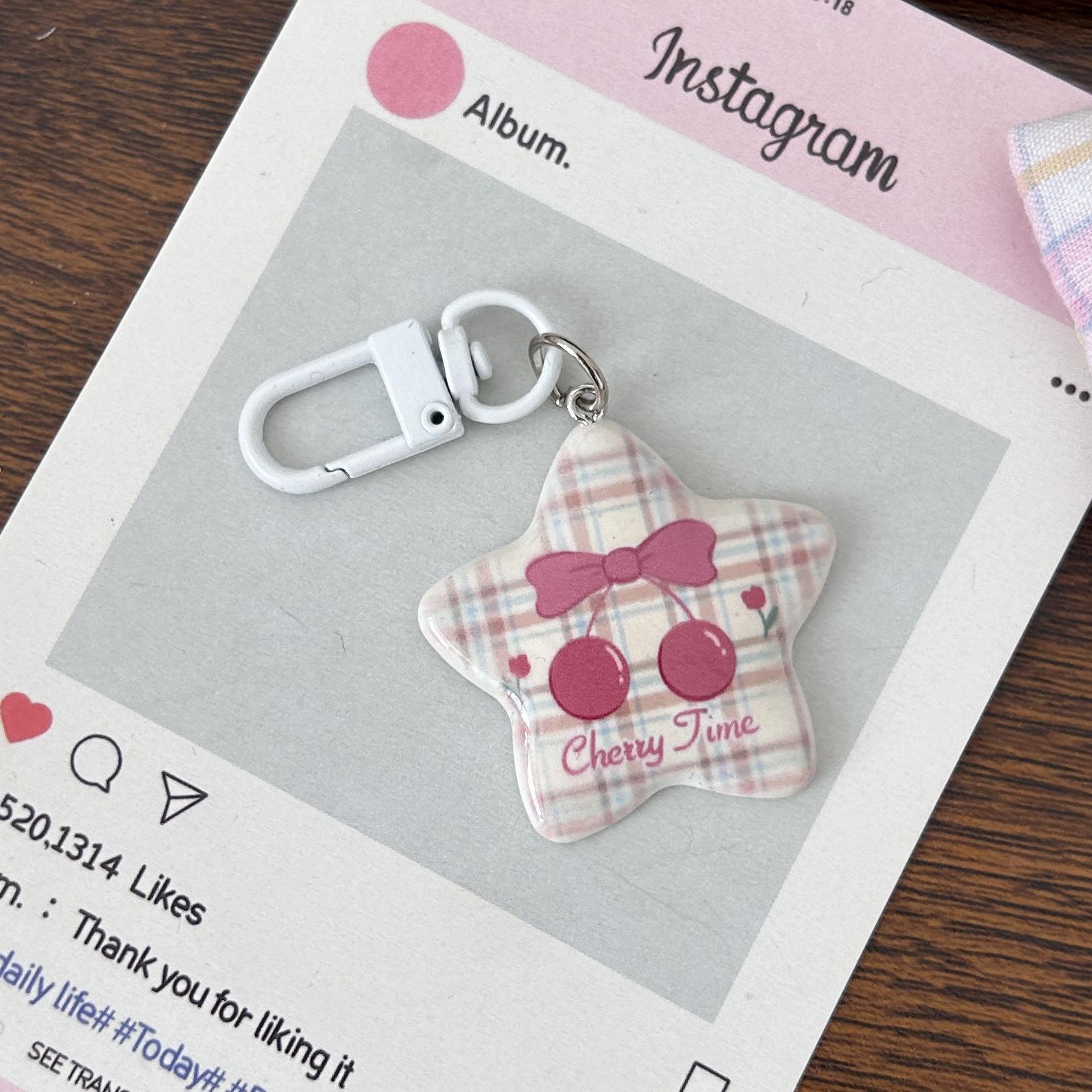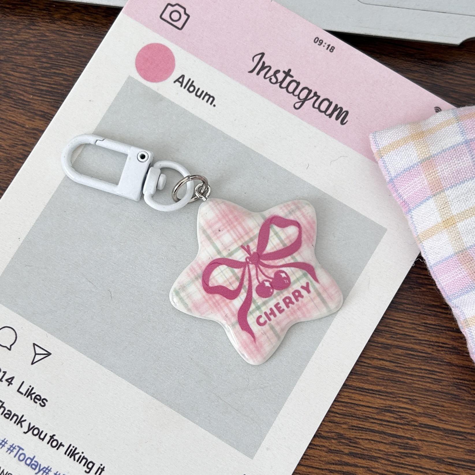Serie Cereza Romántica Llavero Estrella de Cinco Puntas Corazón de Niña Colgante Dulce Mejor Amigo de Pareja Accesorios Mochila Regalo
