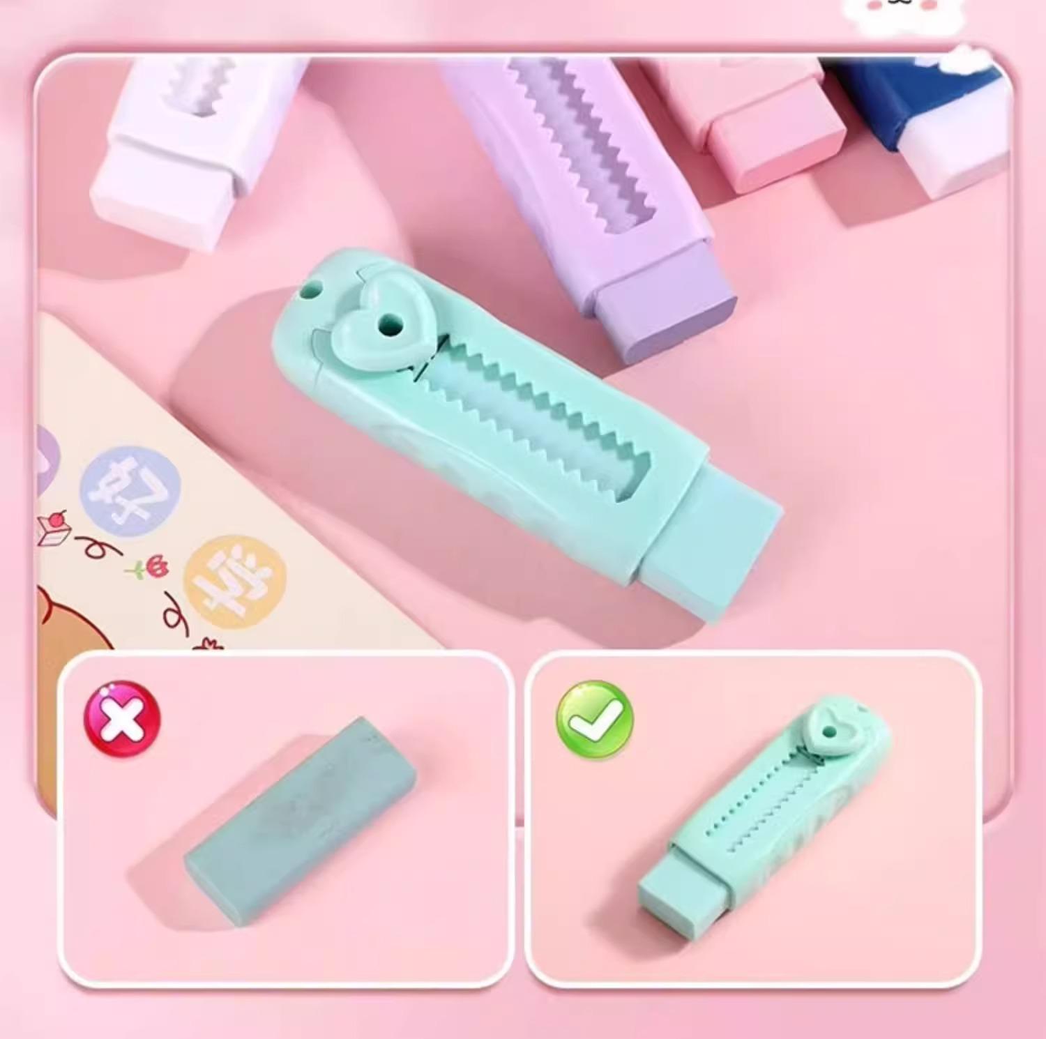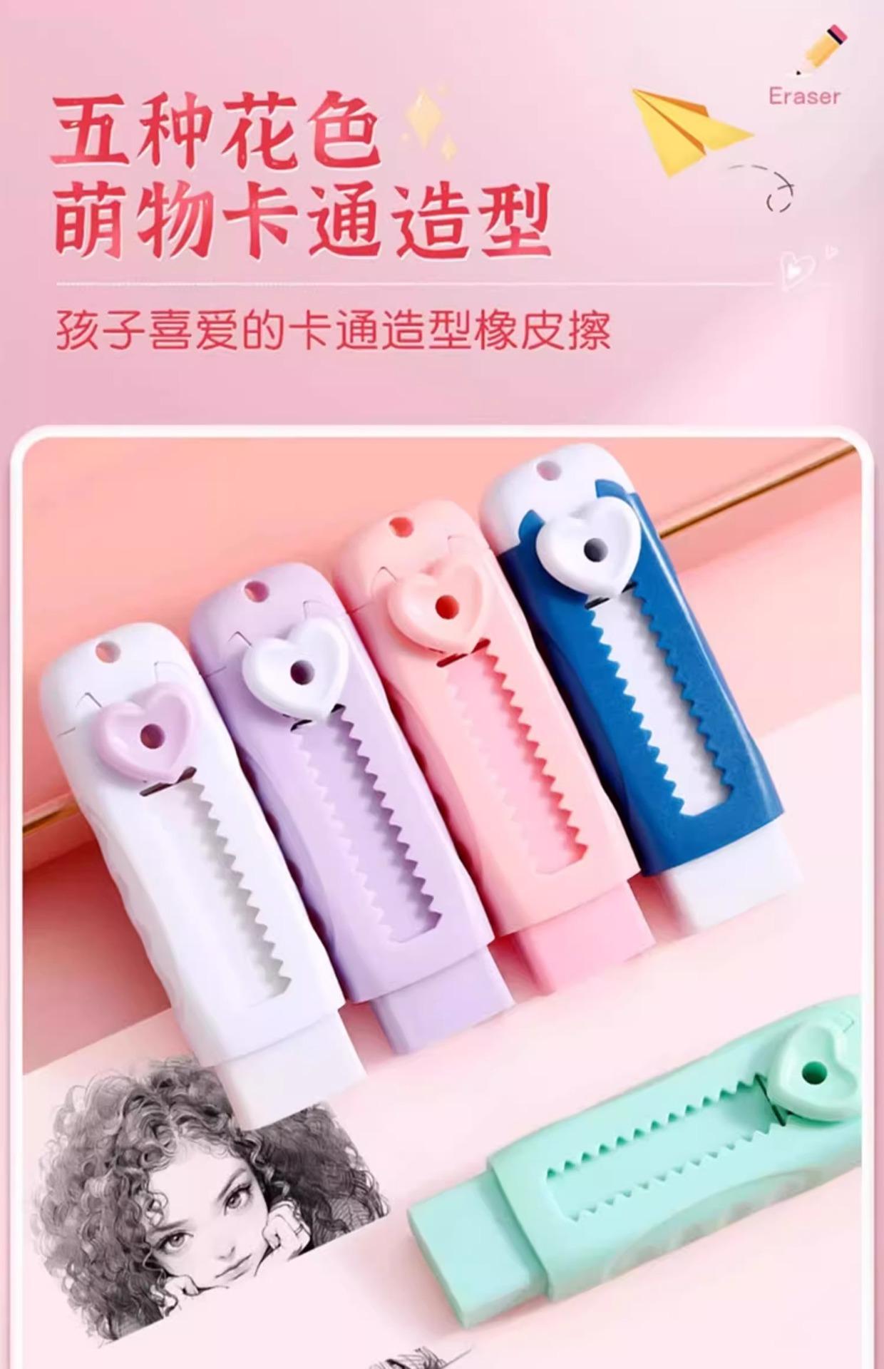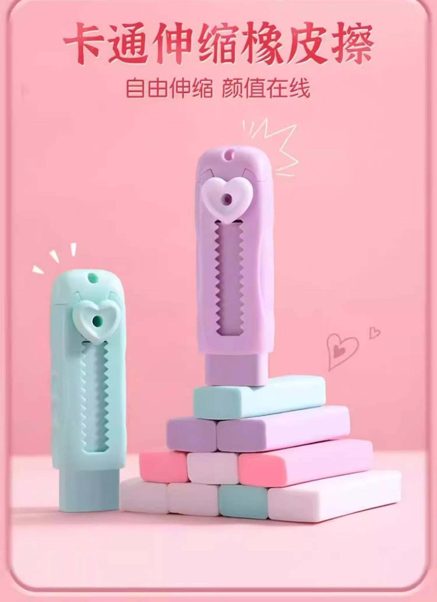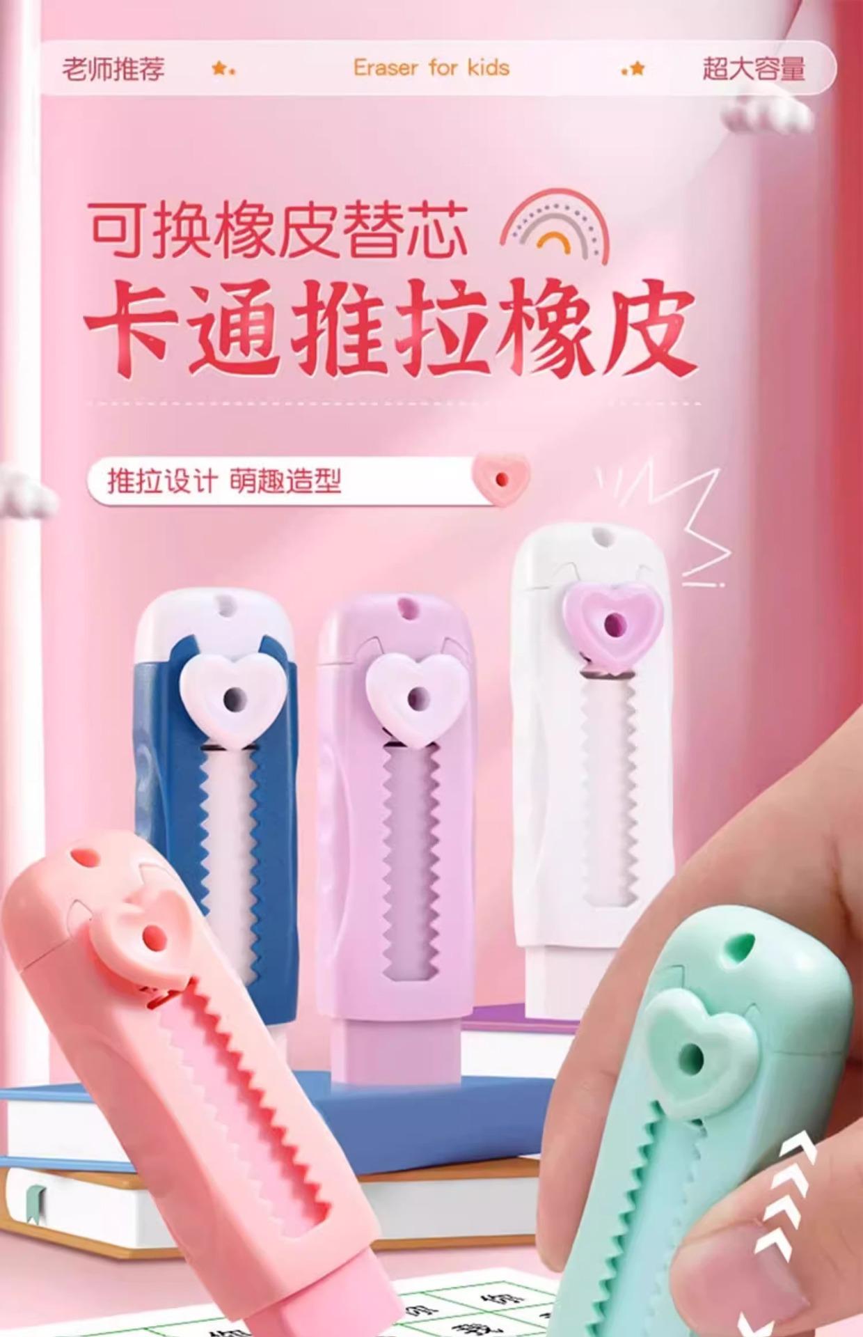 Especial para Estudiantes de Primaria para Escribir Sin Dejar Rastro. Goma de borrar escolar. Borrador Push-Pull de Color Macaron con Lindo Corazón de Durazno