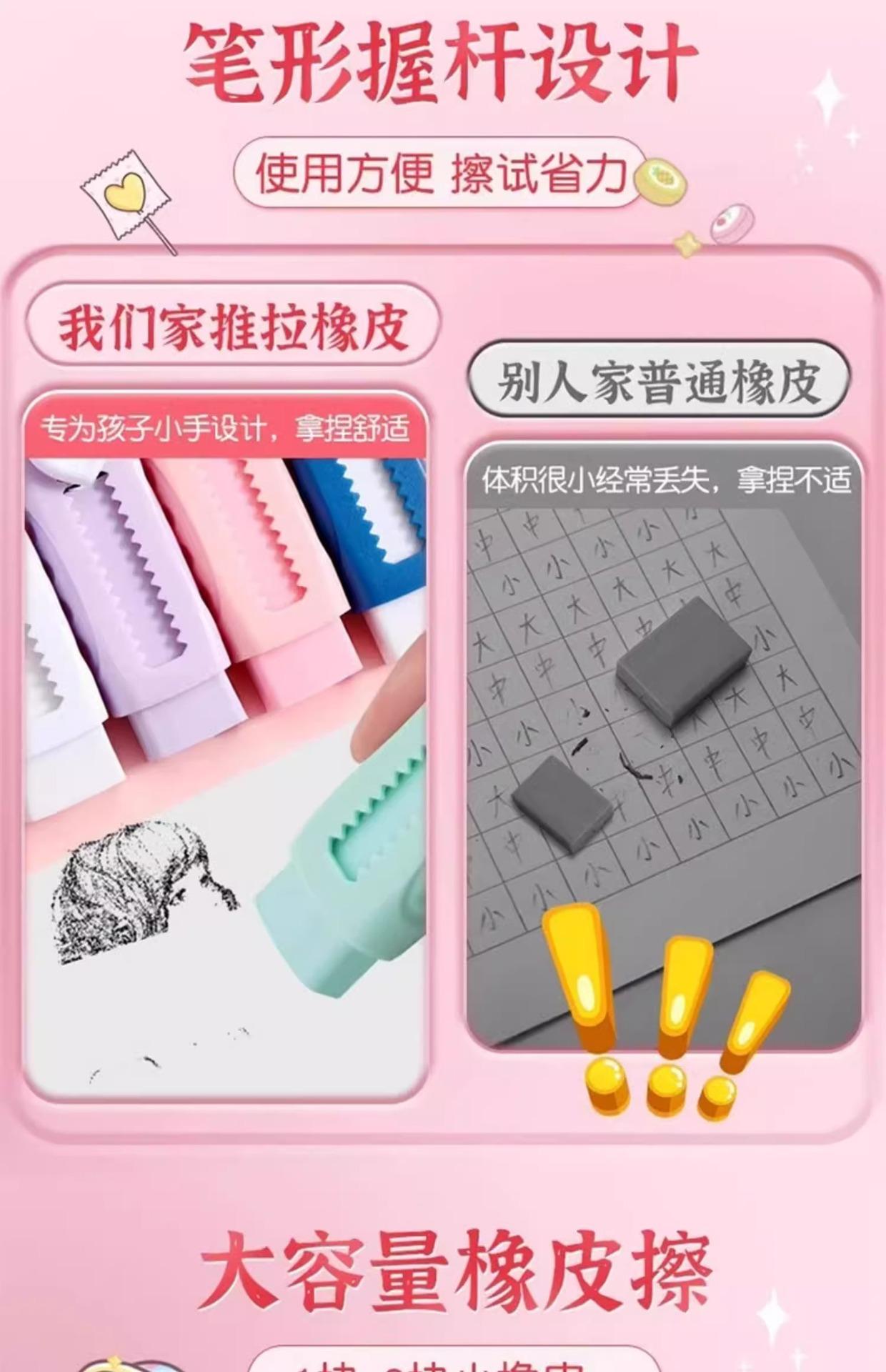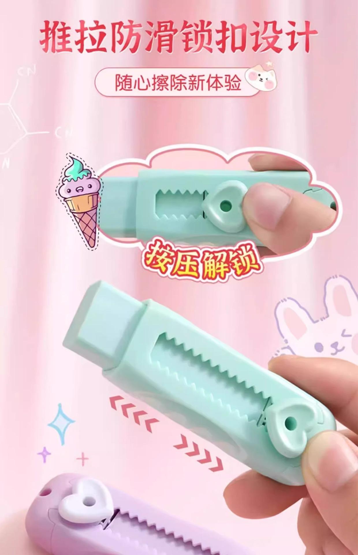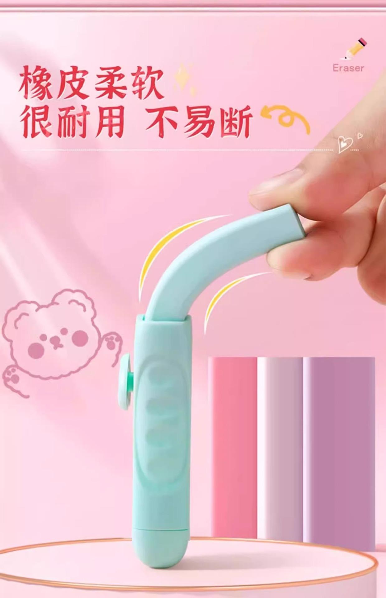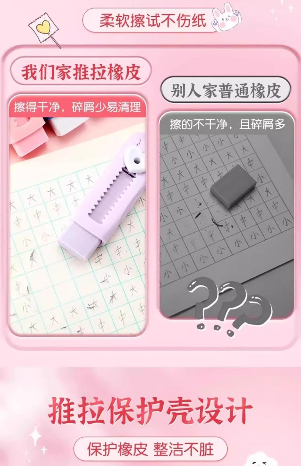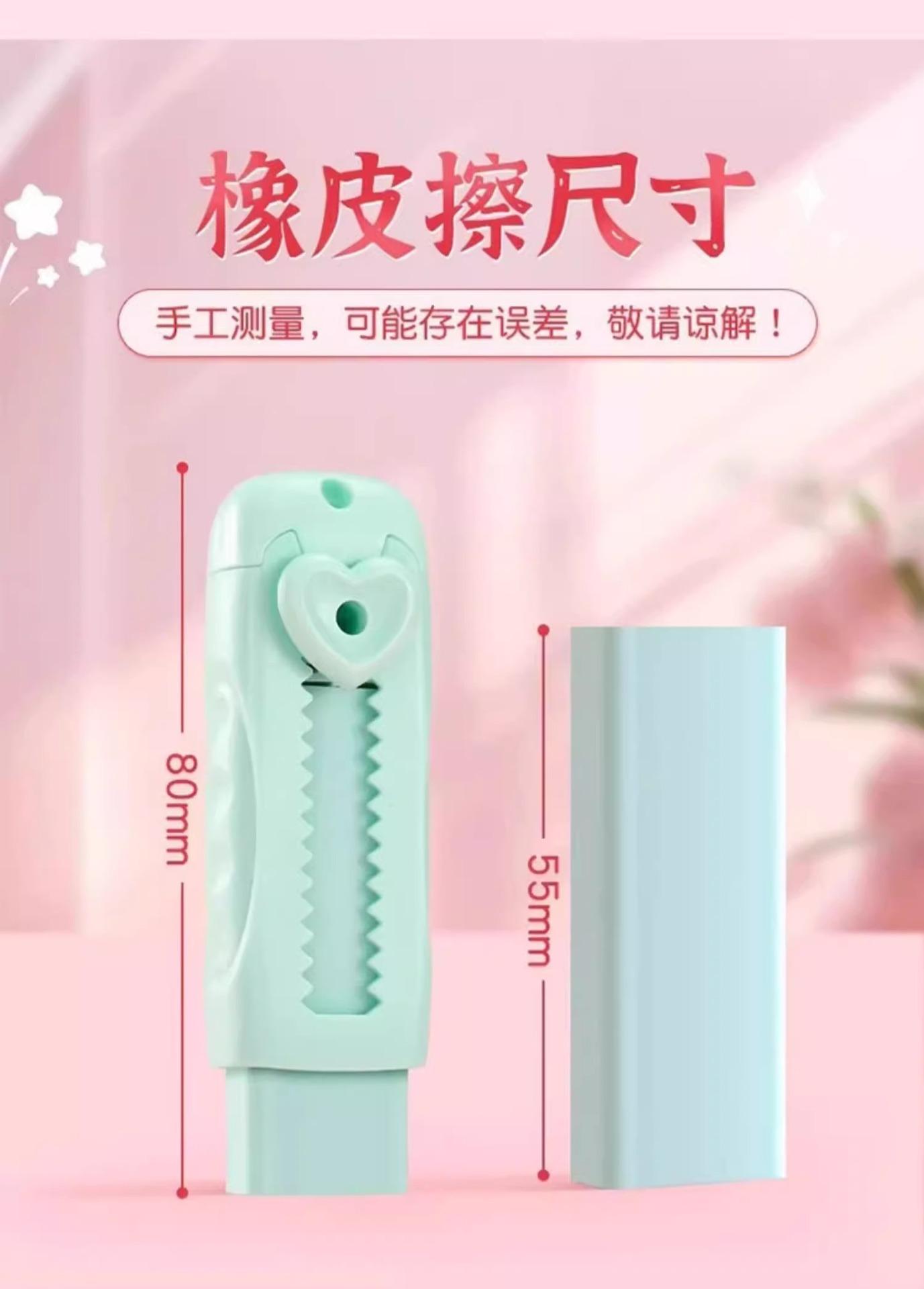 Especial para Estudiantes de Primaria para Escribir Sin Dejar Rastro. Goma de borrar escolar. Borrador Push-Pull de Color Macaron con Lindo Corazón de Durazno