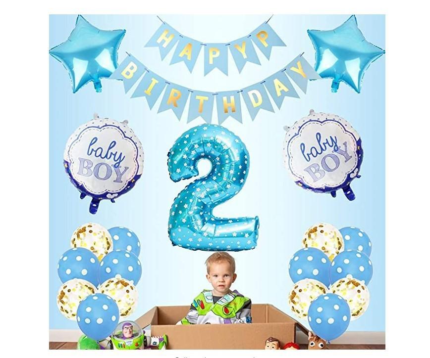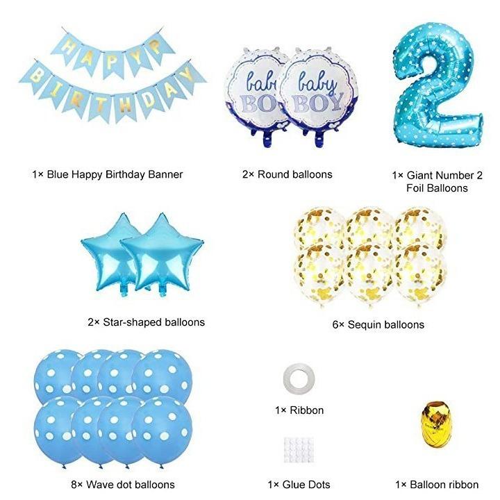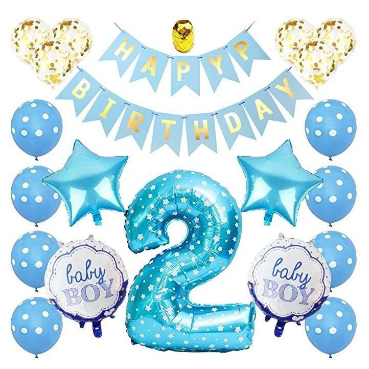 Traje de decoración para el segundo cumpleaños de un bebé niño, suministros, pancarta de feliz cumpleaños azul, globo de confeti azul