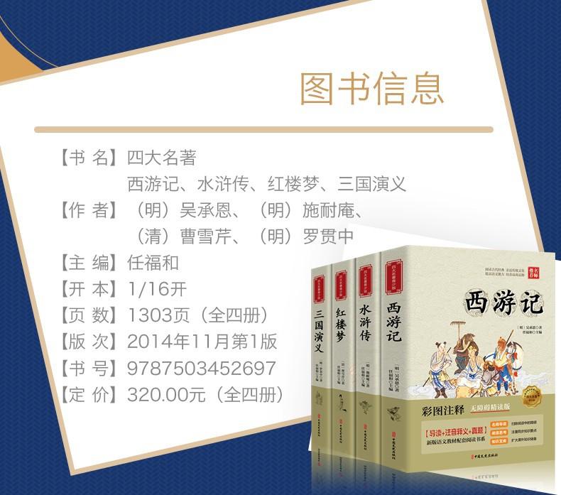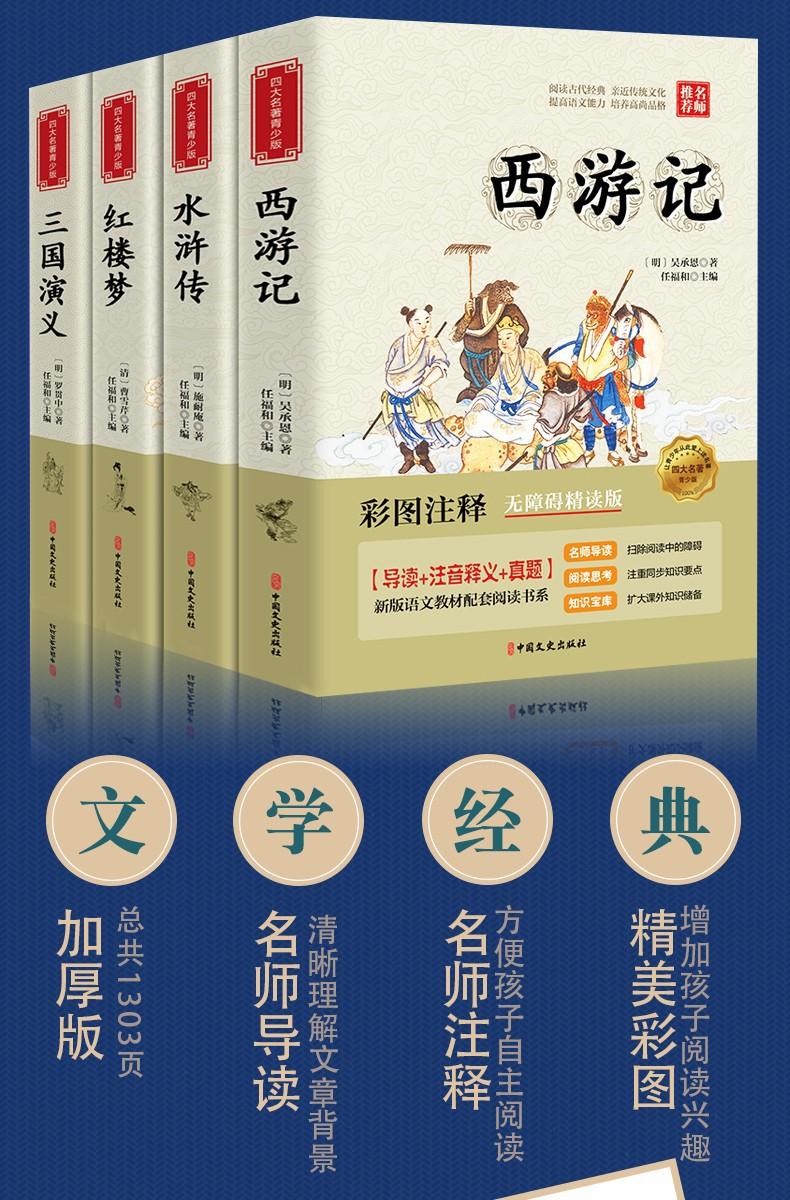 Cuatro Grandes Libros Conjunto Completo Edición Escuela Primaria 4 Original Viaje al Oeste Romance de los Tres Reinos Sueño de las Mansiones Rojas A la Orilla del Agua