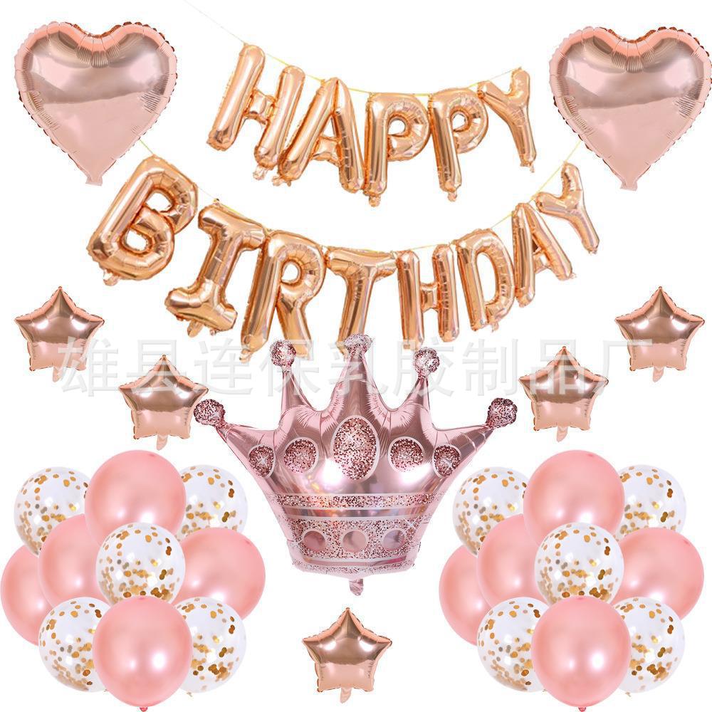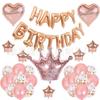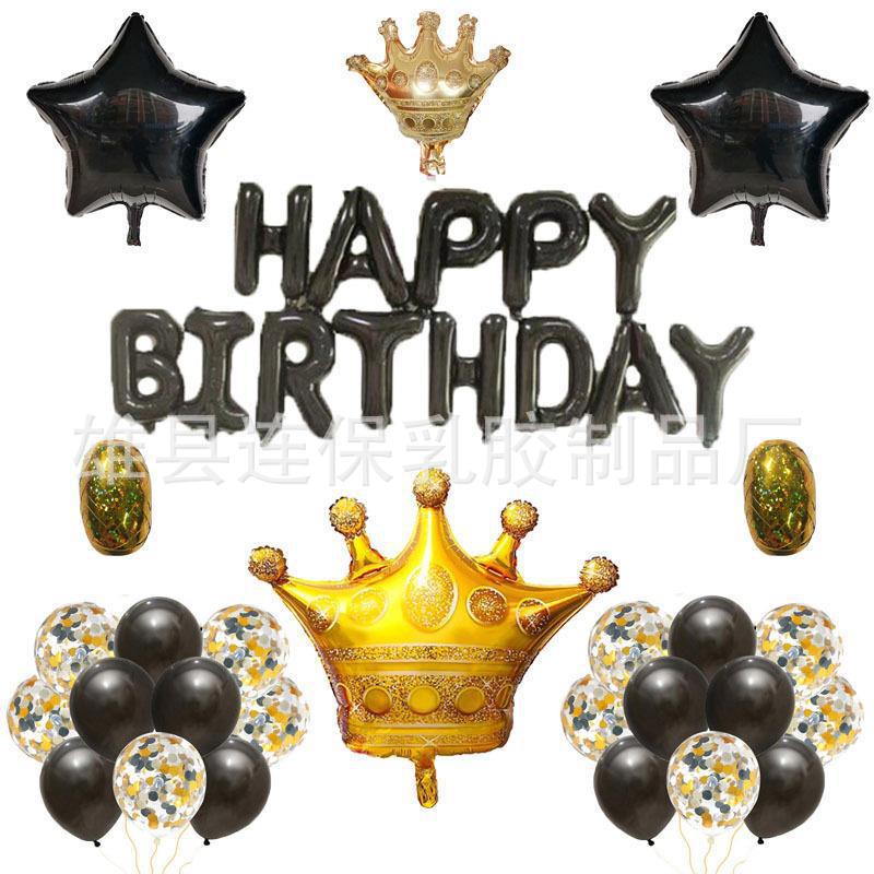 Globo de película de aluminio con corona de oro negro transfronterizo para decoración de fiestas de cumpleaños de adultos y niños, venta al por mayor