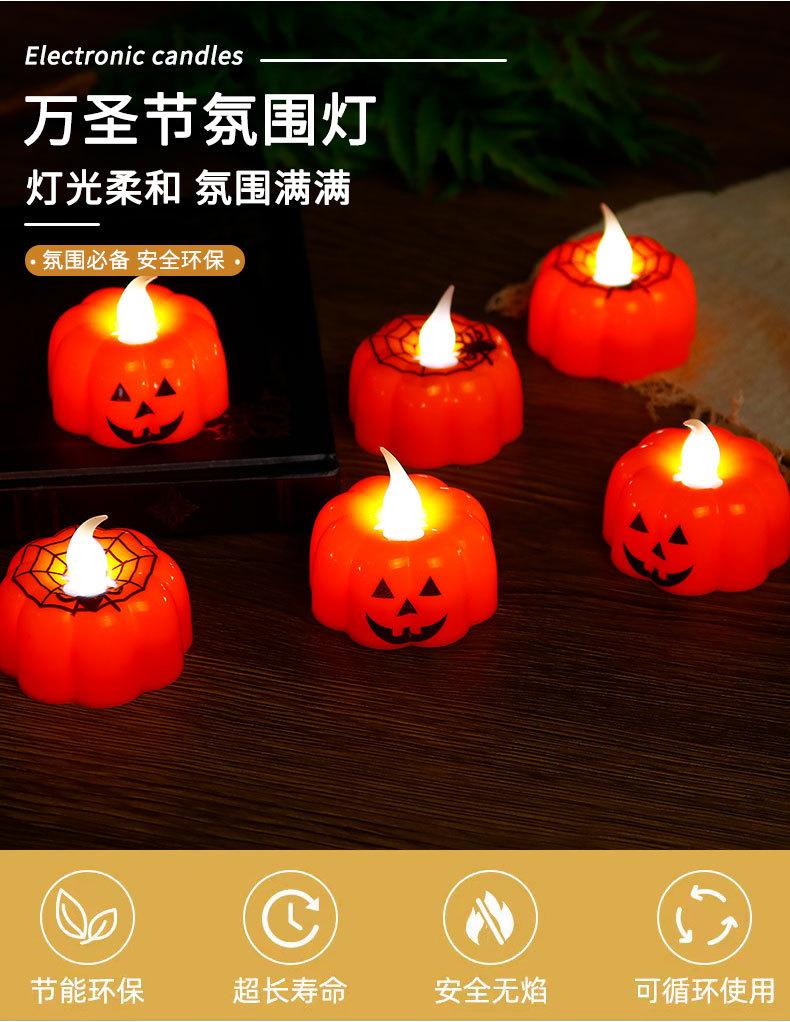 Vela electrónica con forma de calabaza de Halloween, luz LED transfronteriza, luz de té nocturna, decoración de fiesta, festival fantasma, accesorios de luz