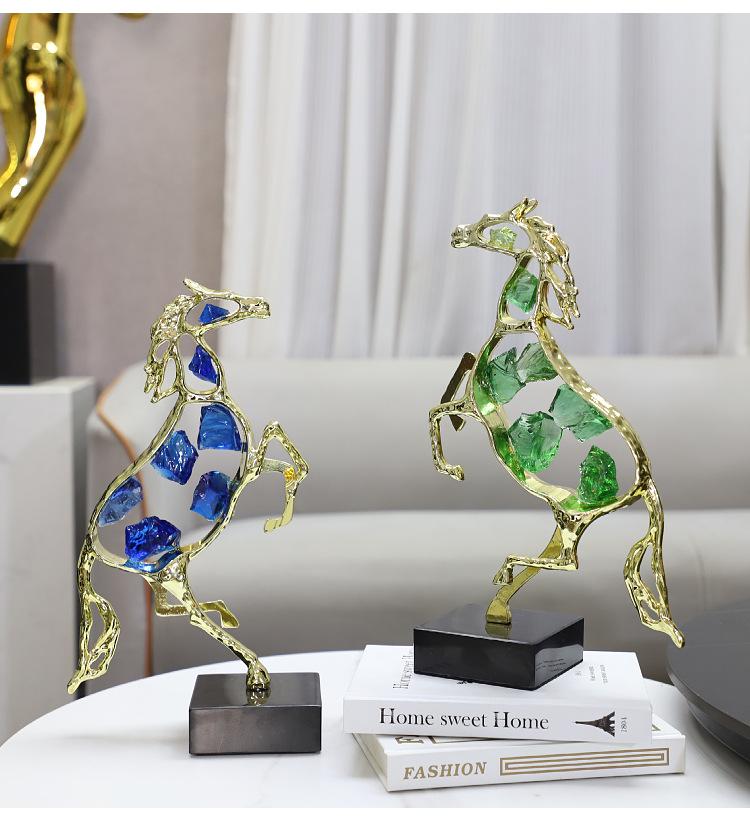 Adornos de Animales de Caballo de Piedra Hueca de Lujo Ligero de Gama Alta Estilo Europeo Caballo al Éxito Entrada Mueble de TV Decoraciones para el Hogar