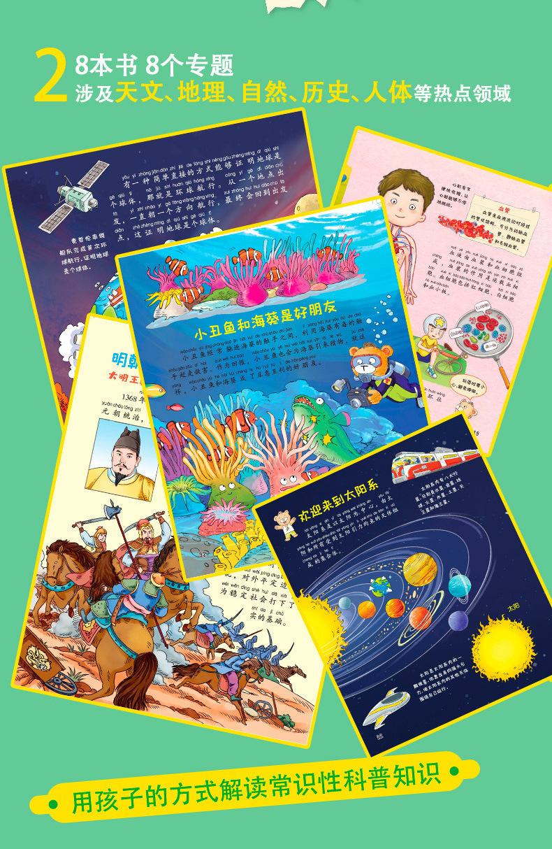 Enciclopedia infantil china, 8 colores, edición Zhuyin, libros de lectura de ciencia popular, actividades extracurriculares y de sentido común para niños