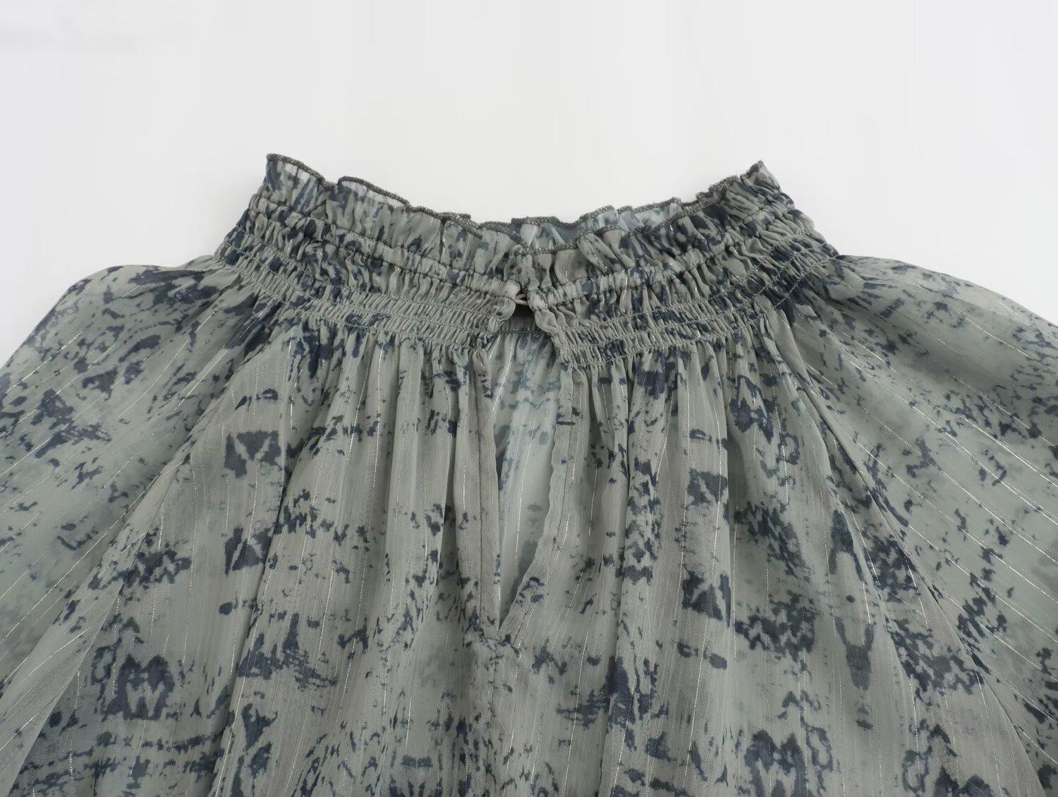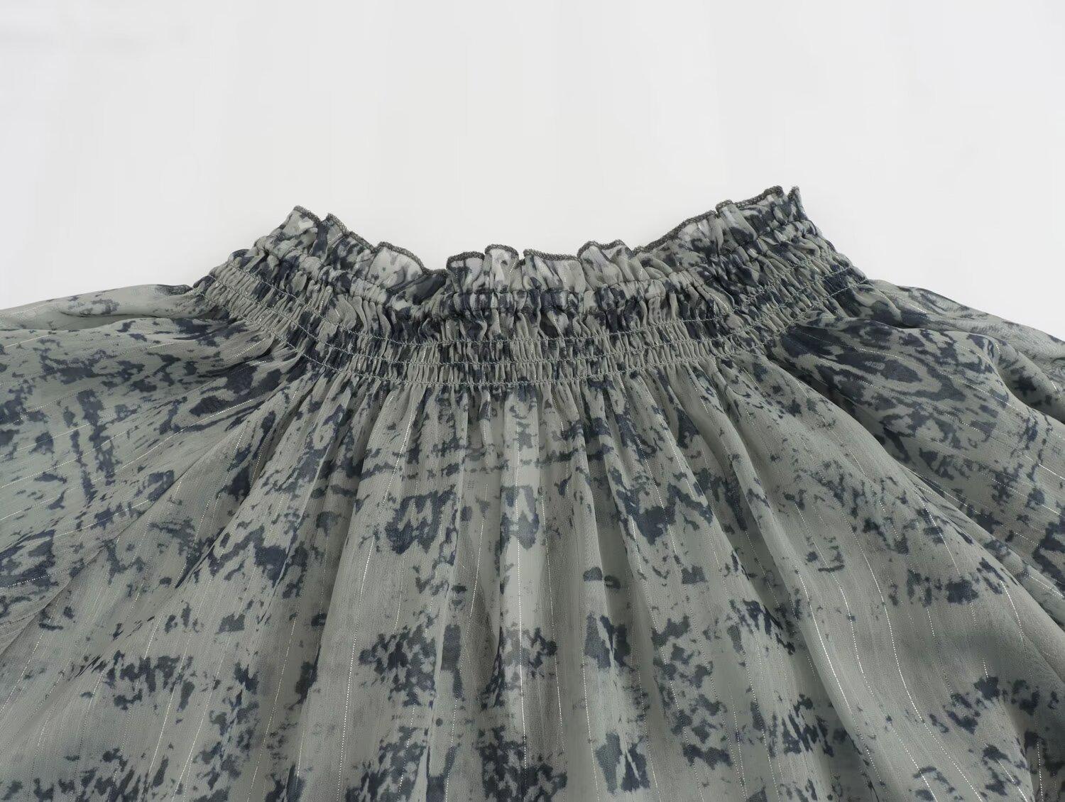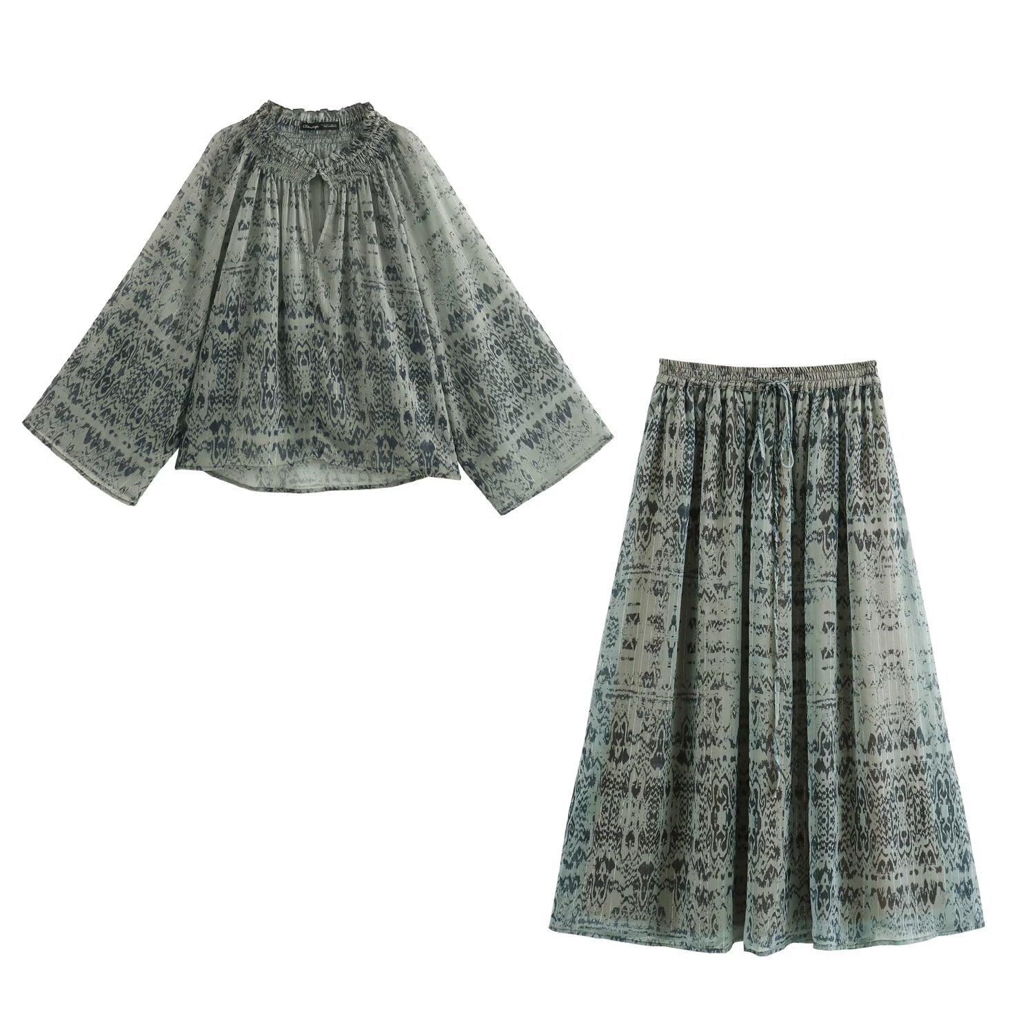 2024 Verano Nuevos Productos Europeo y Americano Transfronterizo Jersey de Mujer Suelto Hilo de Color Metálico Camisa Estampada + Falda
