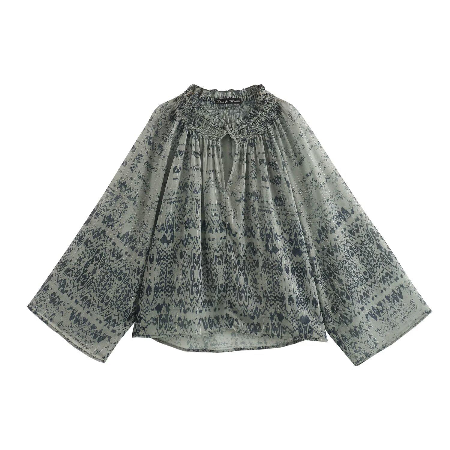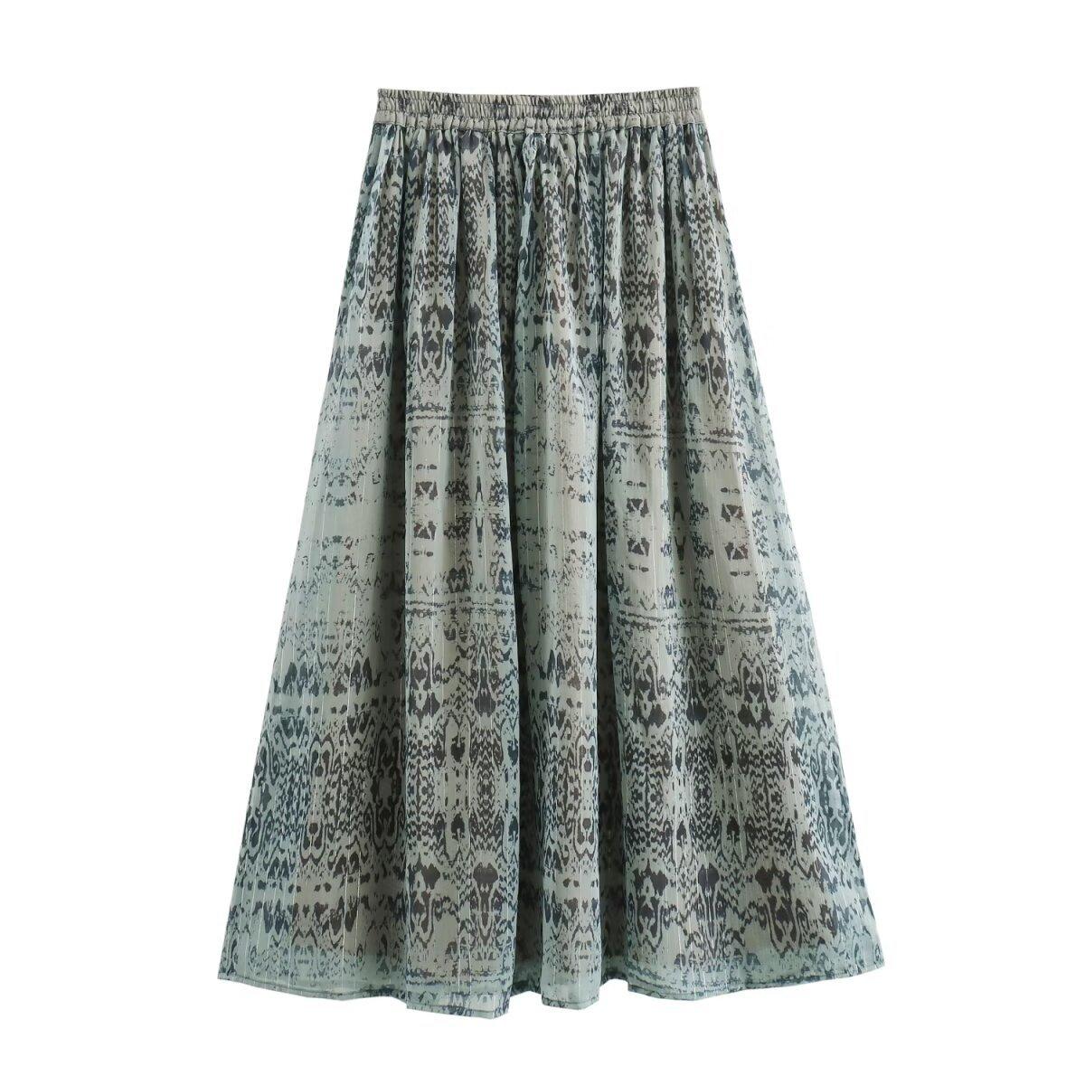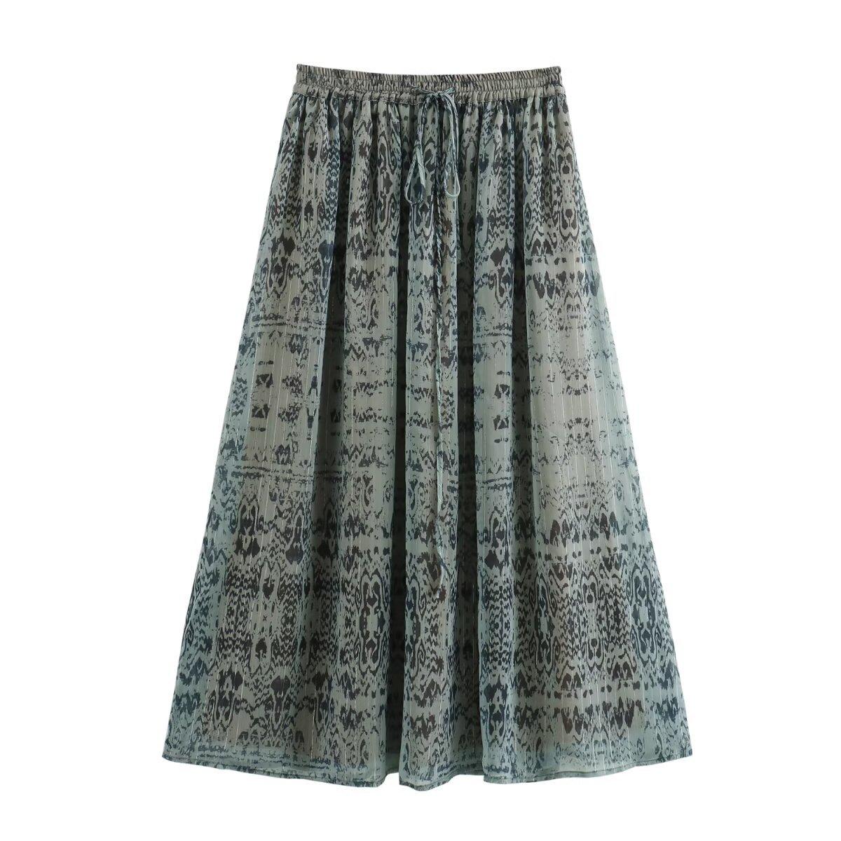 2024 Verano Nuevos Productos Europeo y Americano Transfronterizo Jersey de Mujer Suelto Hilo de Color Metálico Camisa Estampada + Falda