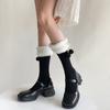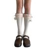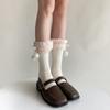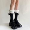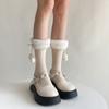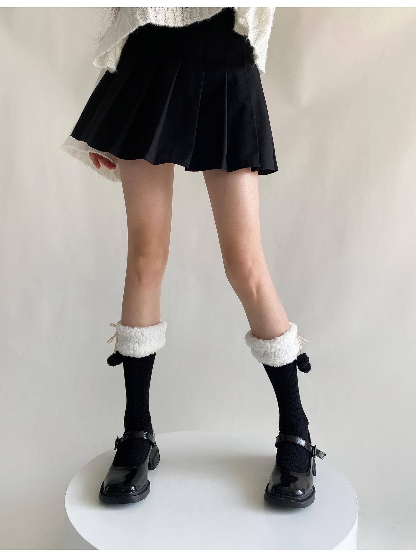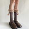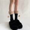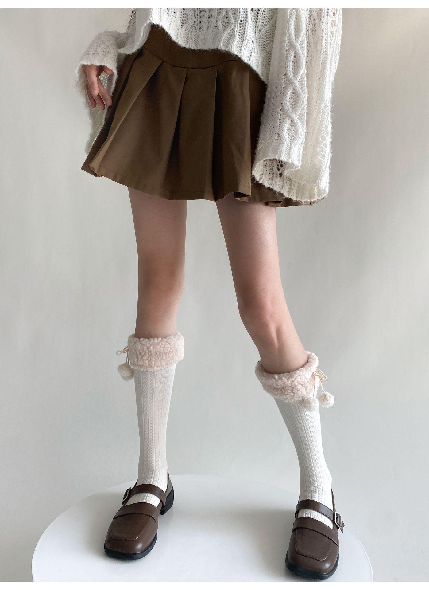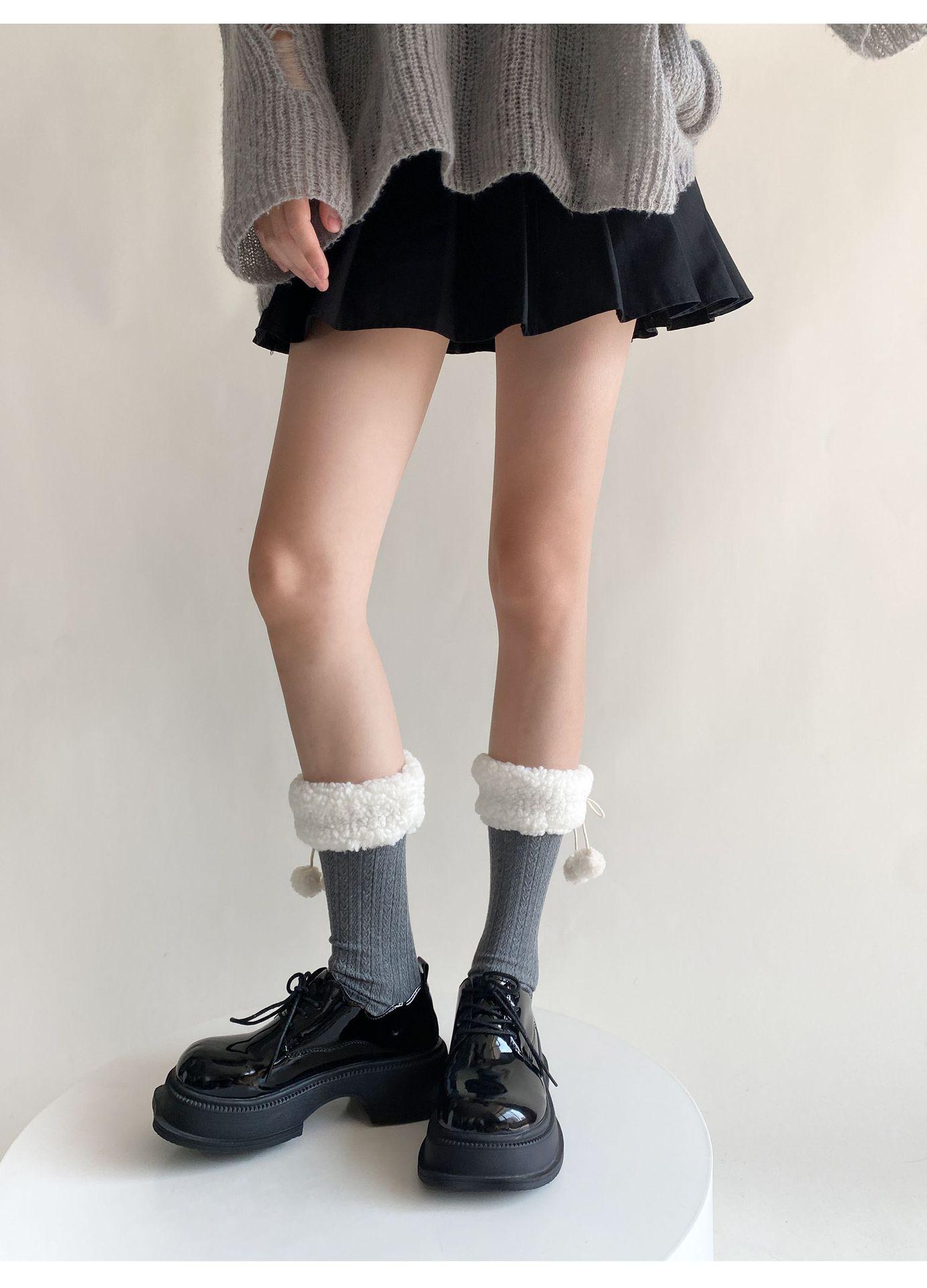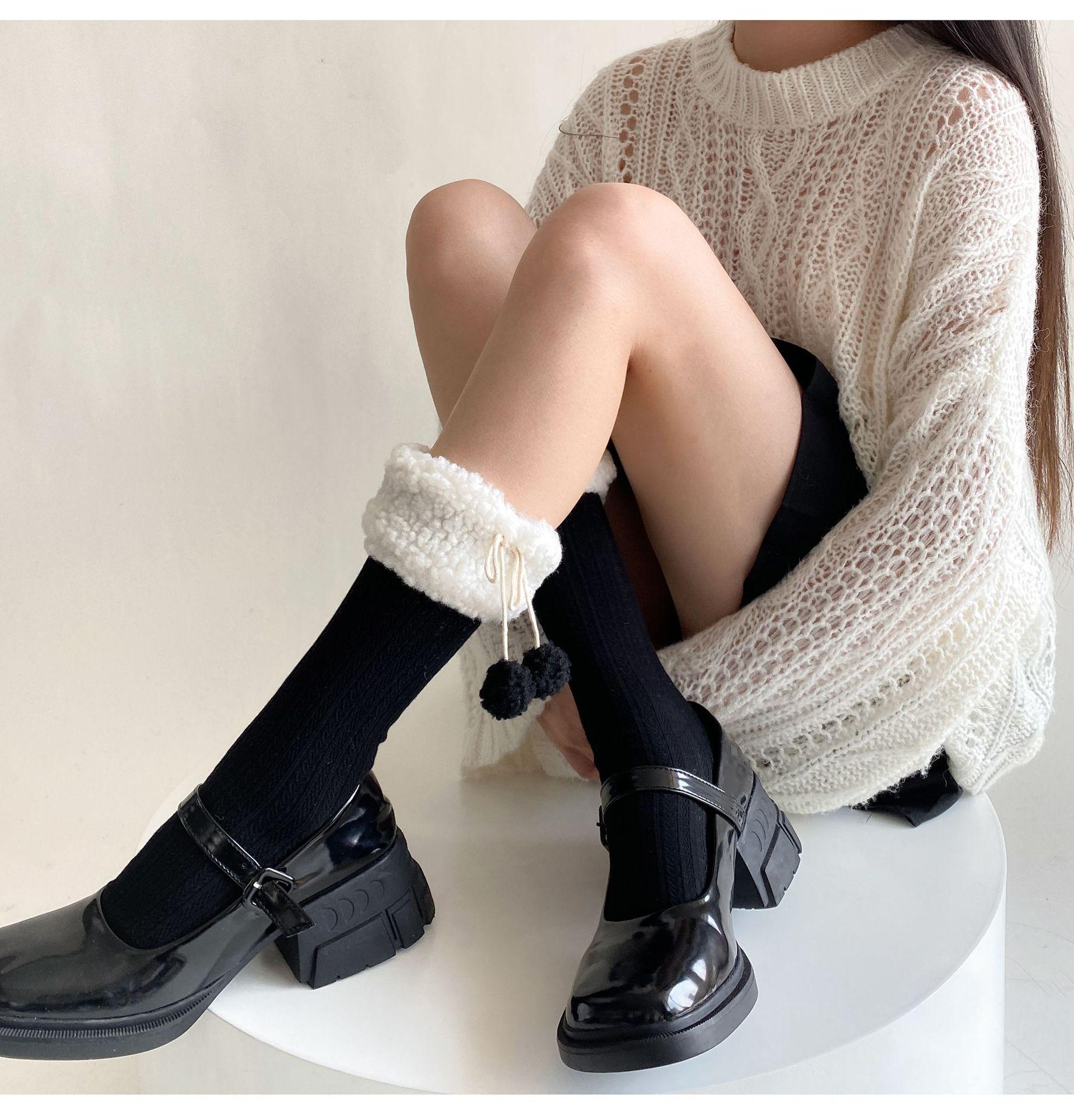Dulce lana de cordero encaje bola de pelo calcetines encantadores hasta la pantorrilla Marrón otoño e invierno calcetines de felpa hasta media pantorrilla calcetines japoneses para pierna de niña