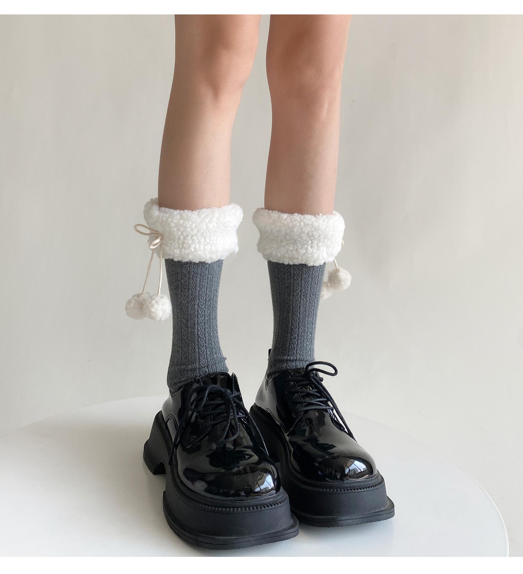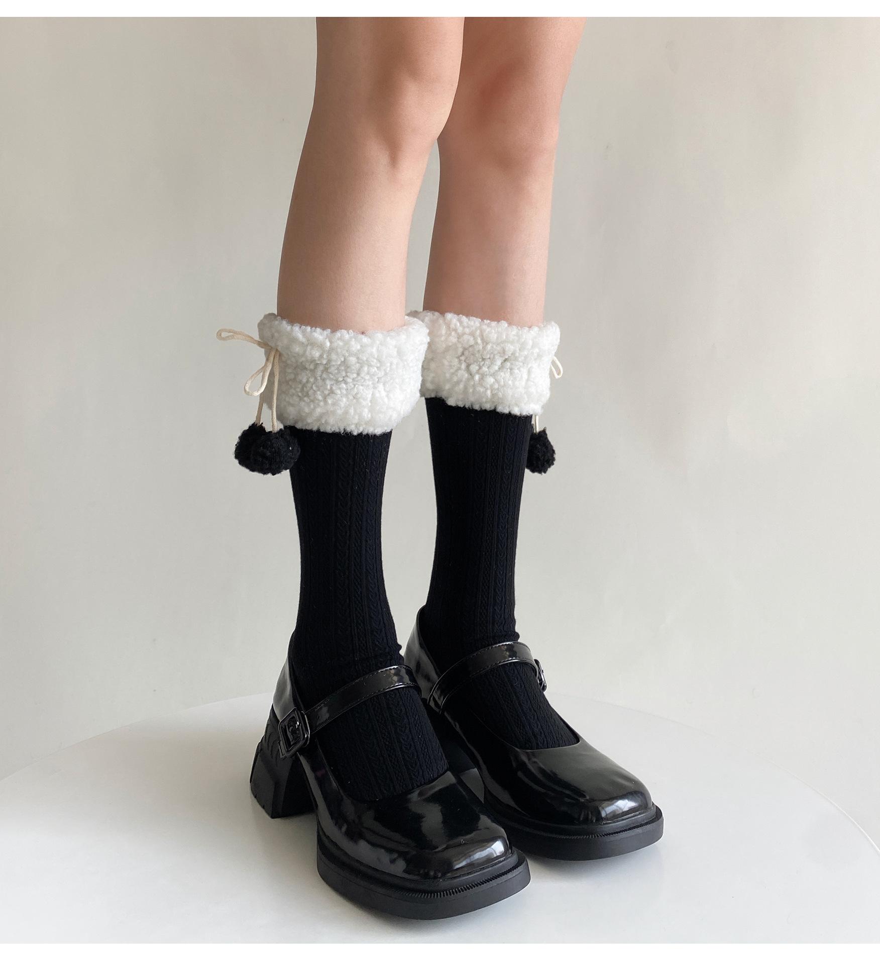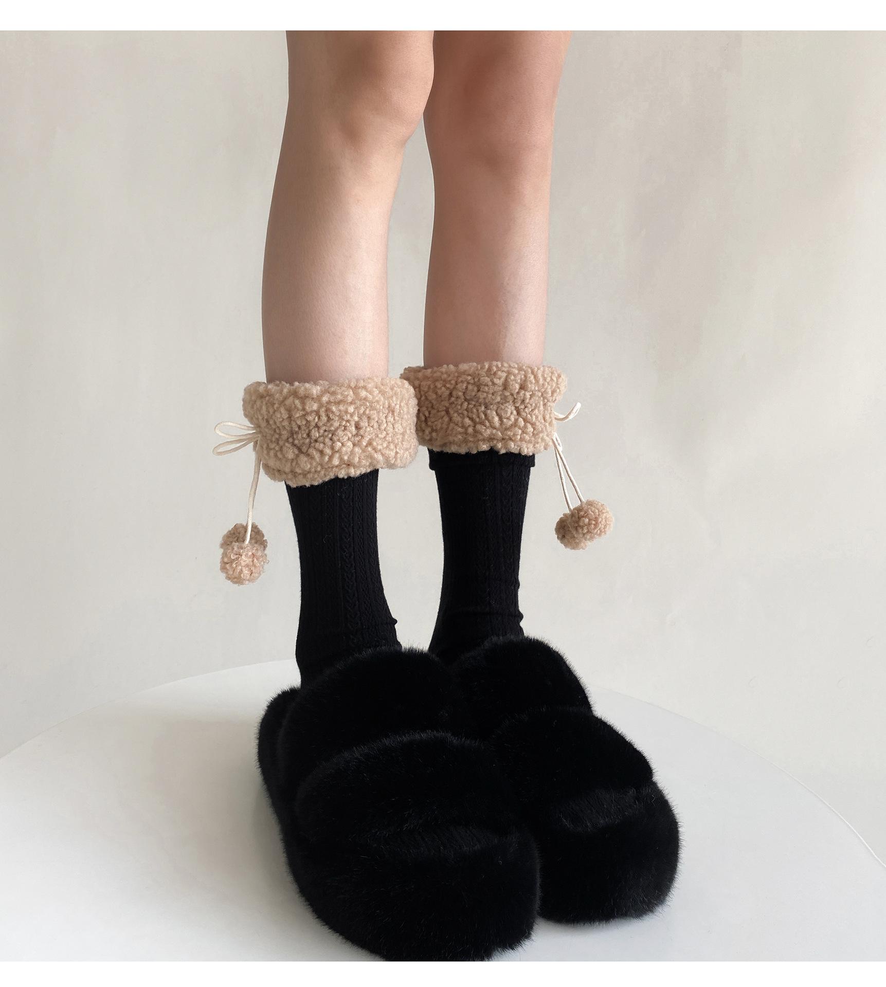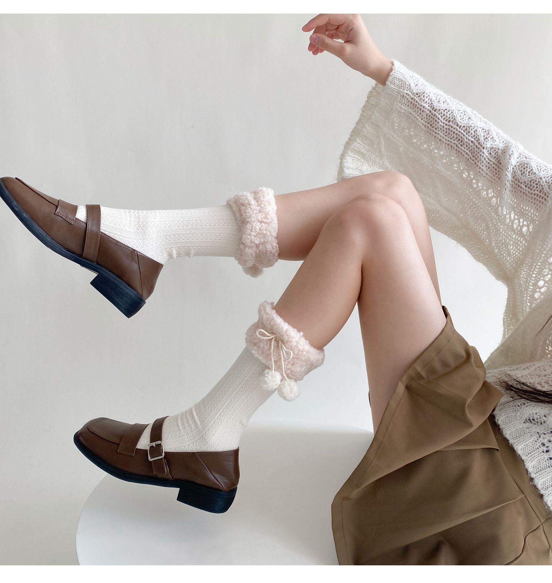 Compra Dulce lana de cordero encaje bola de pelo calcetines encantadores hasta la pantorrilla Marrón otoño e invierno calcetines de felpa hasta media pantorrilla calcetines japoneses para pierna de niña al por mayor en Joom.pro