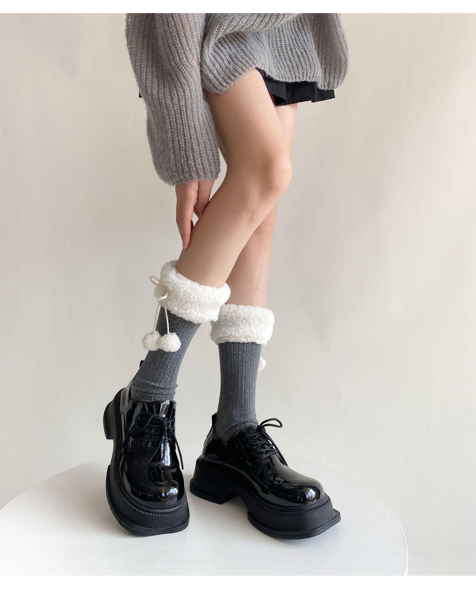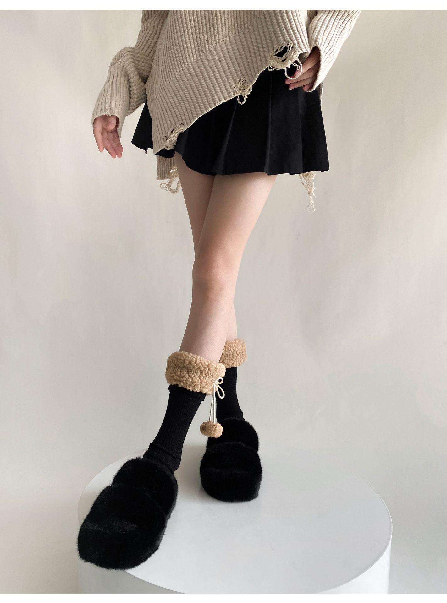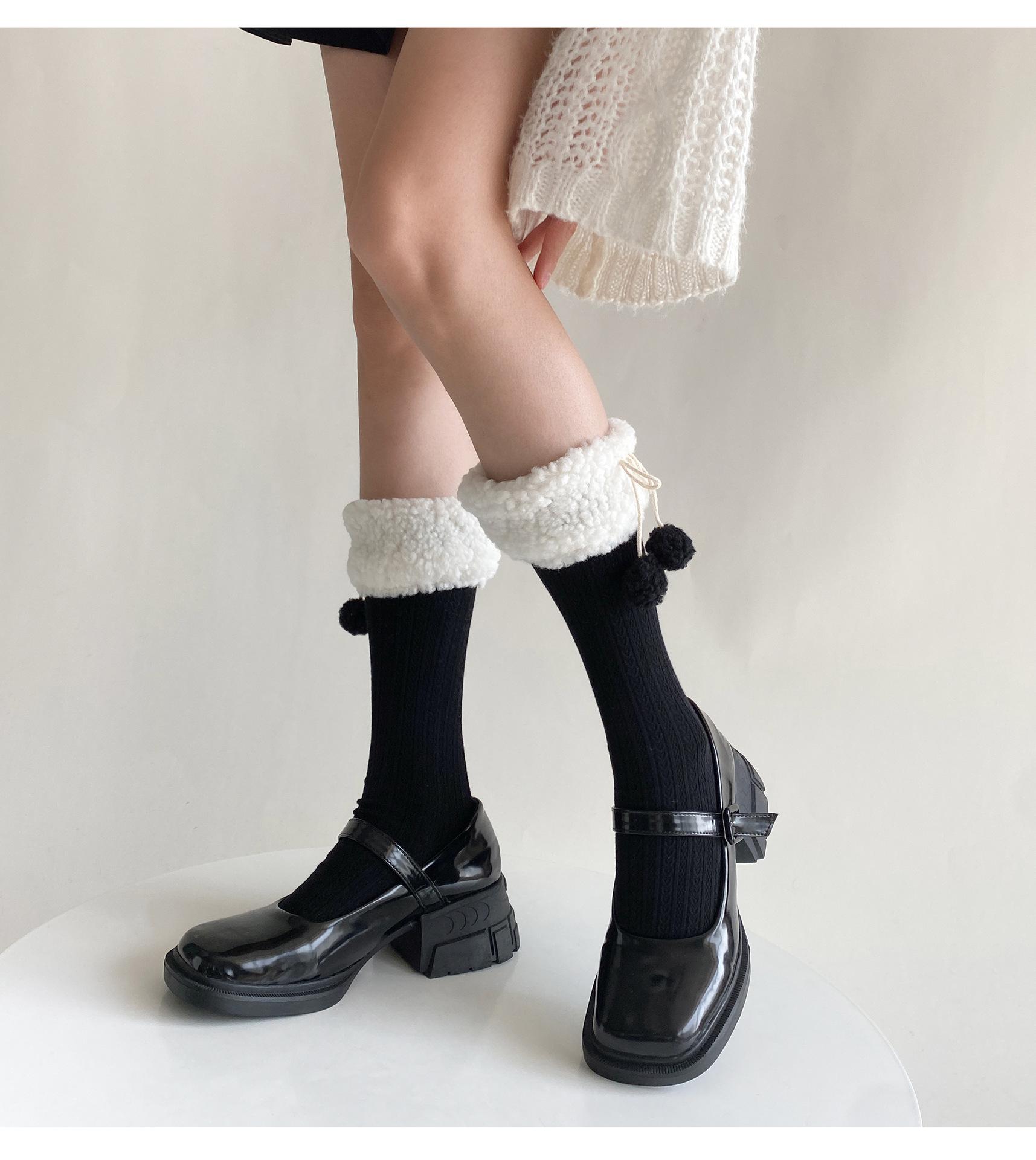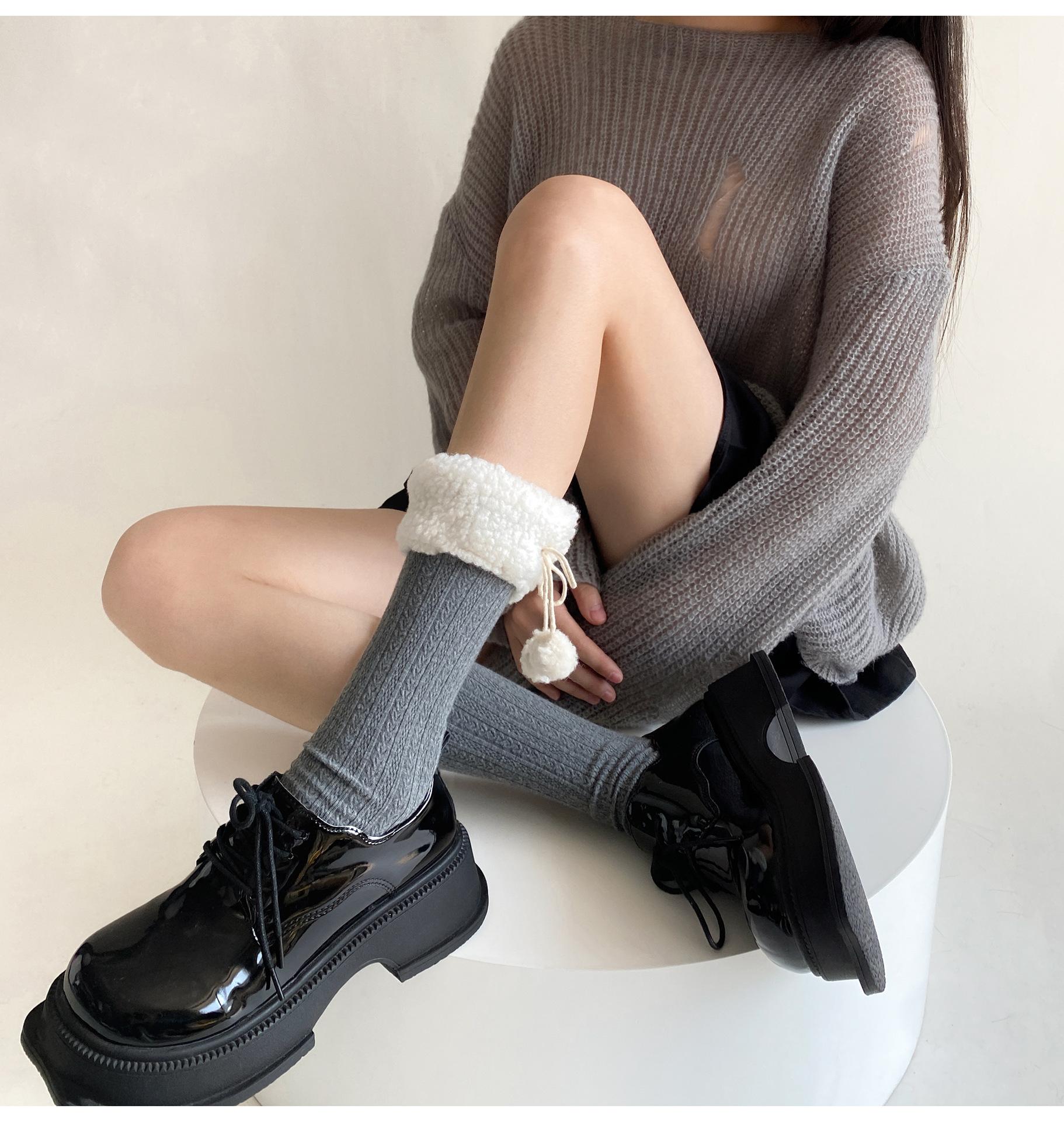 Compra Dulce lana de cordero encaje bola de pelo calcetines encantadores hasta la pantorrilla Marrón otoño e invierno calcetines de felpa hasta media pantorrilla calcetines japoneses para pierna de niña al por mayor en Joom.pro