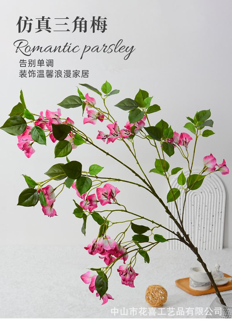 Fábrica de ciruelas triangulares de simulación, venta al por mayor, decoración del hogar, boda, hotel, auditorio, techo, flor, ventana, paisajismo, flor de seda