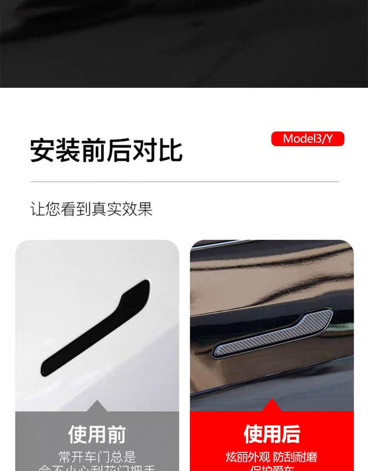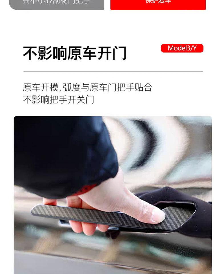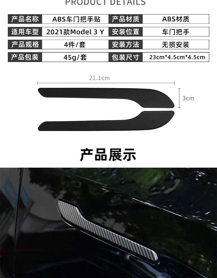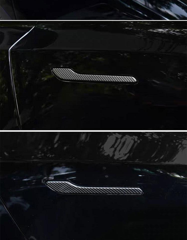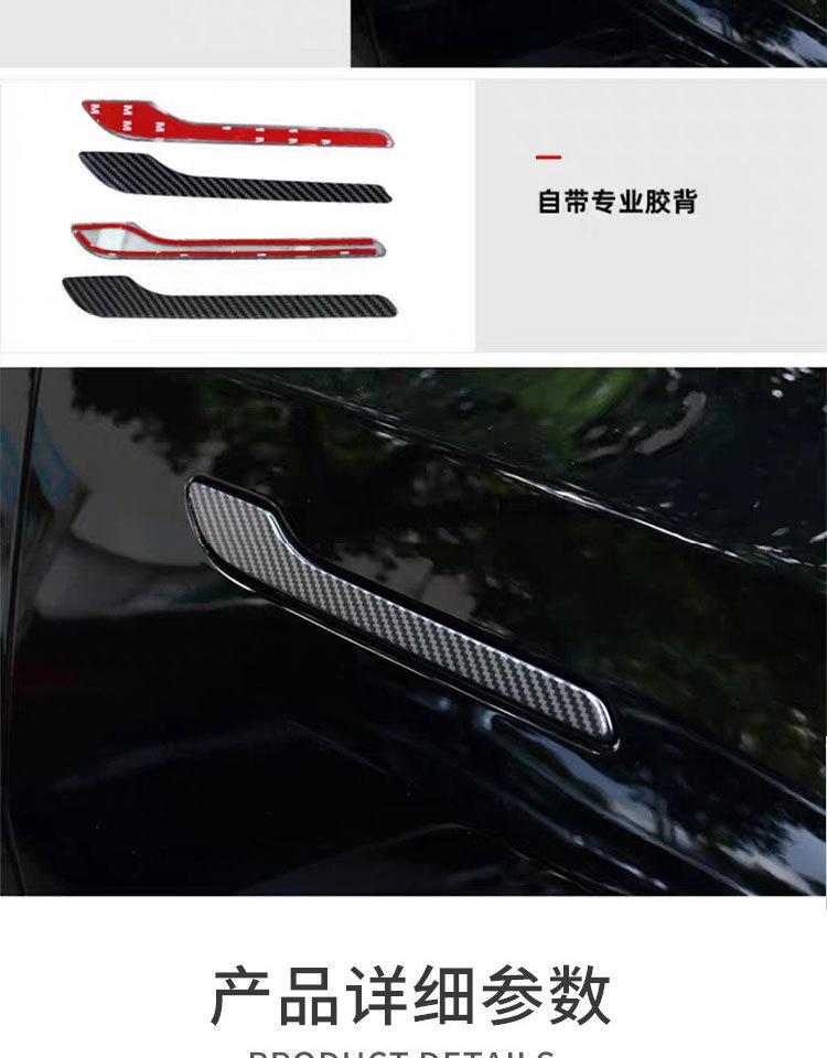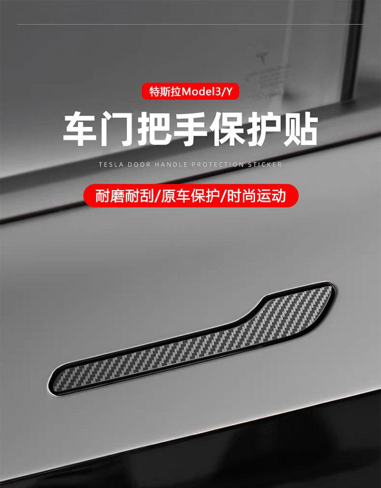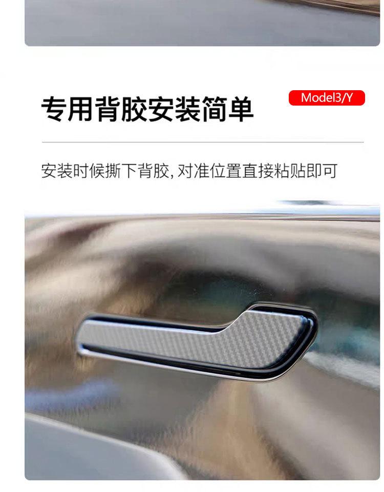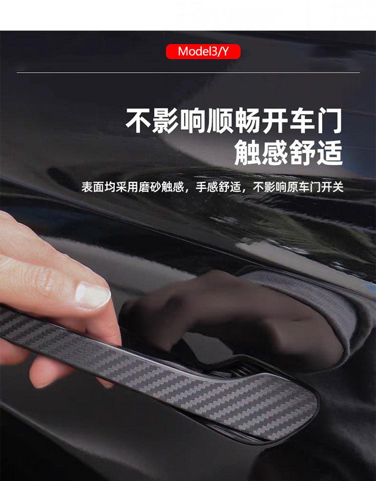 Aplicable a Tesla Rejuvenecimiento Modelo Y/3 Manija de Puerta Manija Adhesivo Patrón de Fibra de Carbono Adhesivo Decoración Exterior Accesorios de Modificación