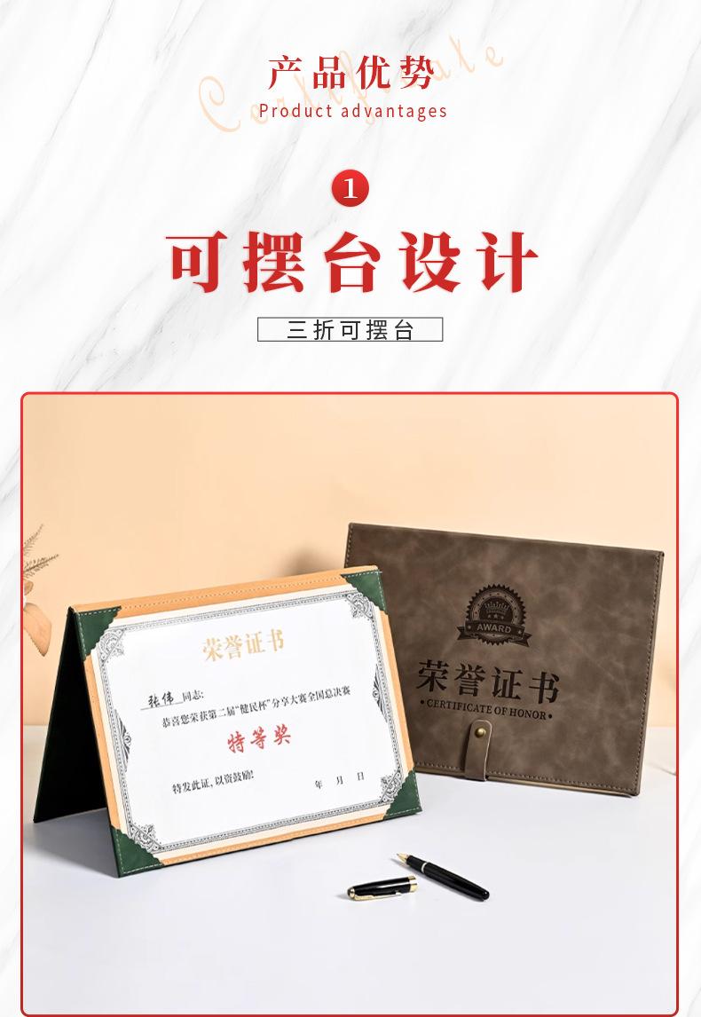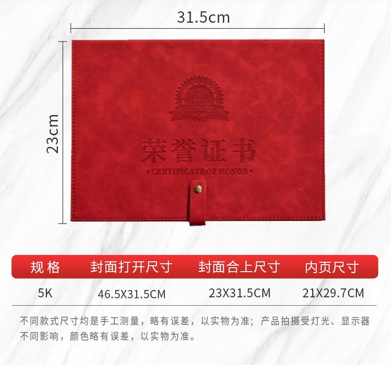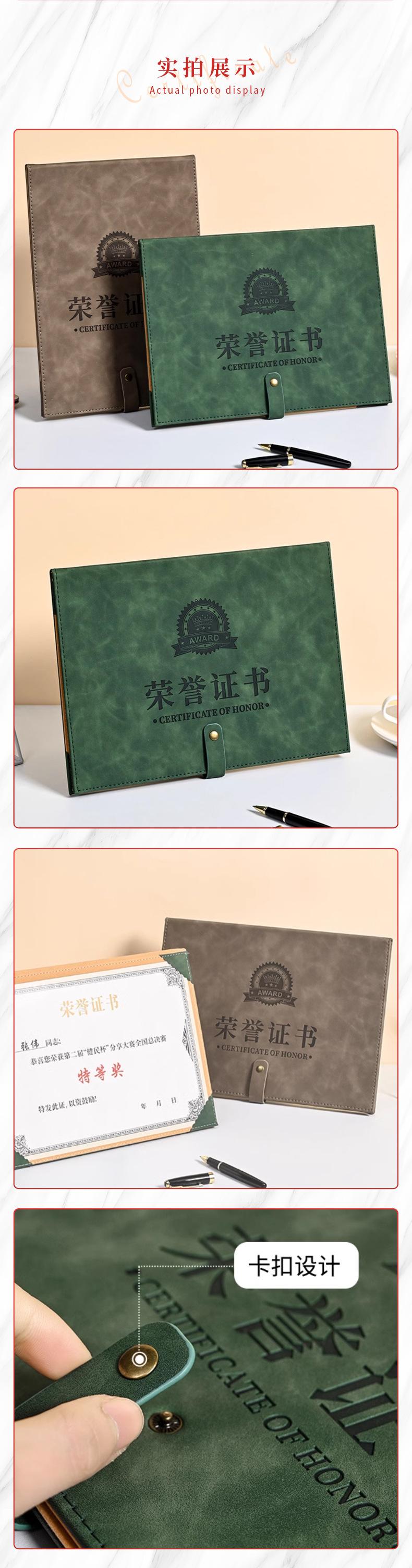 Certificado de Honor Personalizado Horizontal Cambio de Color Cuero Bronceado Edición Vertical Premio Cubierta Ganadora del Premio Cubierta Impresión Central Personalizada ww