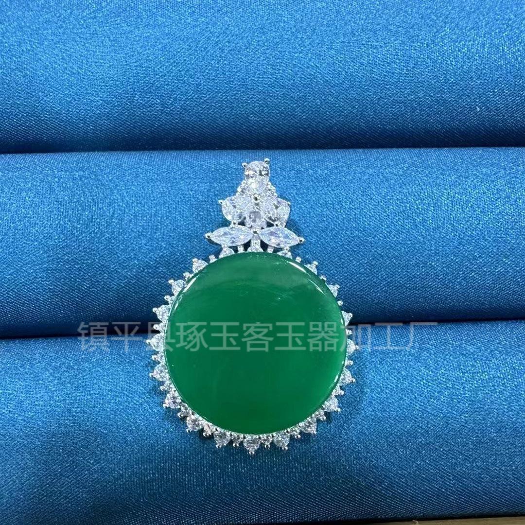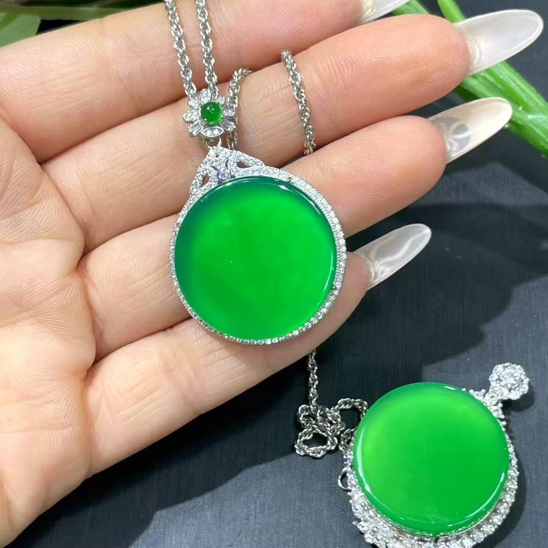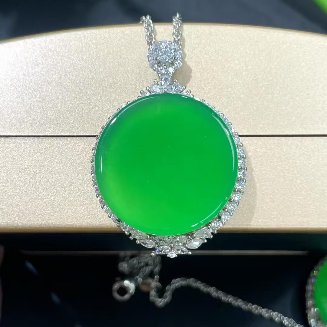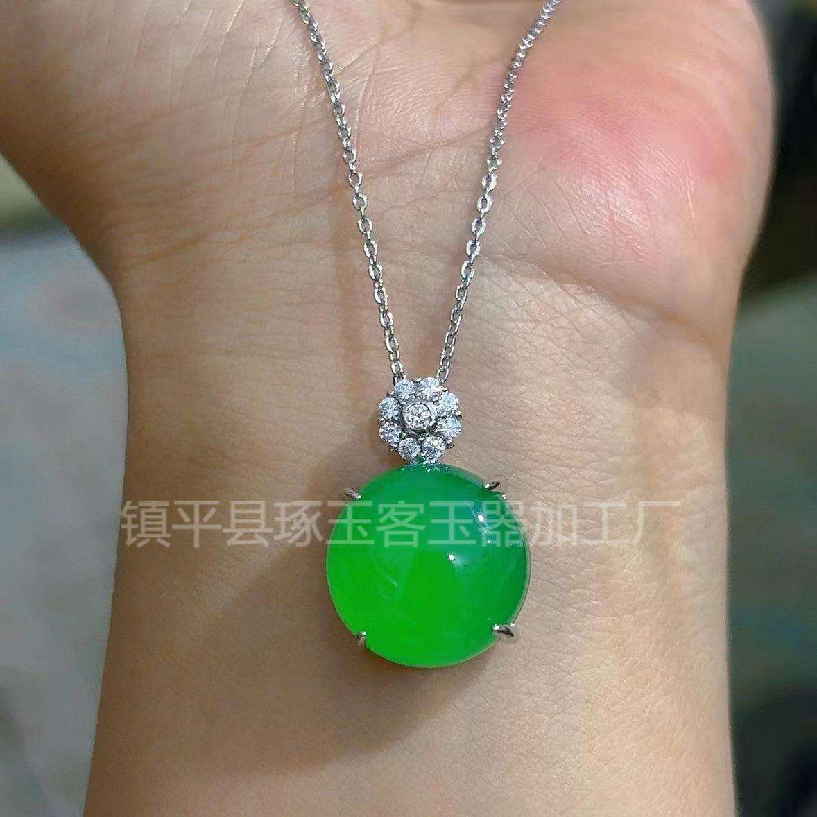 【Nombre del producto】Colgante de calcedonia verde bañado en plata