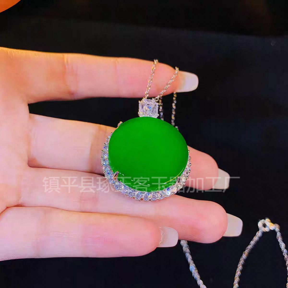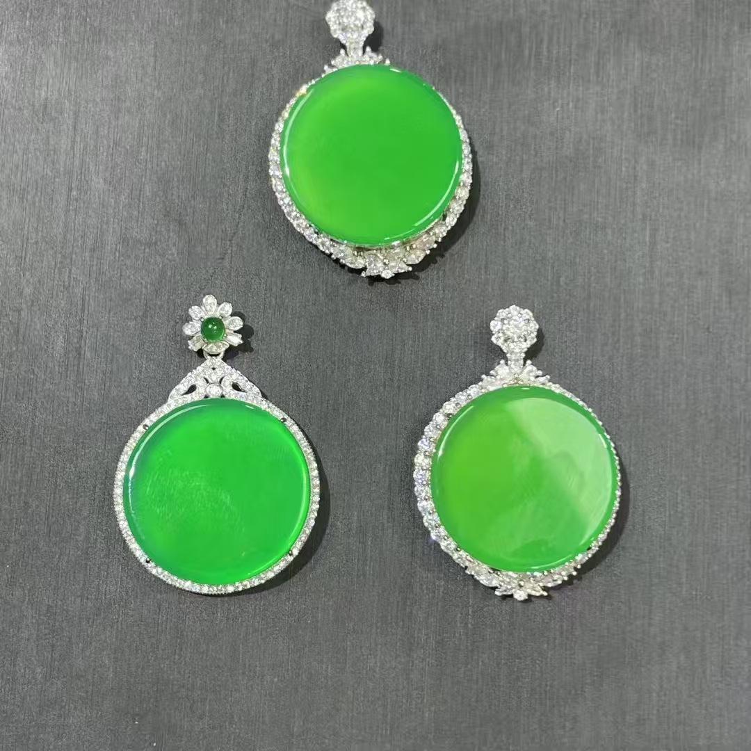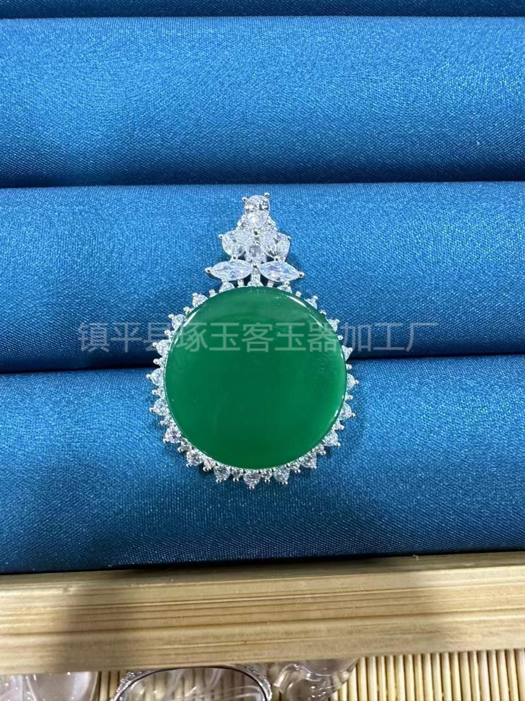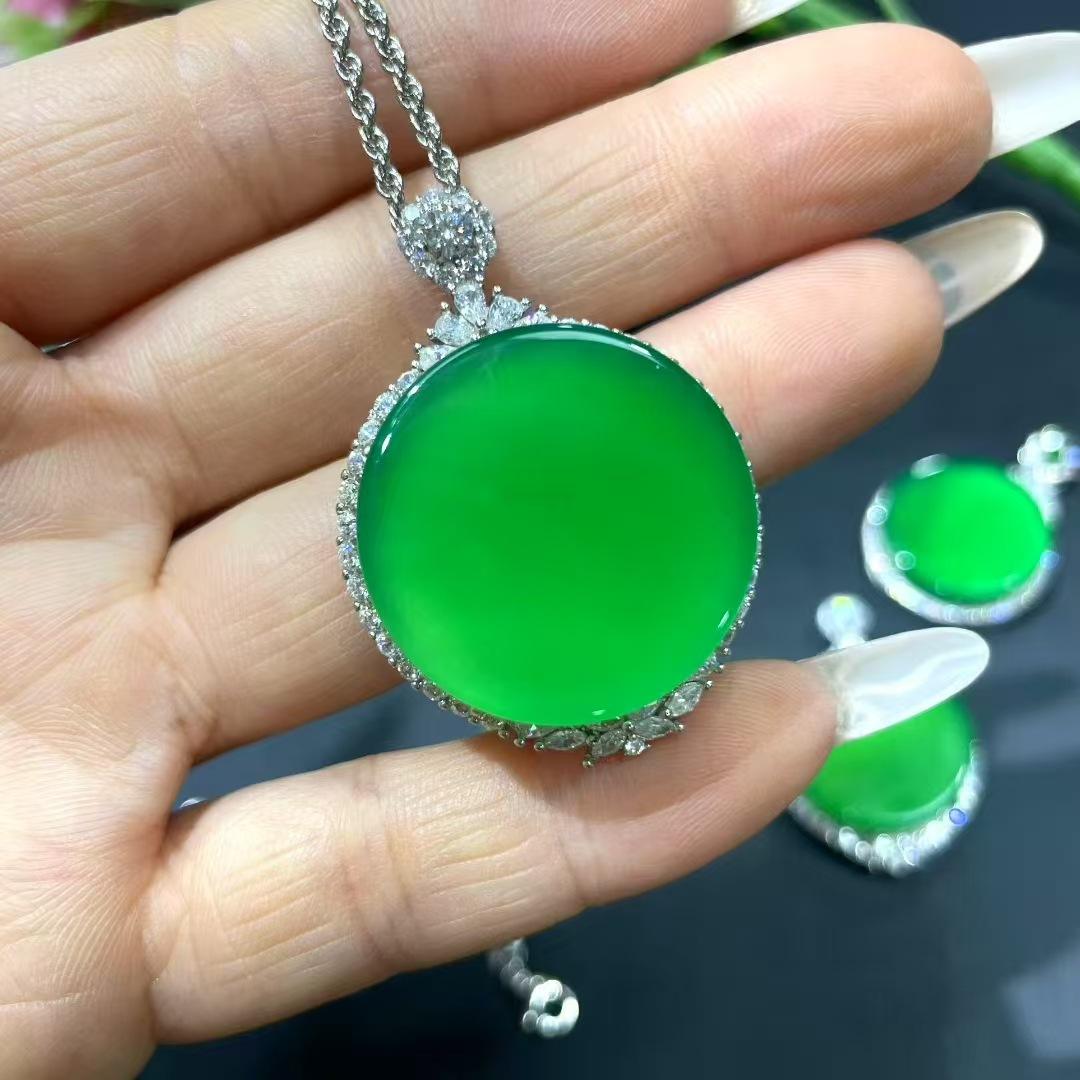【Nombre del producto】Colgante de calcedonia verde bañado en plata