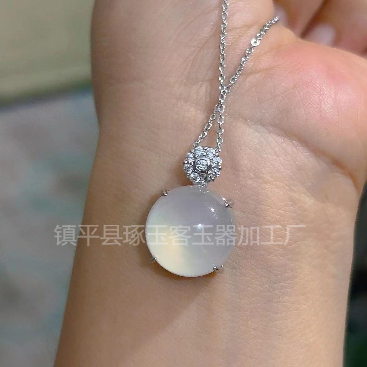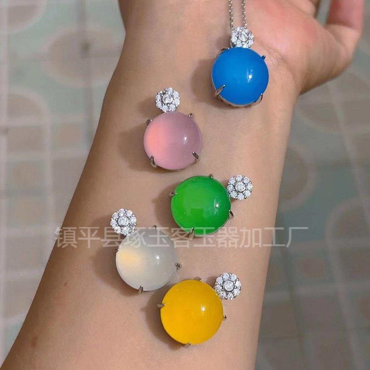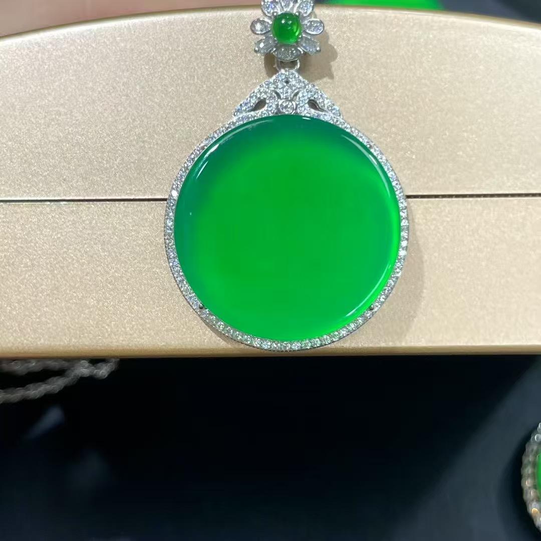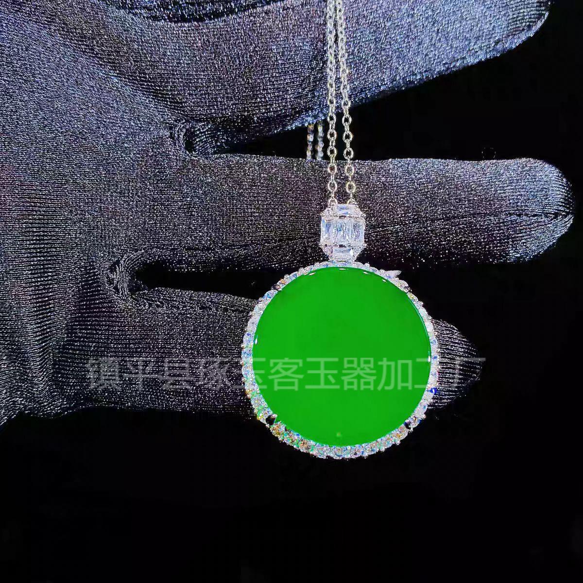 【Nombre del producto】Colgante de calcedonia verde bañado en plata