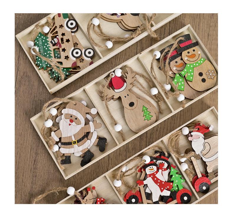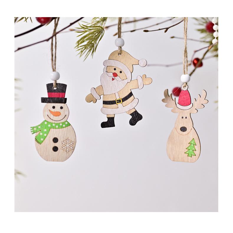 Adornos navideños de madera colgantes para árbol de Navidad, fiesta, Papá Noel, muñeco de nieve, combinación.