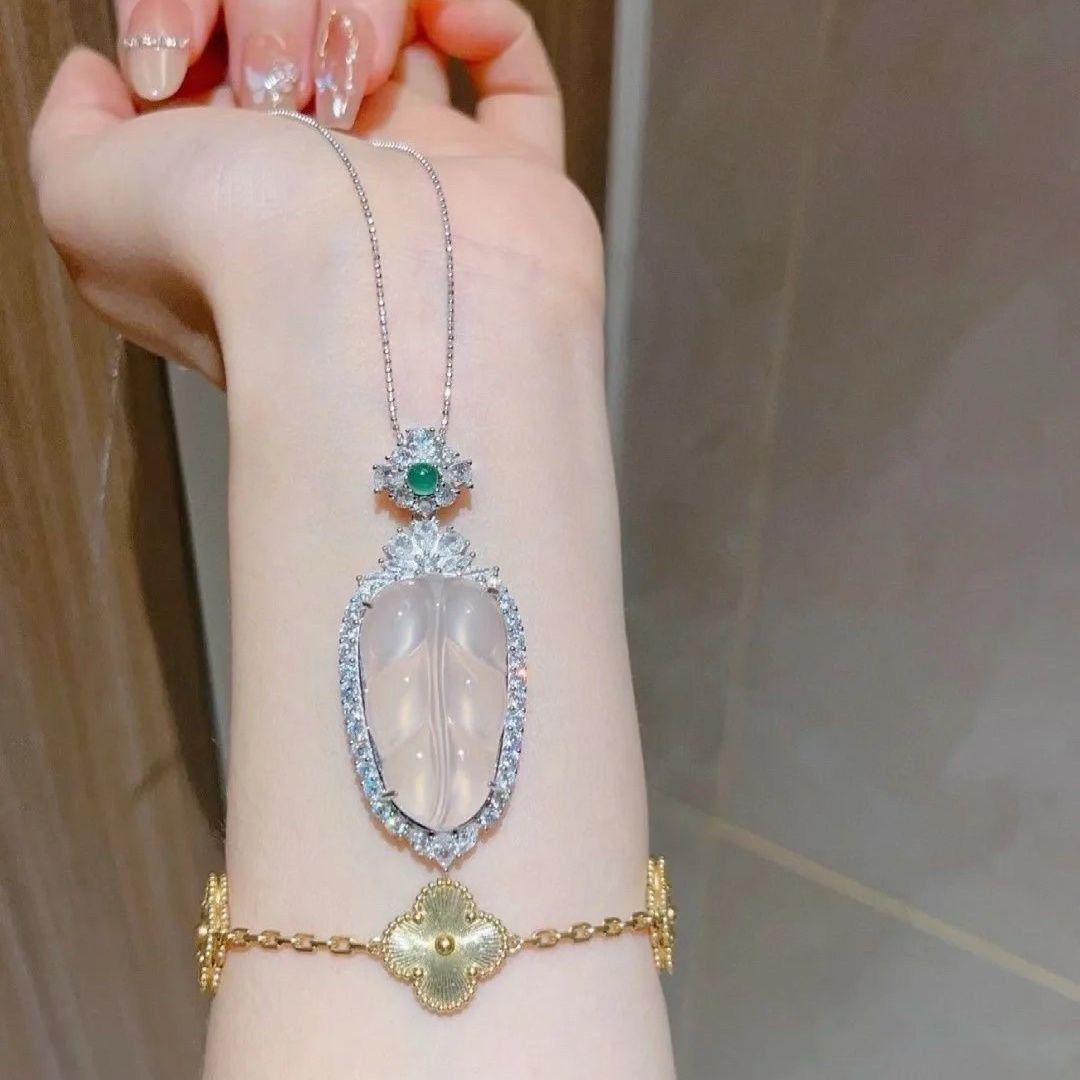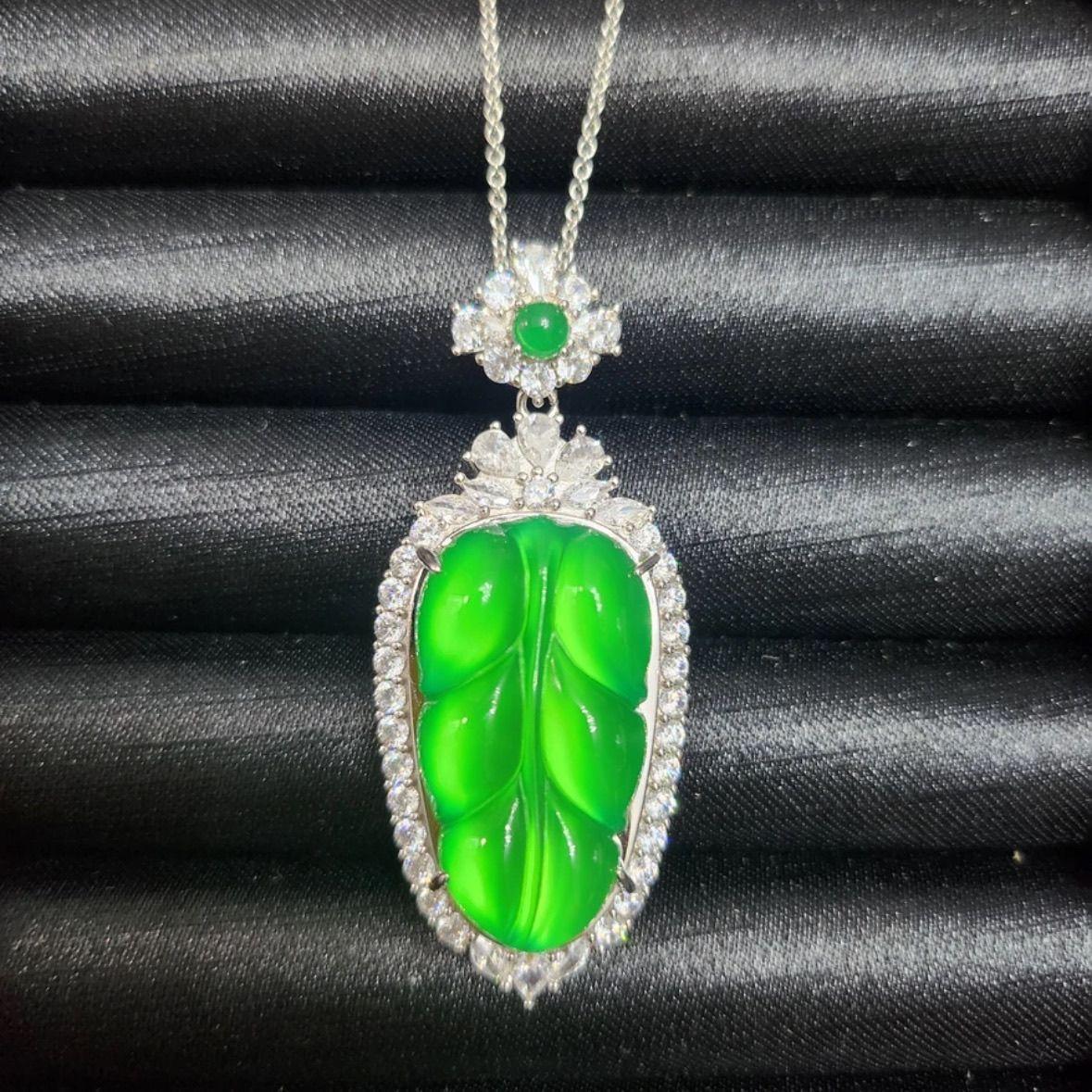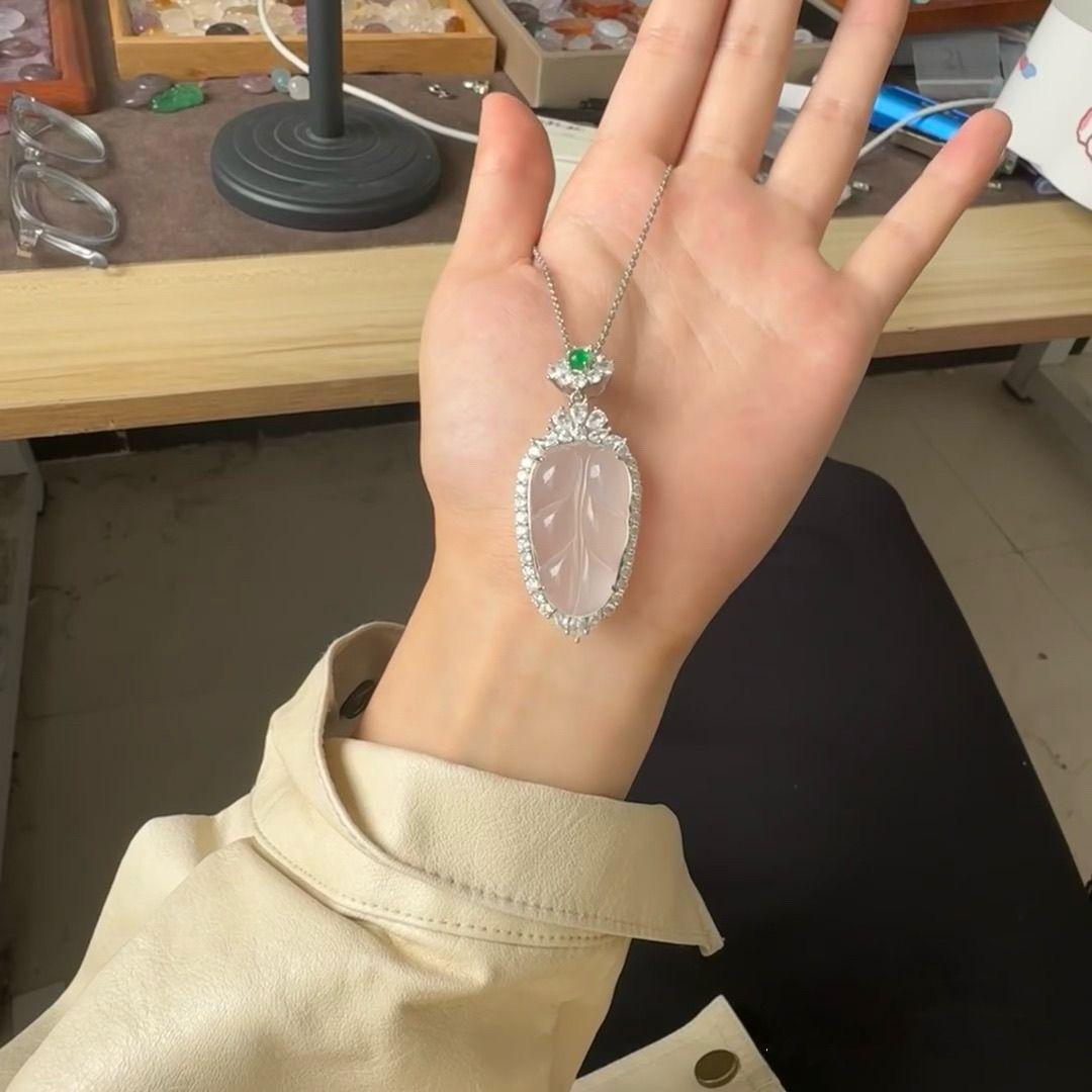 [Nombre del bebé] Exquisito colgante de hoja de calcedonia