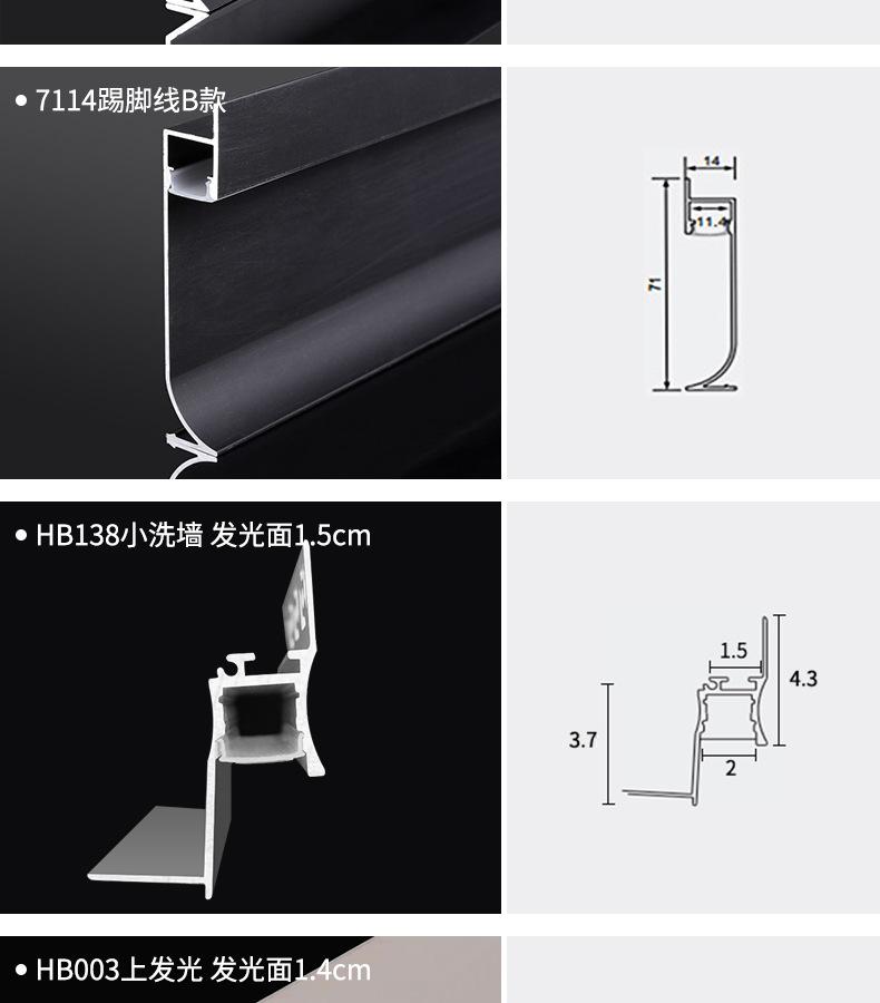 646 sun corner embedded gray, 647 shade embedded gray, 7114 skirting line B, HB003 upper luminous-luminous sur...