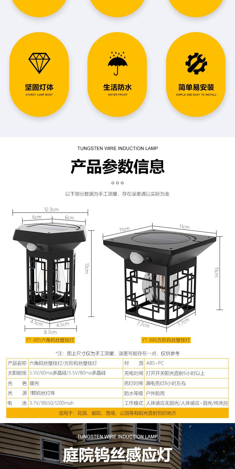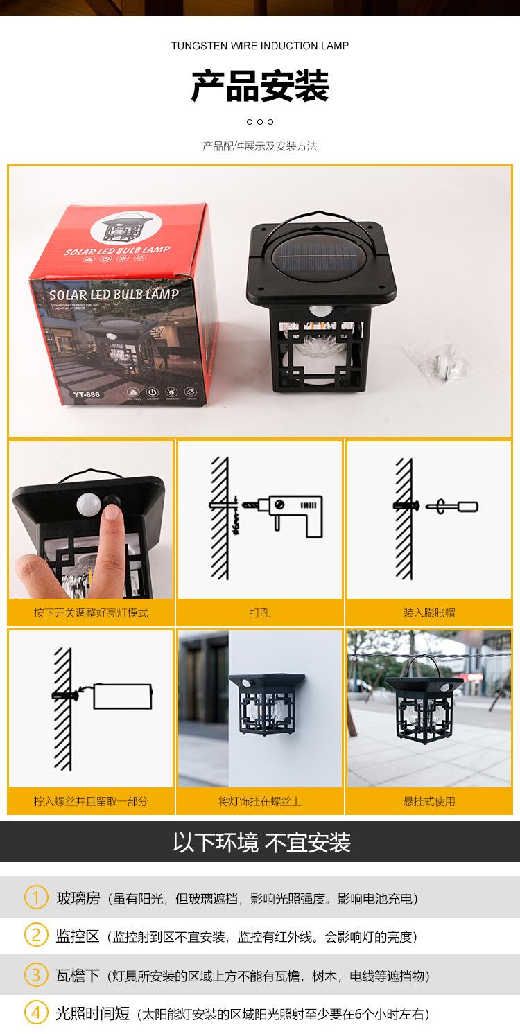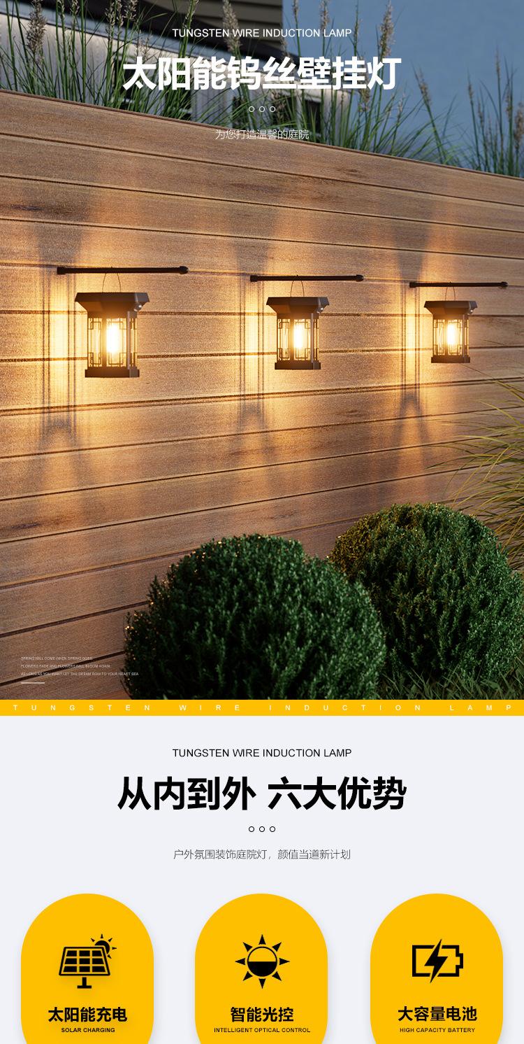 Lámpara de pared solar para exteriores con inducción del cuerpo humano, lámpara de pared de alambre de tungsteno de tres modos, luz nocturna para jardín, villa, patio, a prueba de lluvia