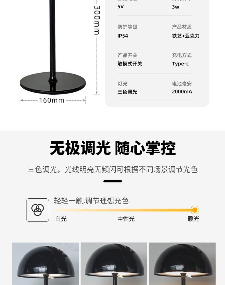 Lámpara de Escritorio Inteligente LED Negra Luz Nocturna Ins Recargable Atenuación de Tres Niveles Atmósfera Estudio Mesita de Noche Protección Ocular Mesita de Noche