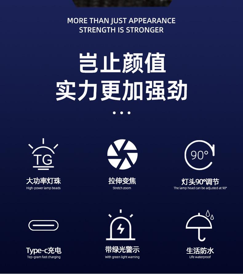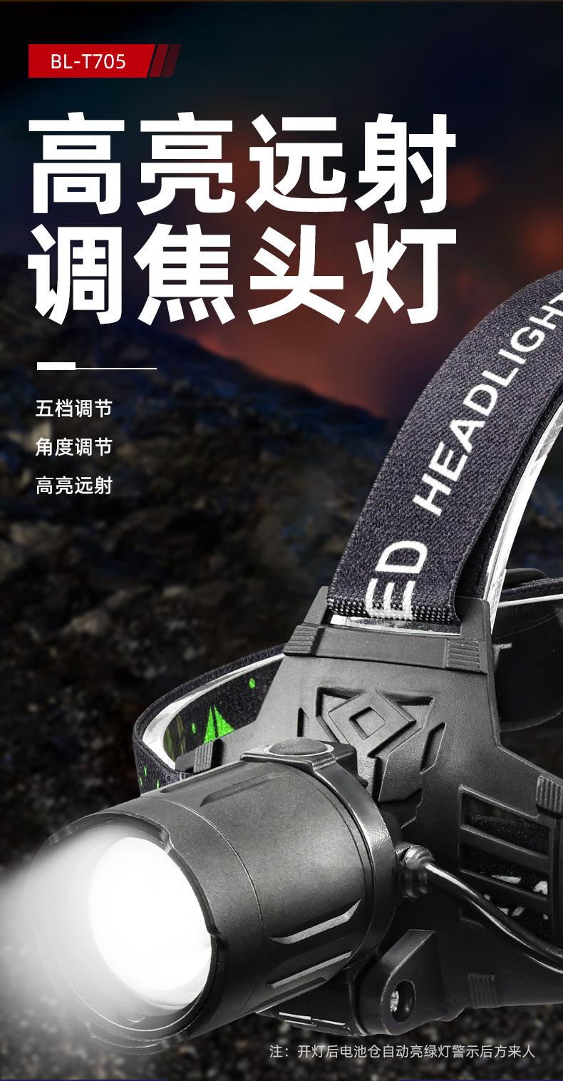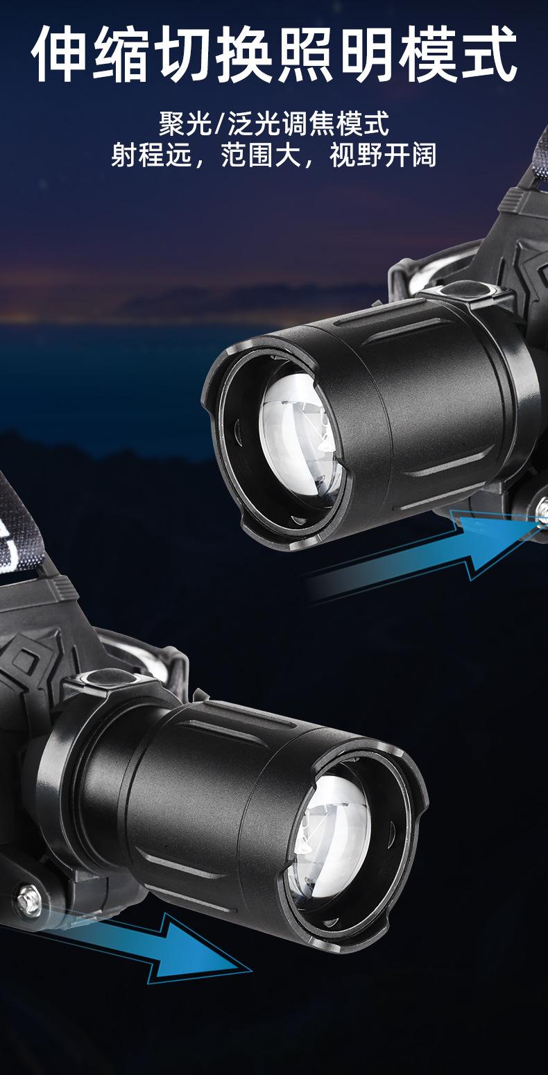 Nuevo faro LED de luz fuerte con zoom, carga USB, para exteriores, pesca nocturna, impermeable, larga vida útil, portátil, de largo alcance.