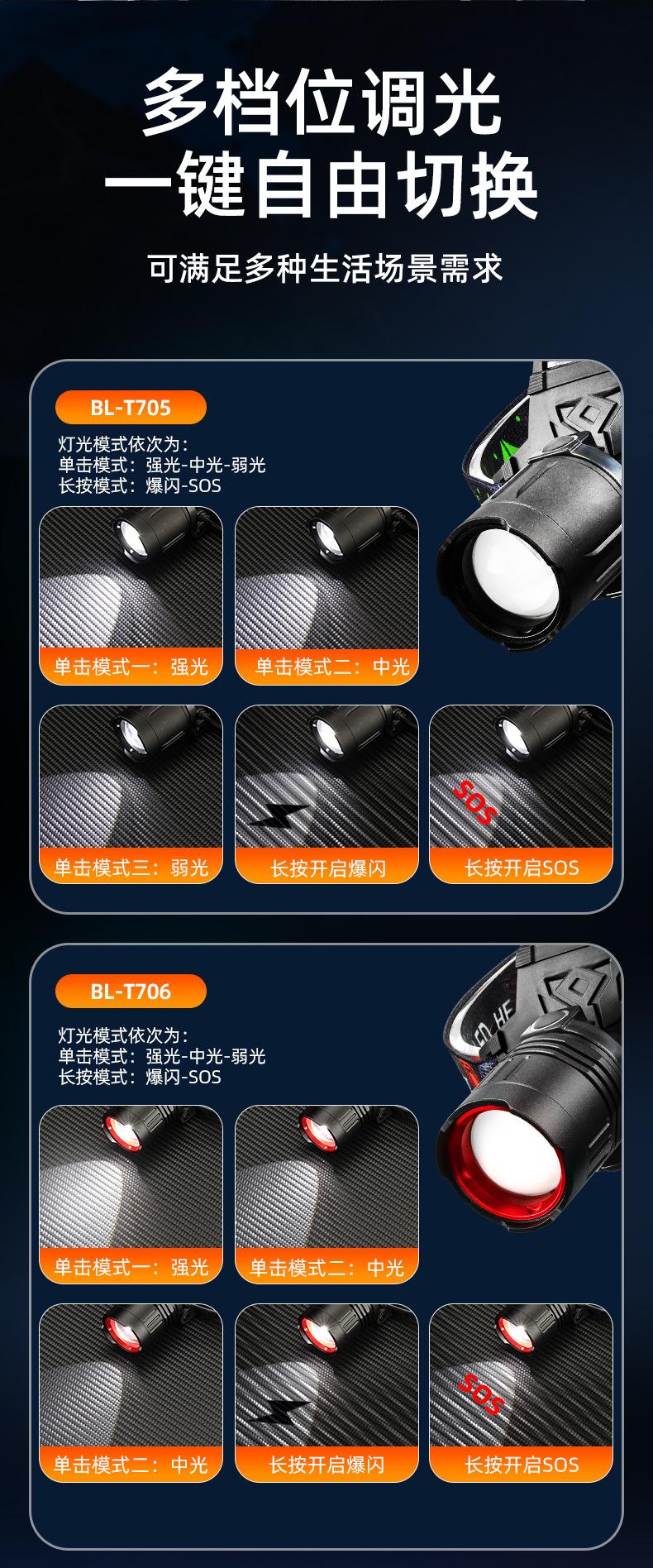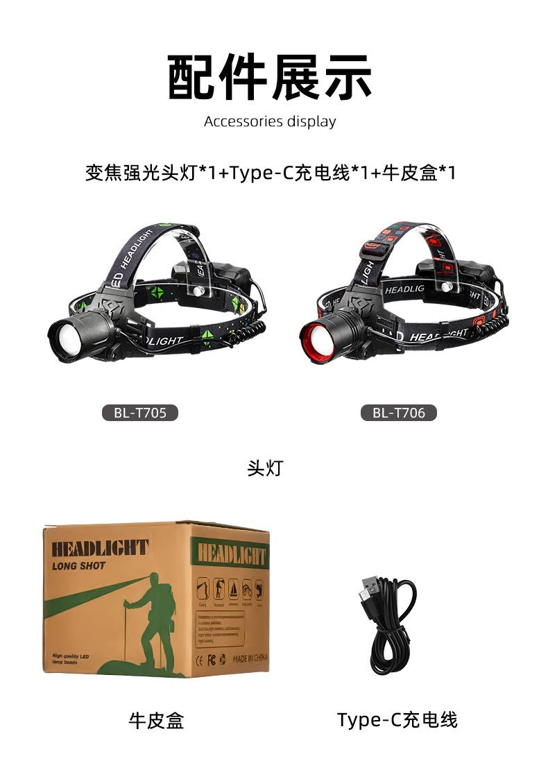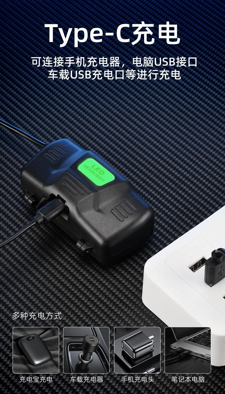 Nuevo faro LED de luz fuerte con zoom, carga USB, para exteriores, pesca nocturna, impermeable, larga vida útil, portátil, de largo alcance.