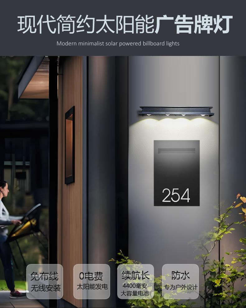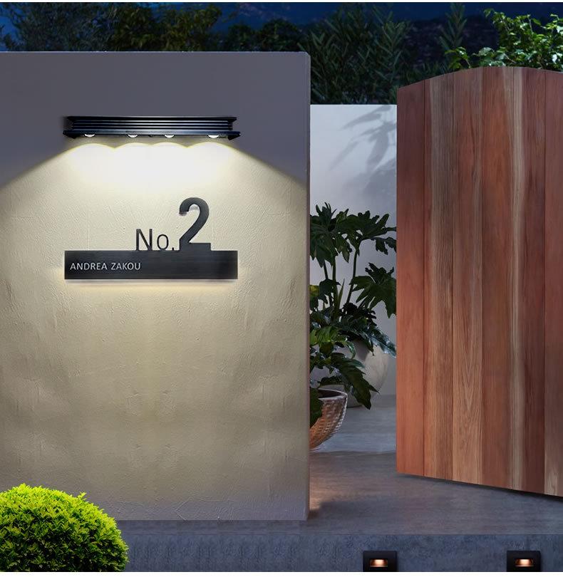 Lámpara de Pared Solar Exterior Tira Lavapared Foco Estilo Europeo Ultrabrillante Luz Número de Puerta de Villa Patio Luz de Pared Exterior Letrero