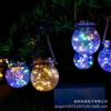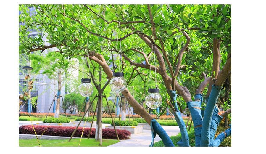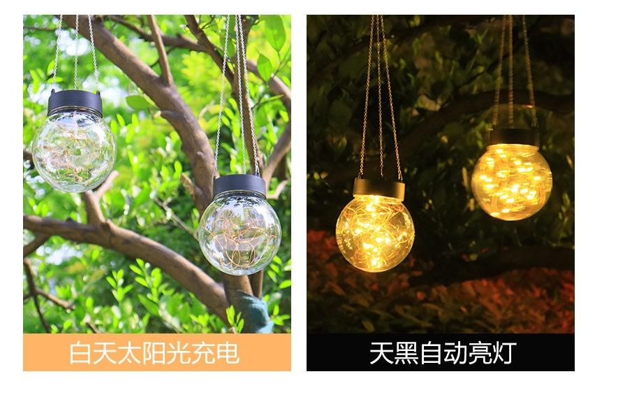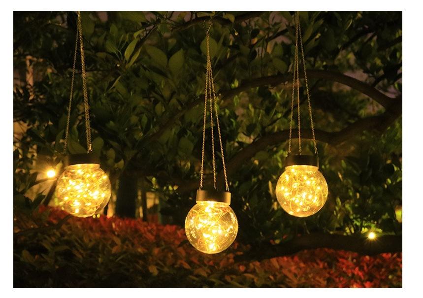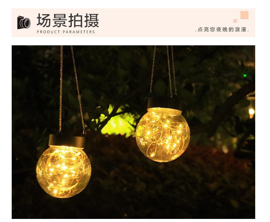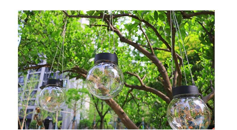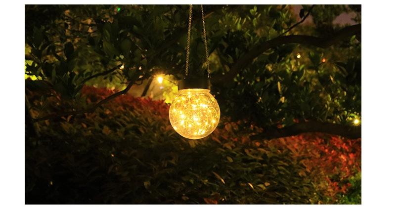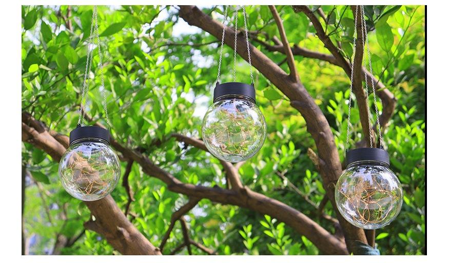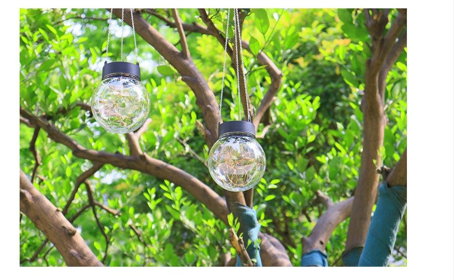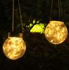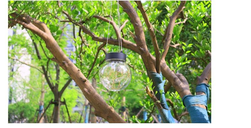 Lámpara colgante solar de alambre de cobre con forma de bola redonda, LED, pequeña, para exteriores, para césped, jardín, patio, casa, decorativa.