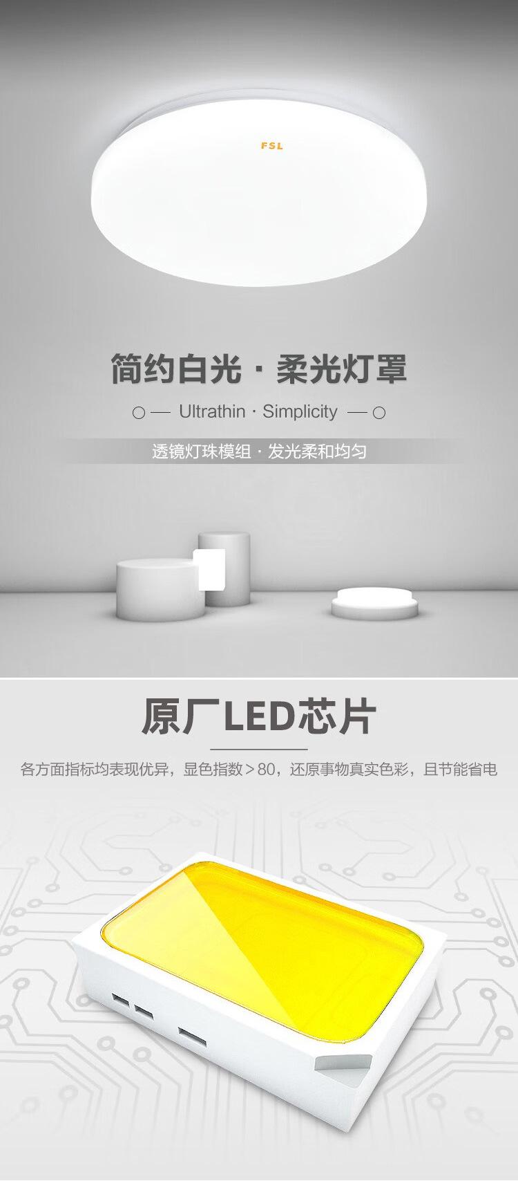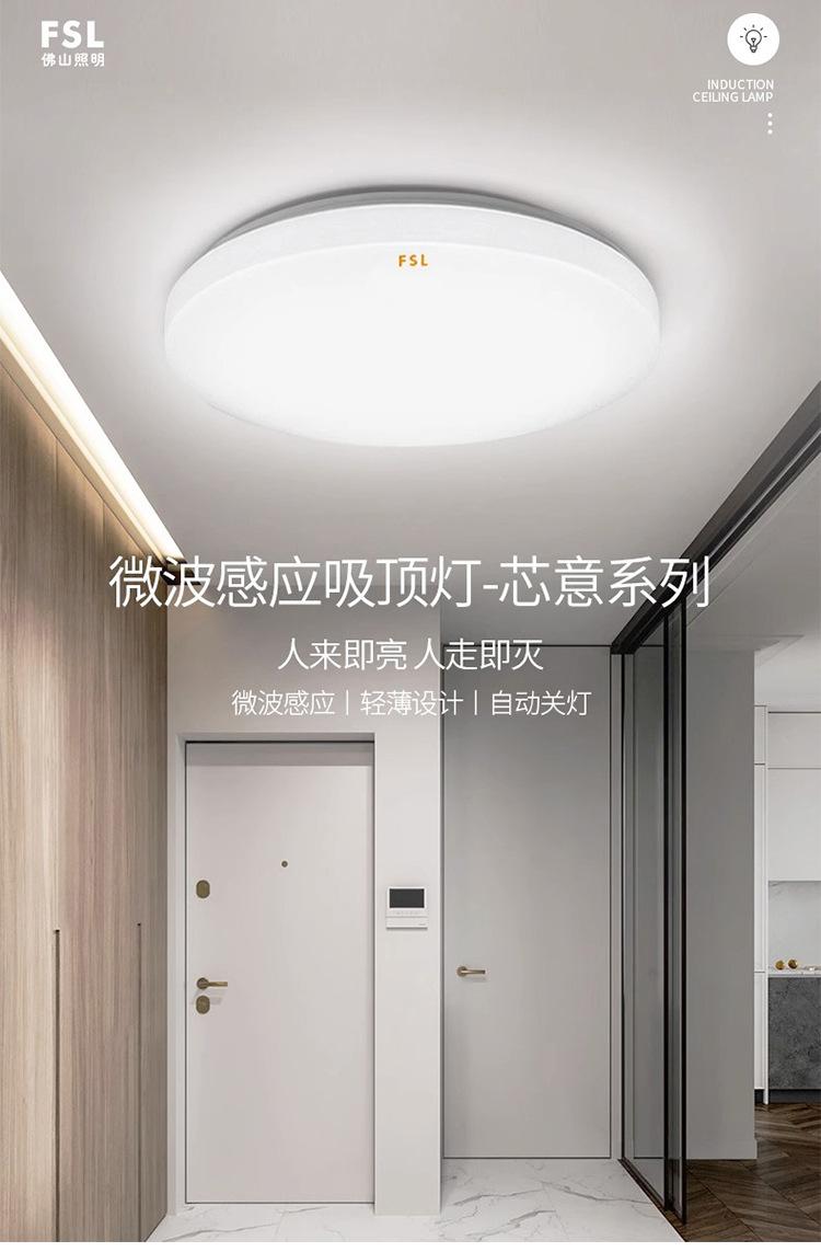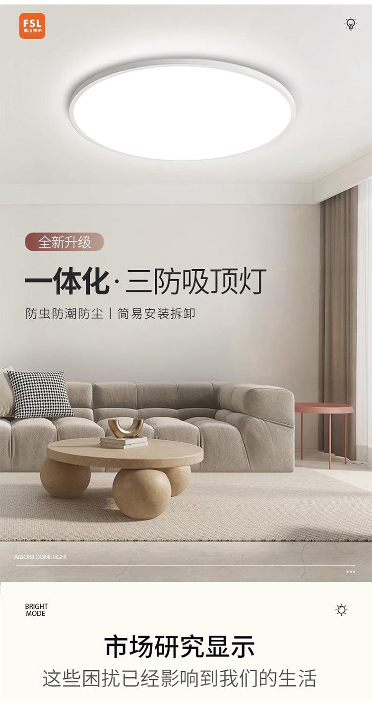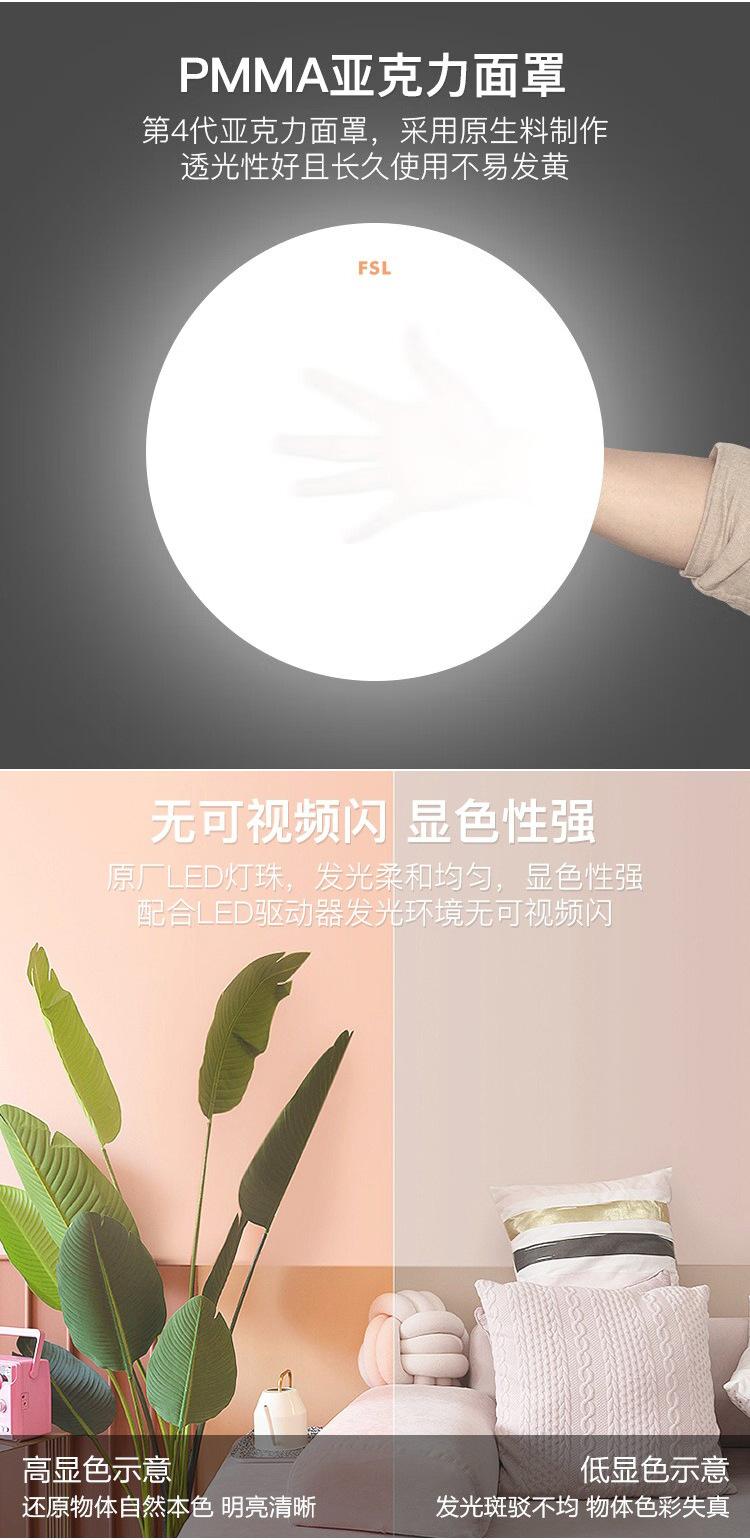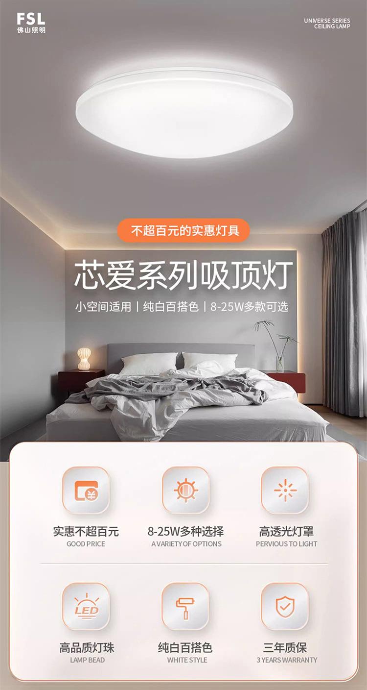 Lámpara de techo LED de espectro completo FSL Foshan Lighting para dormitorio, balcón, sala de estar, protección ocular, tres niveles de protección.