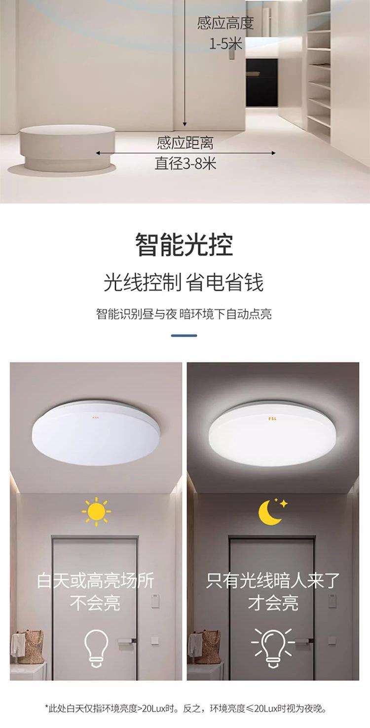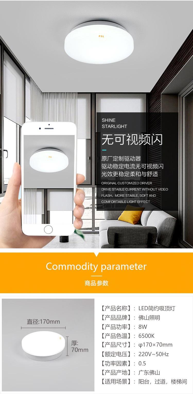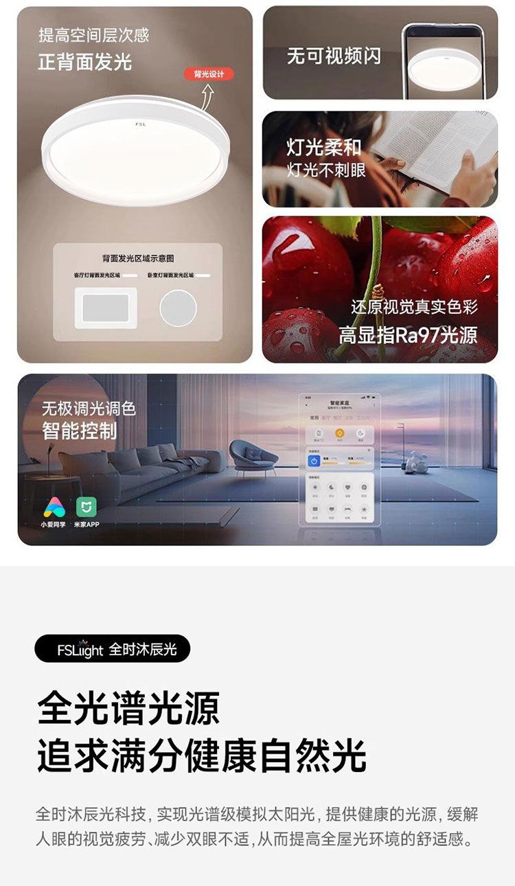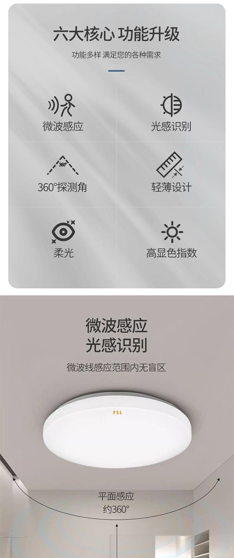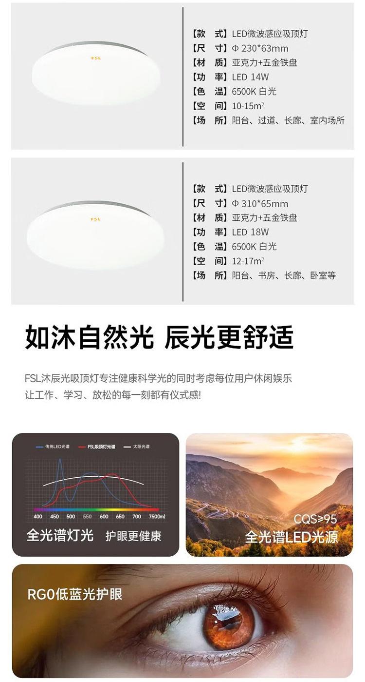 Lámpara de techo LED de espectro completo FSL Foshan Lighting para dormitorio, balcón, sala de estar, protección ocular, tres niveles de protección.