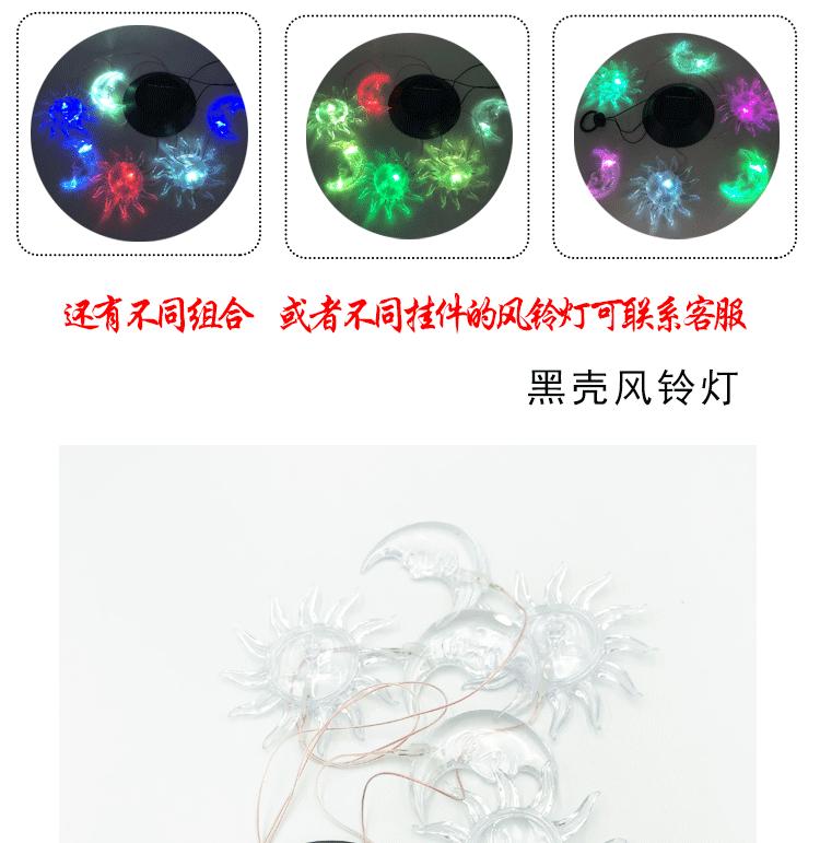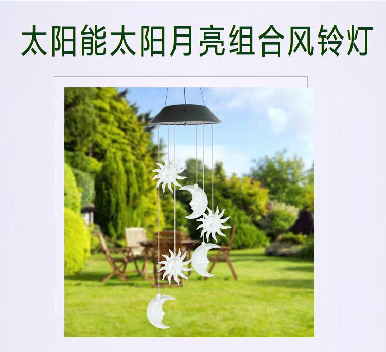 Lámpara de carillón de viento solar impermeable con combinación de sol y luna, luces decorativas coloridas con degradado para patio y jardín
