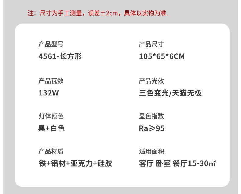 4561-105cm black and white-rectangular-tmall wuji-132w-full spectrum