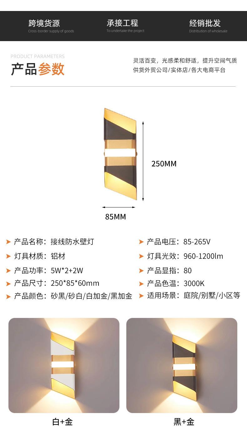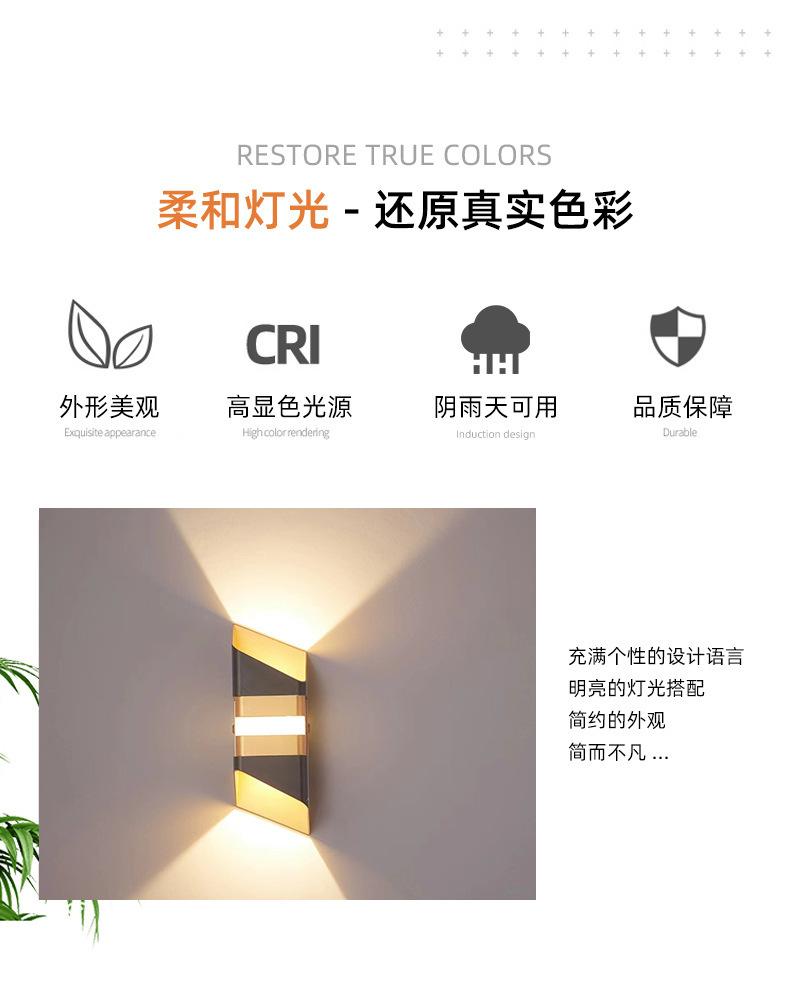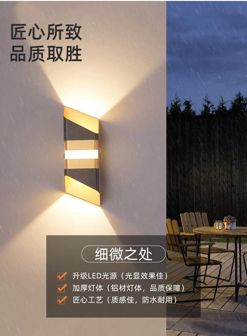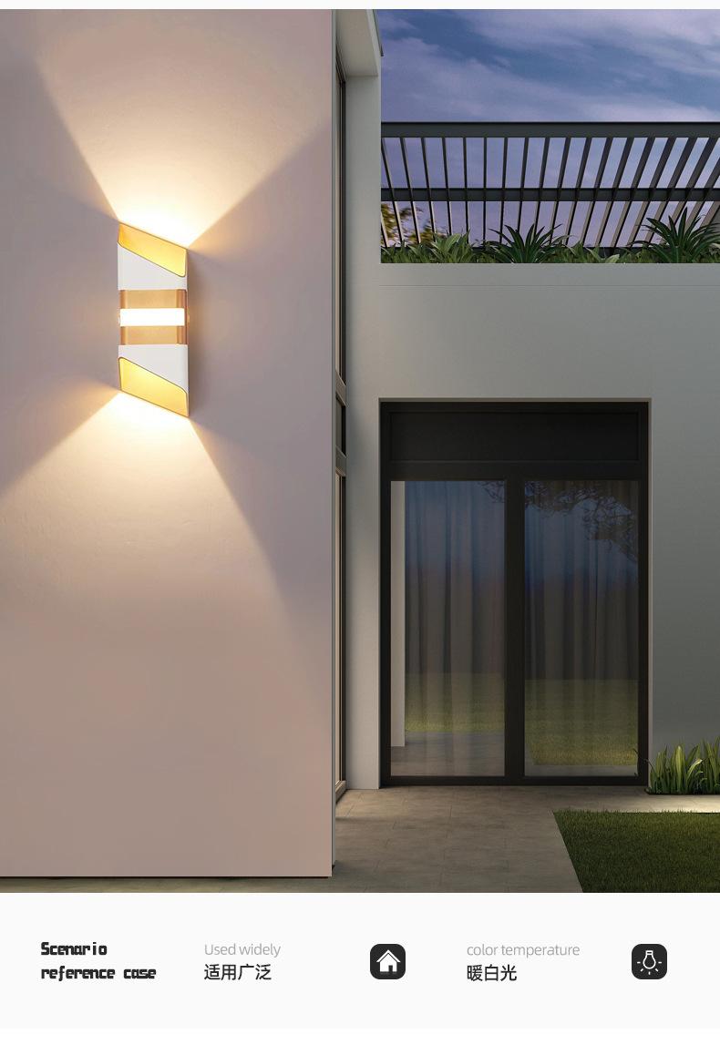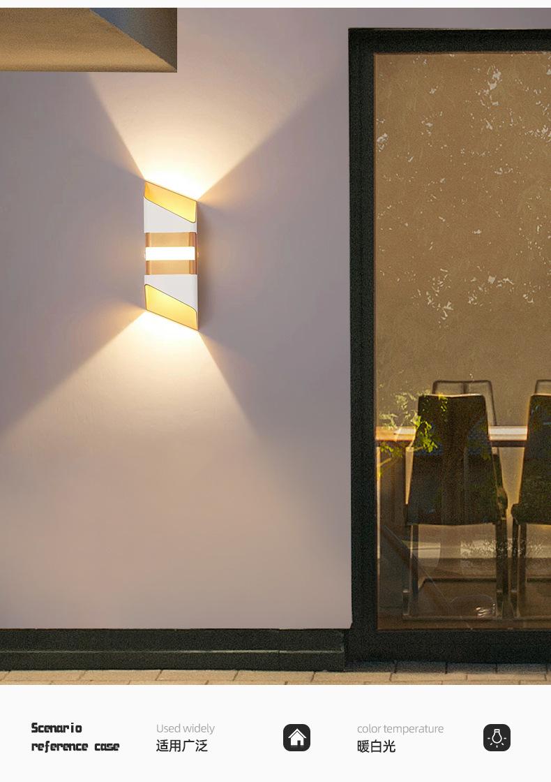 Lámpara de pared LED de doble cabezal para exteriores, nueva, con iluminación hacia arriba y hacia abajo, con sección de cableado y puerta de pared exterior creativa.