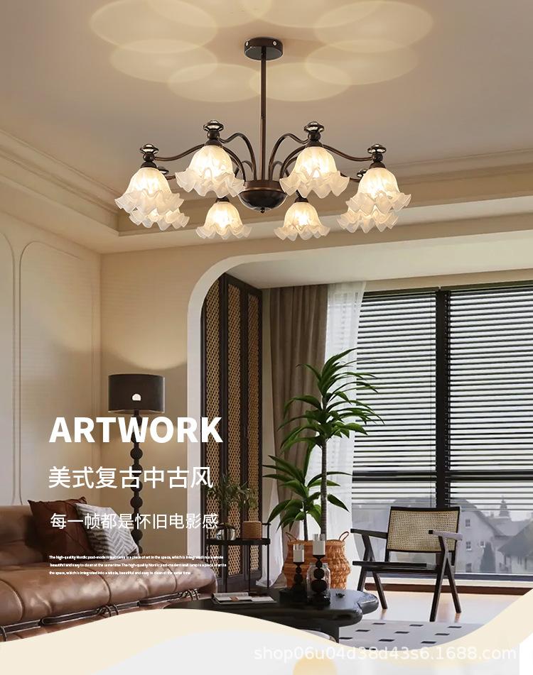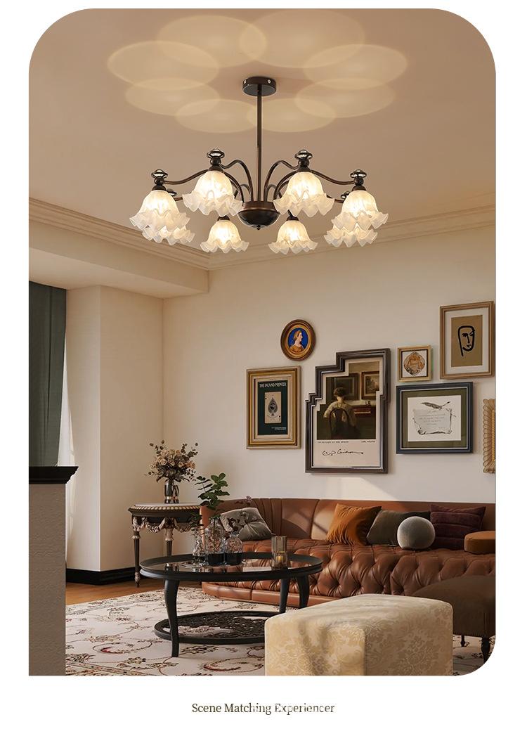 Lámpara de Araña de Sala de Estar Vintage Estilo Americano, Luz Principal Floral Moderna para Recibidor, Estilo Retro Francés con Foco, Lámpara de Araña para Comedor y Dormitorio