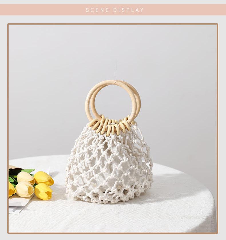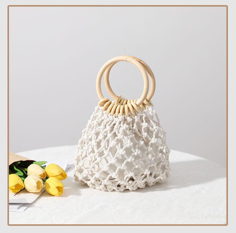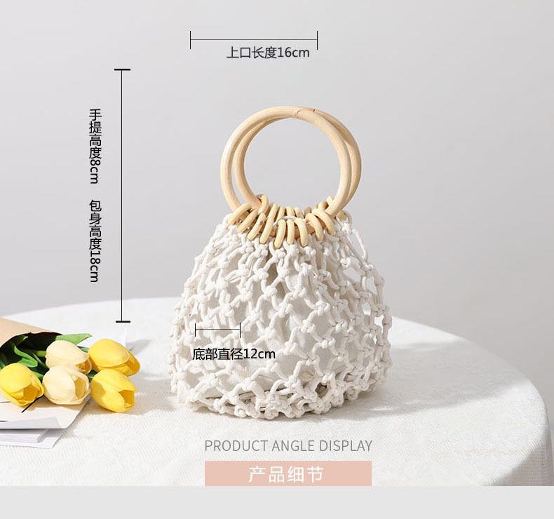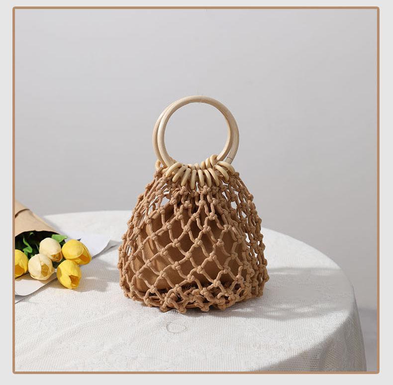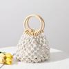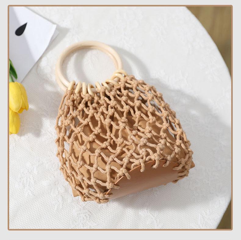 Bolso Tejido de Paja para Principios de Primavera Bolso Pequeño Portátil de Verano para Mujer Bolso de Hombro Calado para Vacaciones en la Playa Junto al Mar Bolso Tejido tipo Cubo