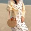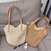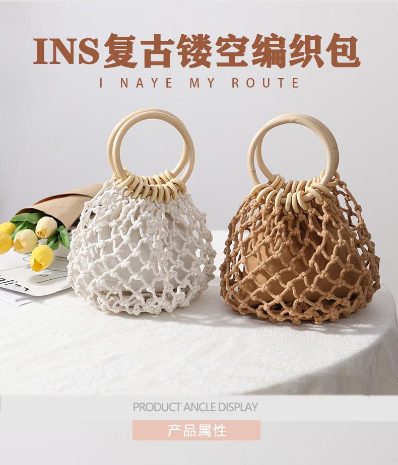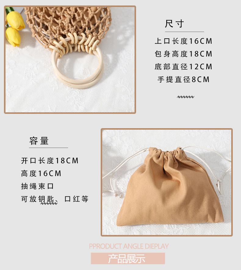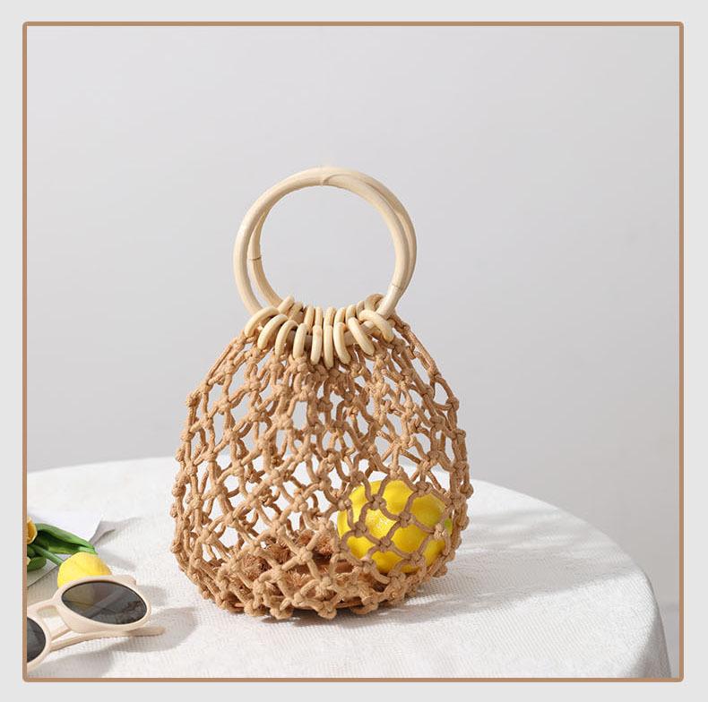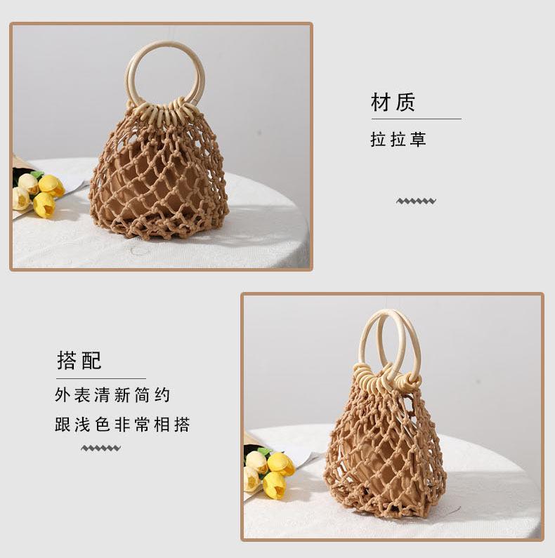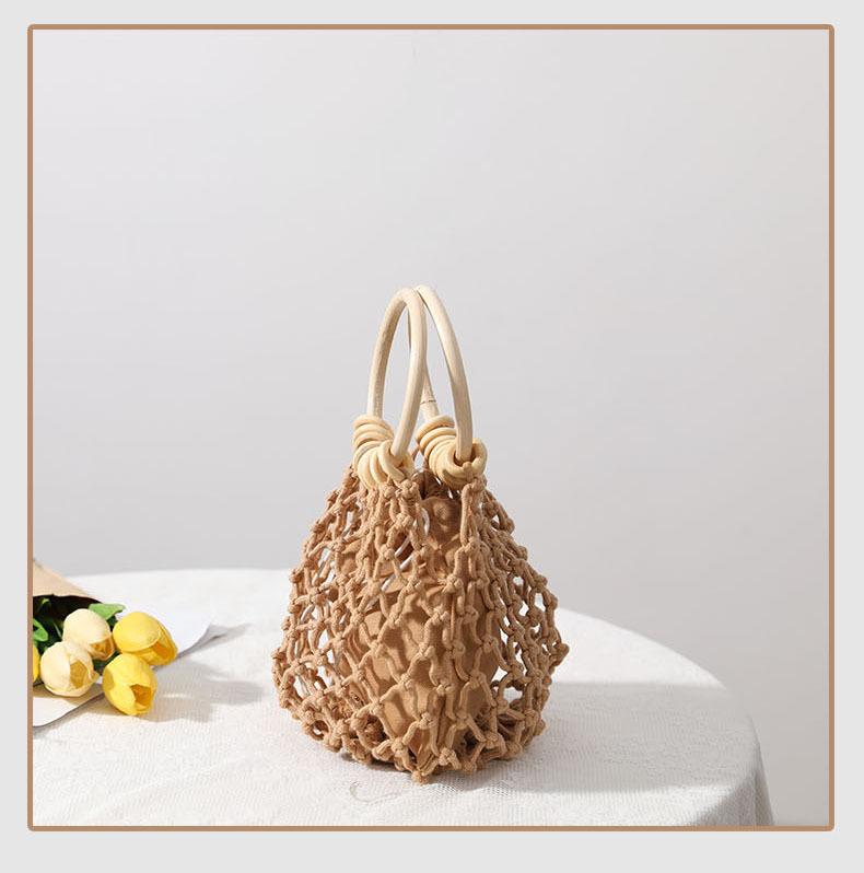 Bolso Tejido de Paja para Principios de Primavera Bolso Pequeño Portátil de Verano para Mujer Bolso de Hombro Calado para Vacaciones en la Playa Junto al Mar Bolso Tejido tipo Cubo