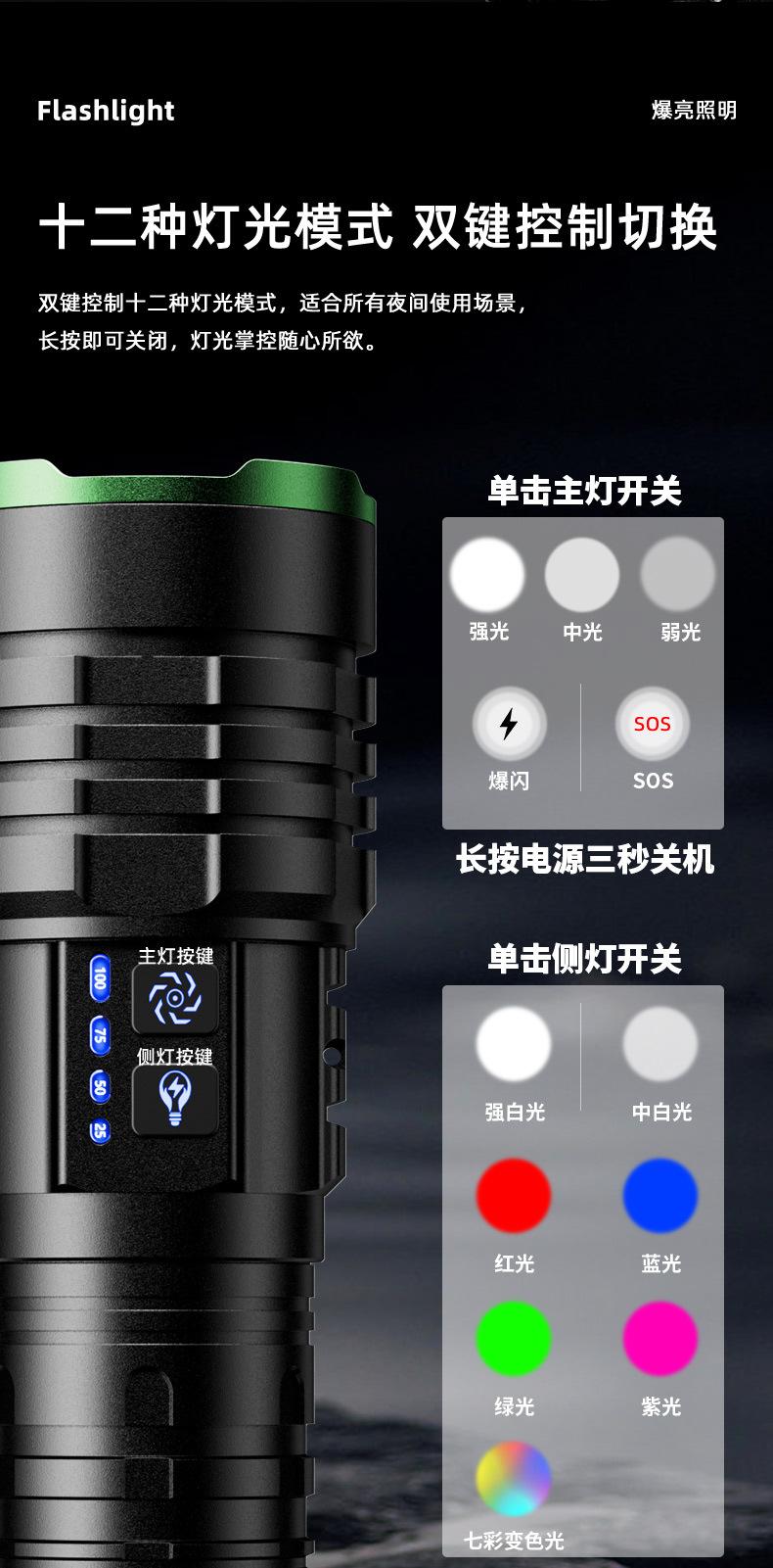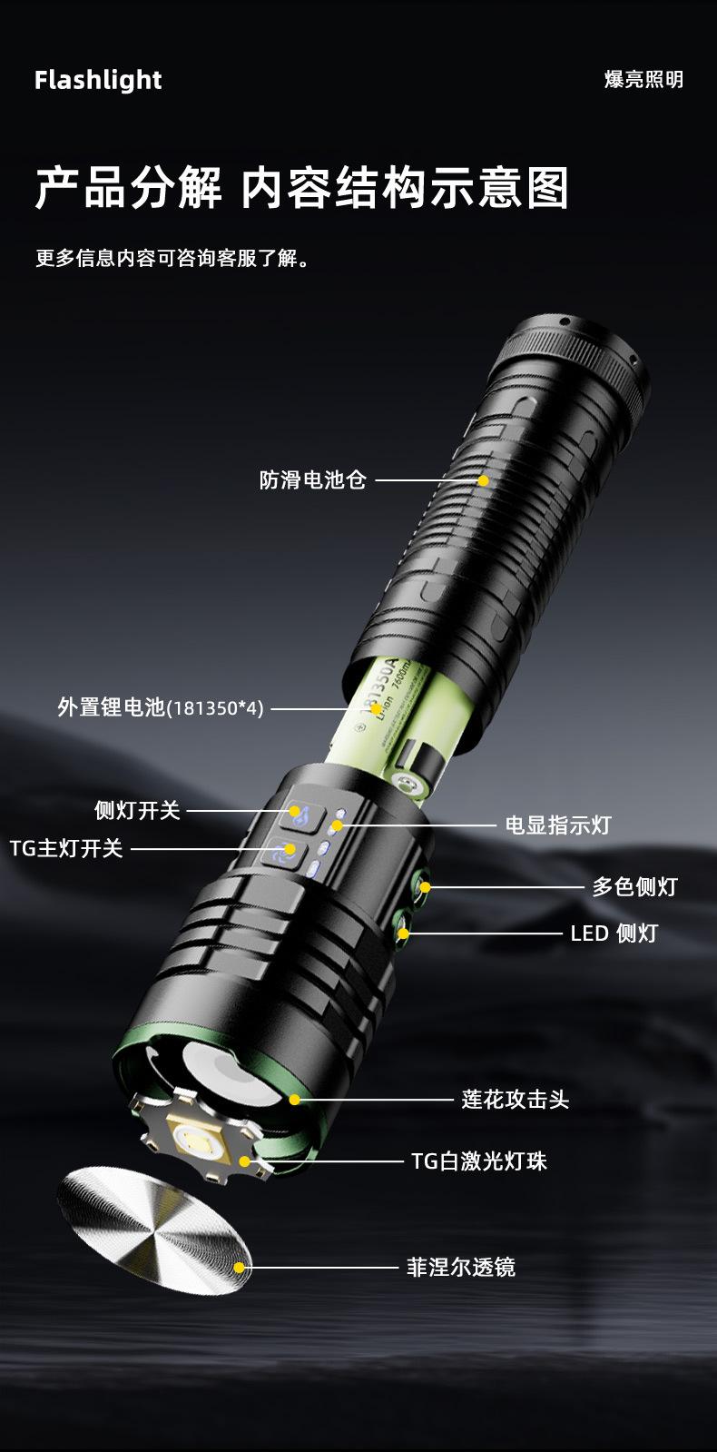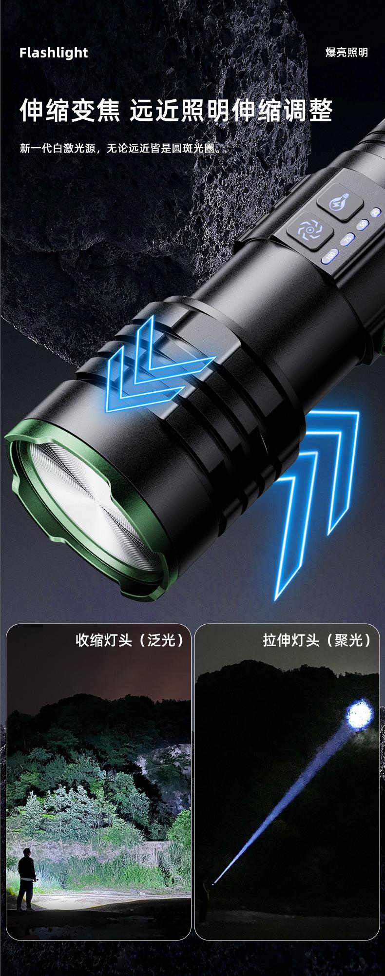 Linterna láser blanca transfronteriza de carga fuerte, luz exterior, ultra brillante, zoom de largo alcance, linterna de larga duración, alta potencia