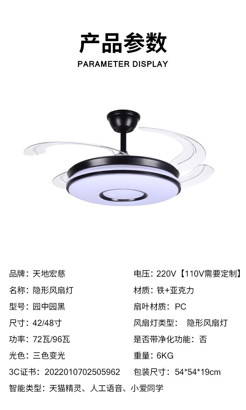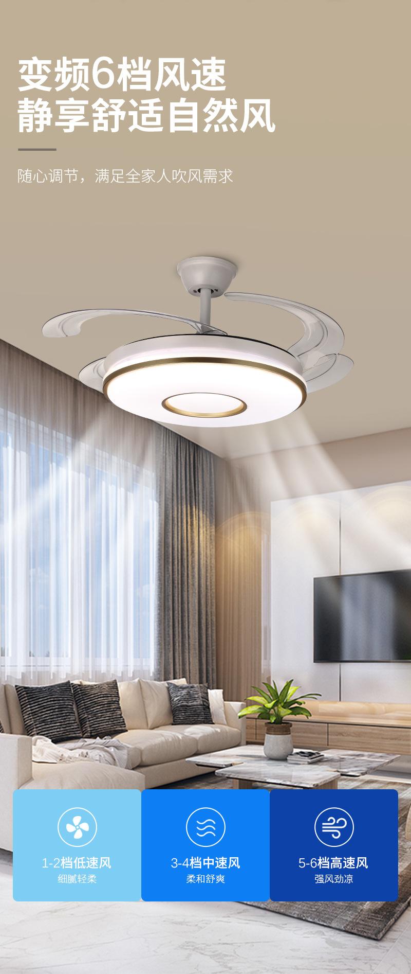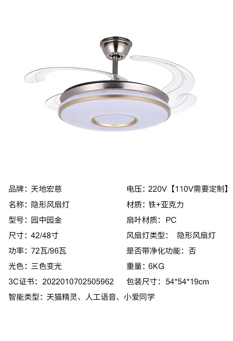 Luz de ventilador invisible simple de techo luz de ventilador de techo comedor luz de ventilador de techo de frecuencia variable sala de estar dormitorio led ventilador inteligente