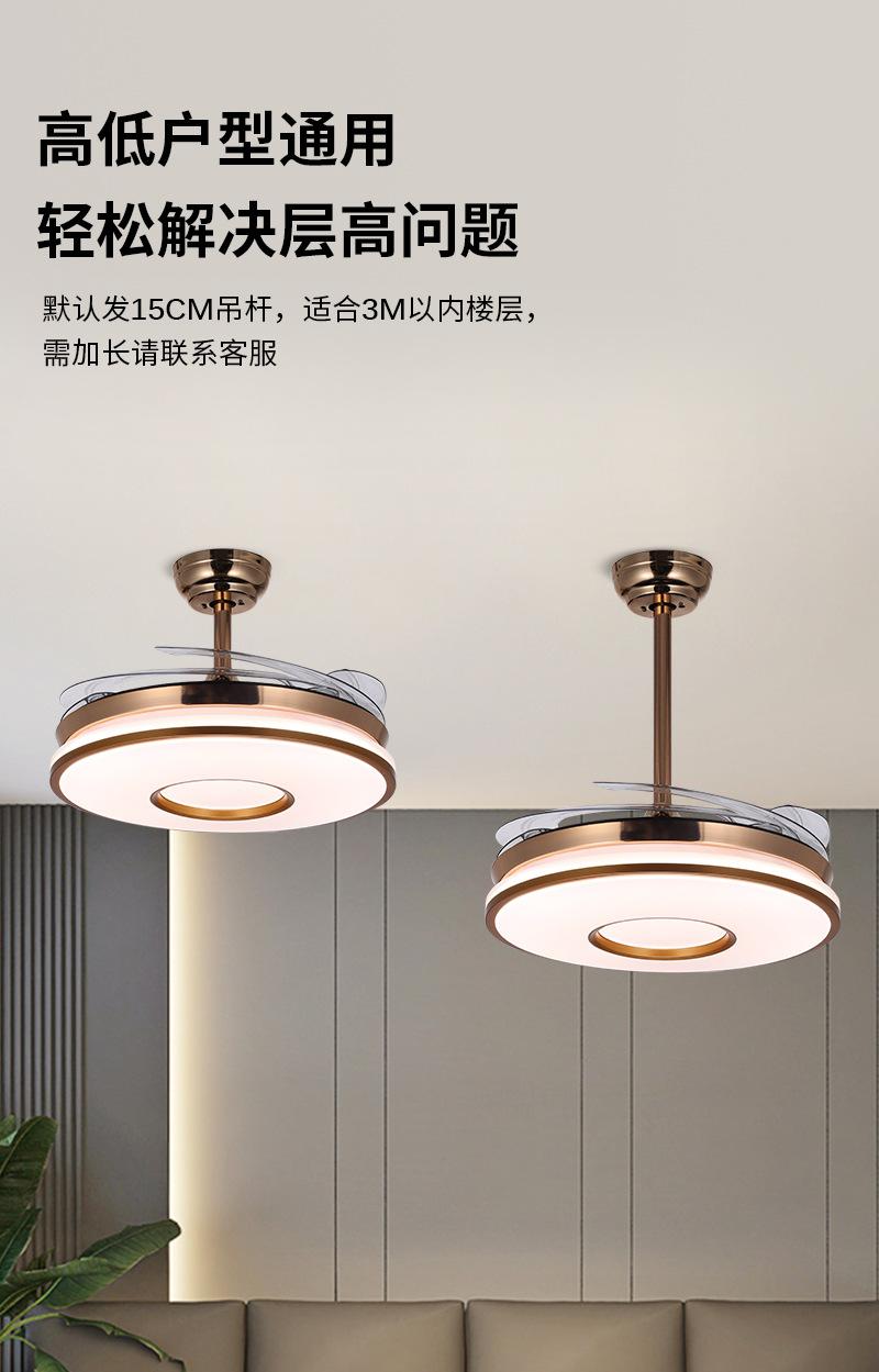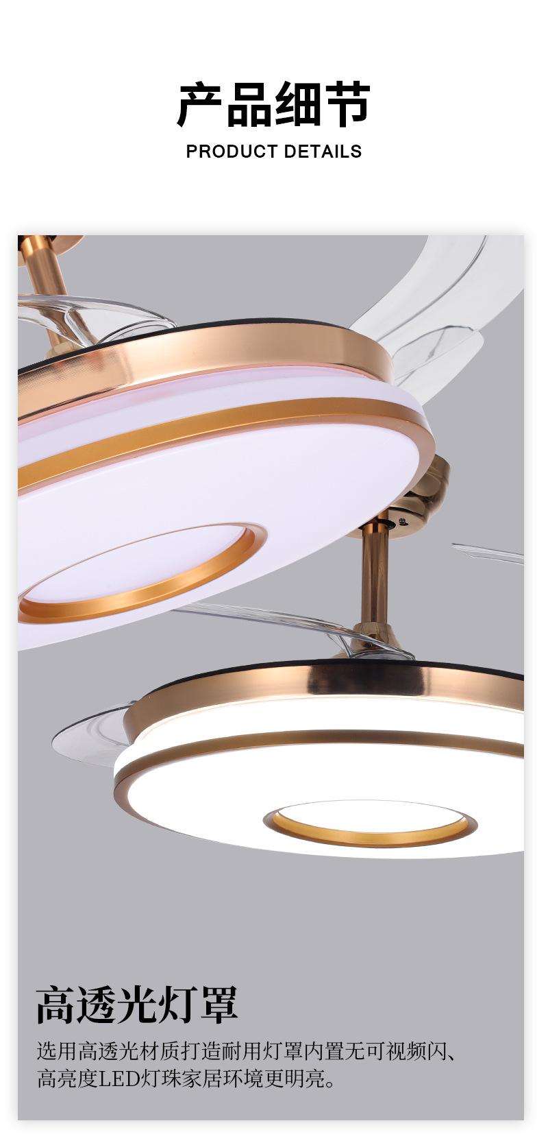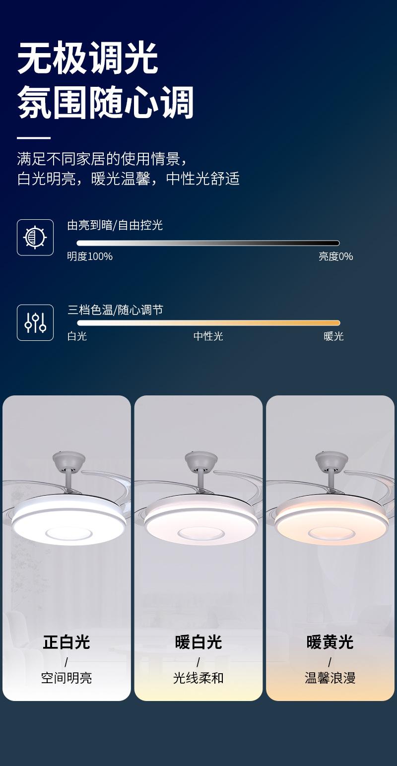 Luz de ventilador invisible simple de techo luz de ventilador de techo comedor luz de ventilador de techo de frecuencia variable sala de estar dormitorio led ventilador inteligente