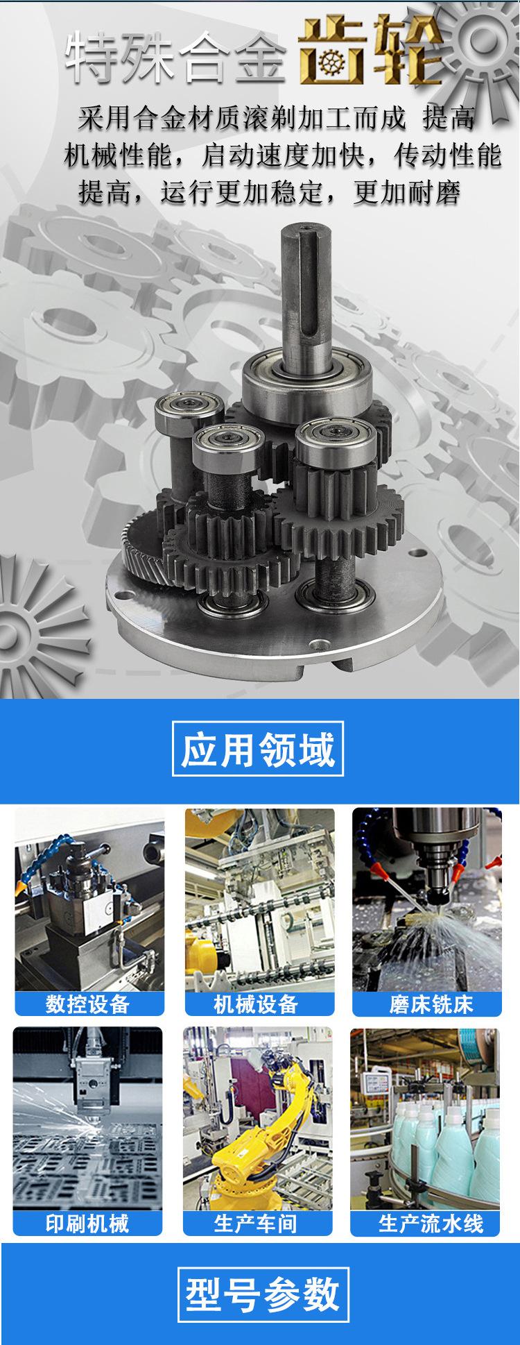 Garantía de dos años, garantía de devolución de dinero de siete días, ventas directas de fábrica, calidad estable y confiable,Se utilizan máquinas herramienta CNC nacionales y rectificadoras de engranajes. Todas las piezas de rodaje reciben tratamiento térmico para hacer los engranajes más precisos y duraderos. Se utilizan cojinetes de alambre de cobre con certificación UL en el estator del motor para hacer el motor menos ruidoso y más potente. Por favor, elija productos genuinos con precisión. ¡Este producto ha pasado las certificaciones CE y SGS!